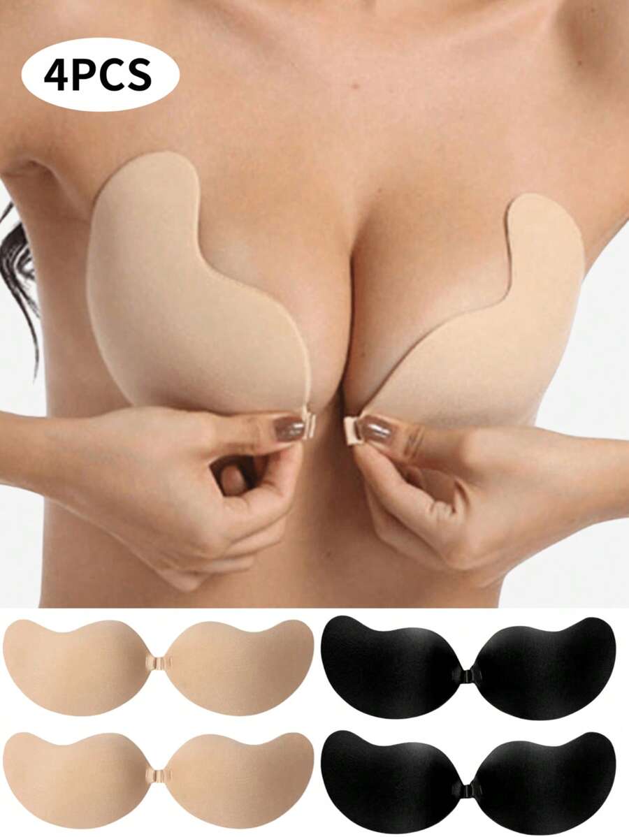 4/2 piezas brasier adhesivo de silicona con push-up reutilizable, brasier invisible de cobertura total con broche delantero, aumento de busto - copas transpirables y amigables con la piel, se adapta a tallas de copa a-d, estilo vestido de escote