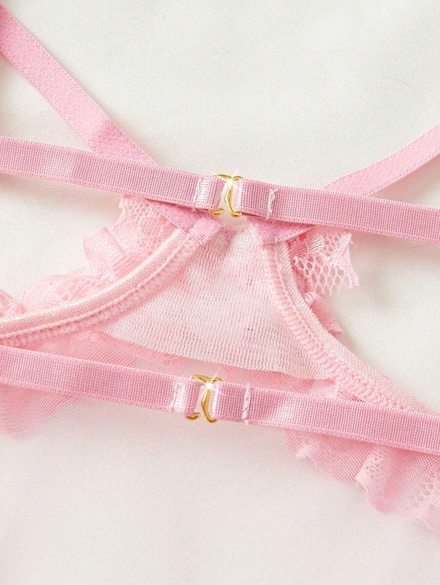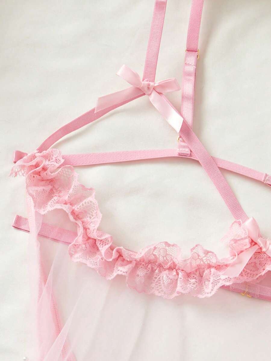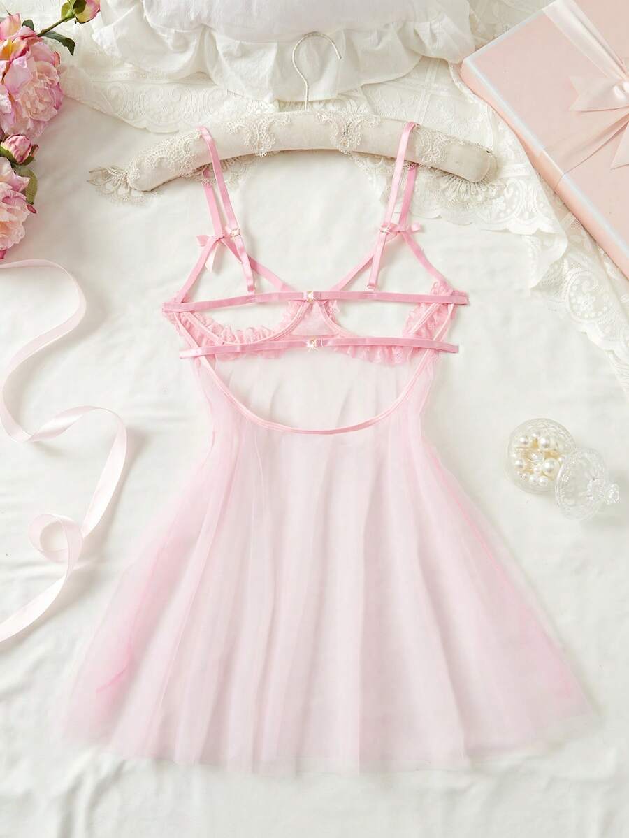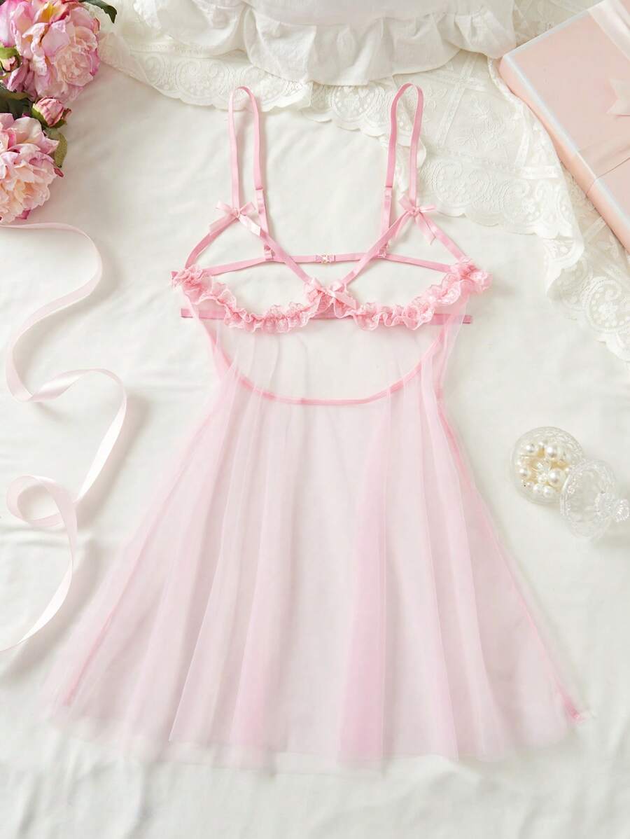 Vestido lencero sexy para mujer con decoracion de lazo rosa, transparente y sin espalda, lenceria nupcial para salir