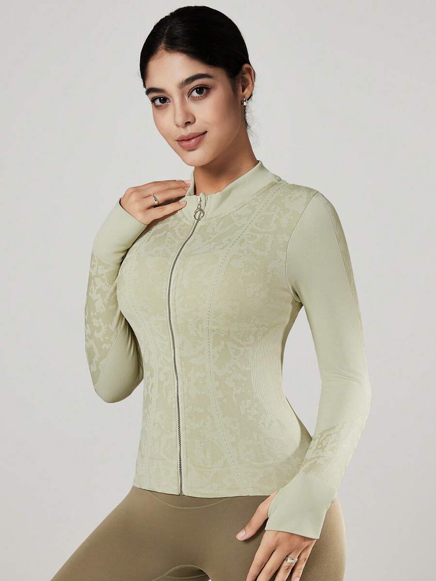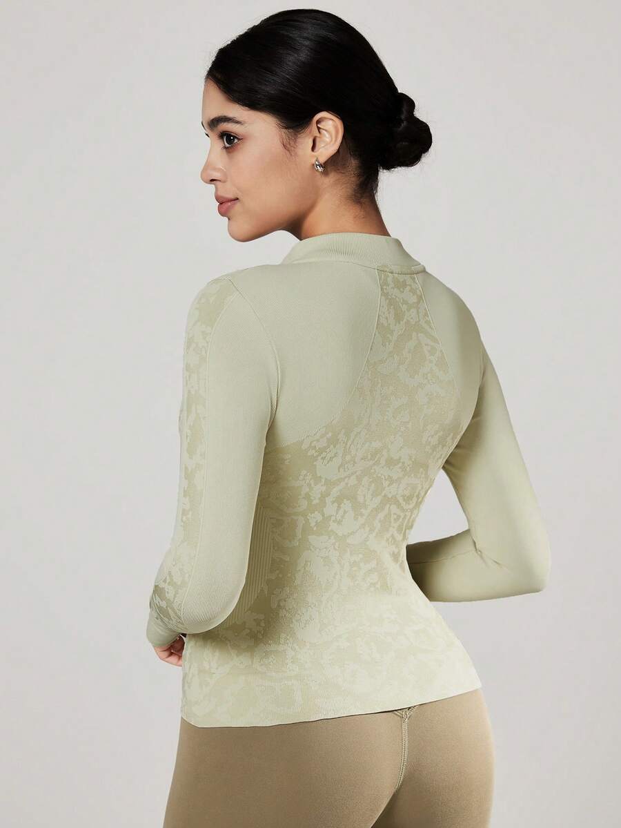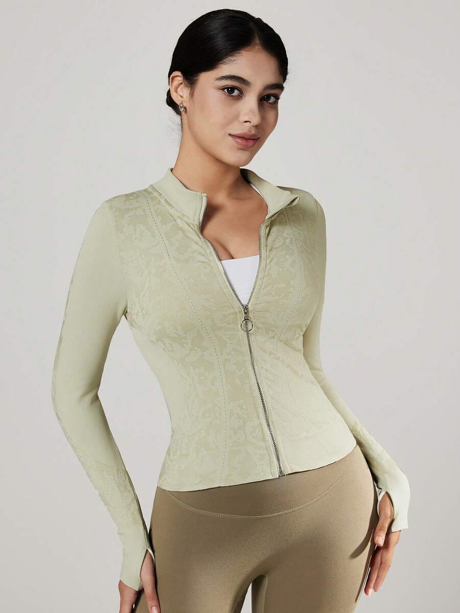 Vutru chaqueta deportiva de tela jacquard brillante, top de cuello alto para yoga y correr, otono/invierno