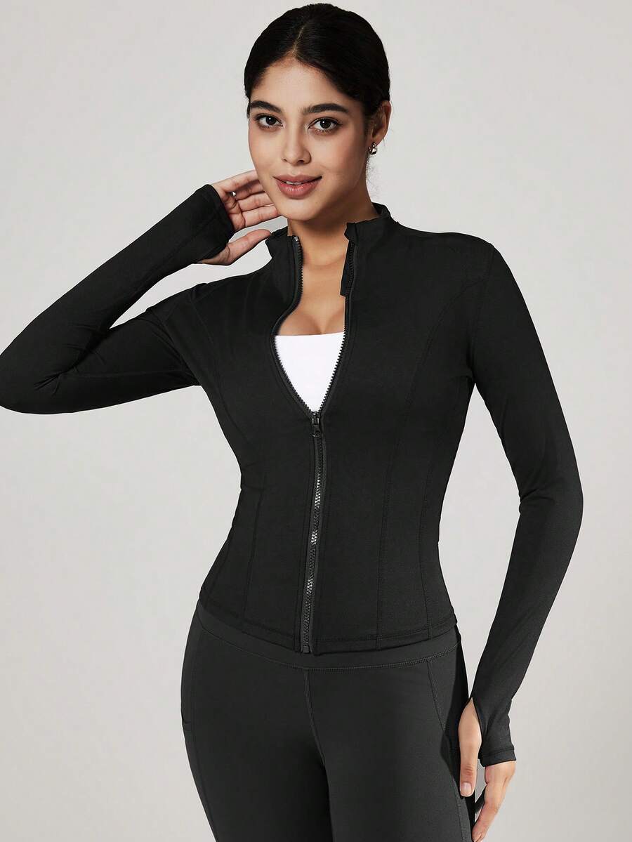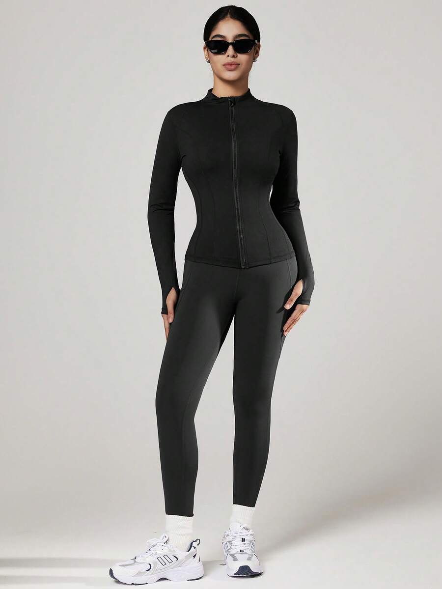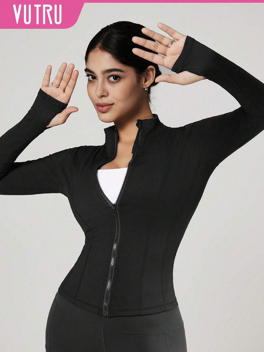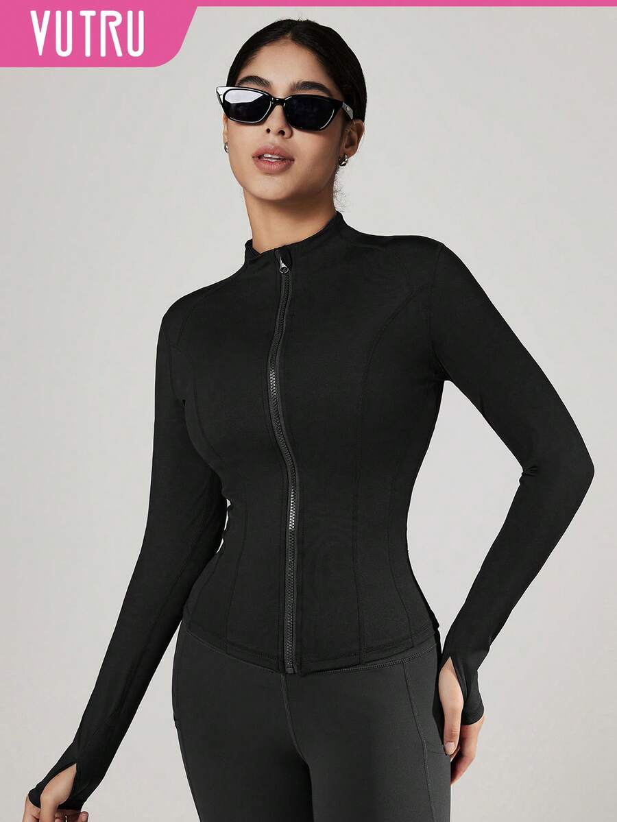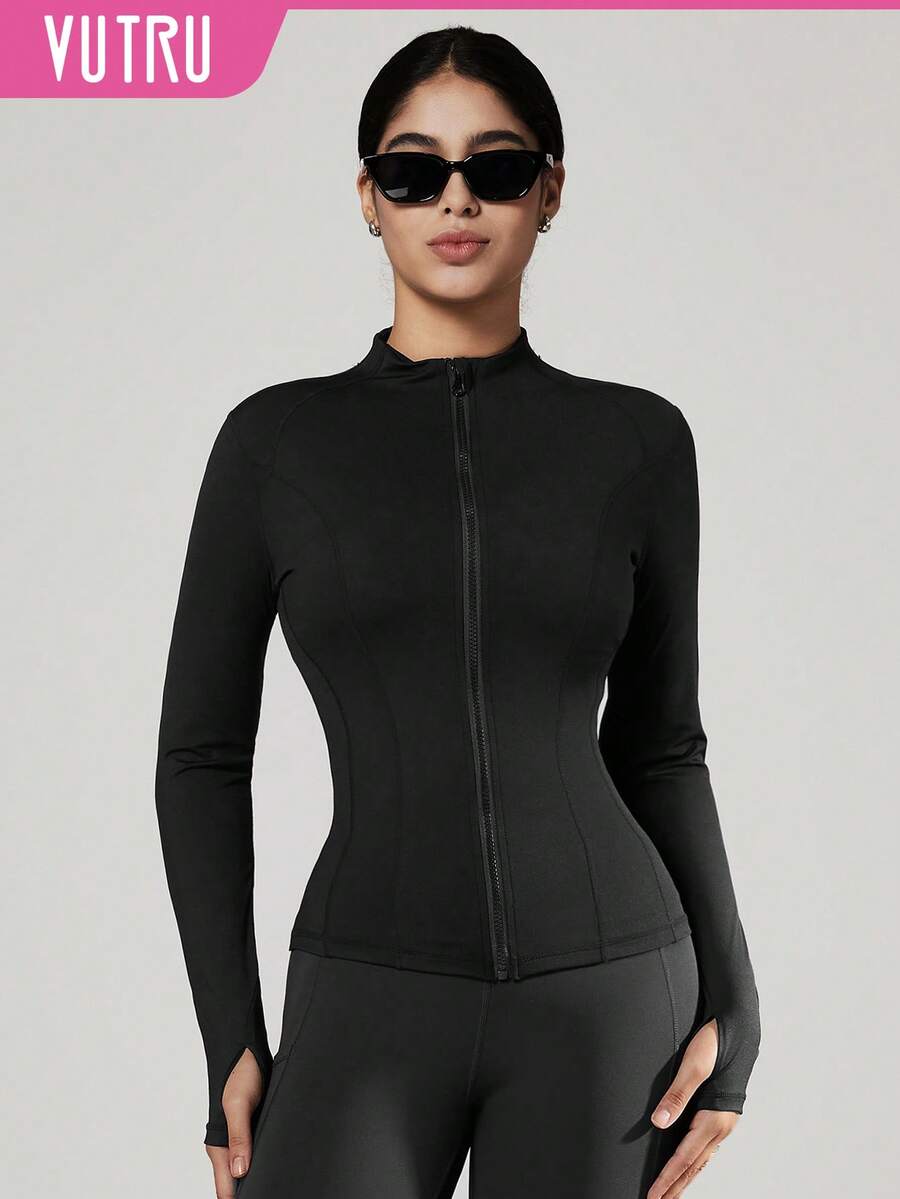 Vutru chaqueta deportiva ajustada con cremallera y agujeros para los pulgares, adecuada para correr y hacer ejercicio, otono/invierno