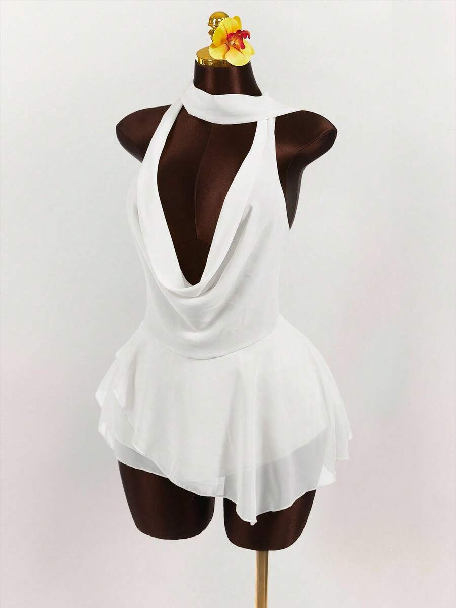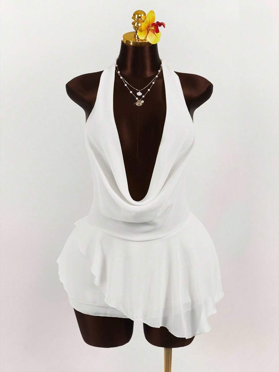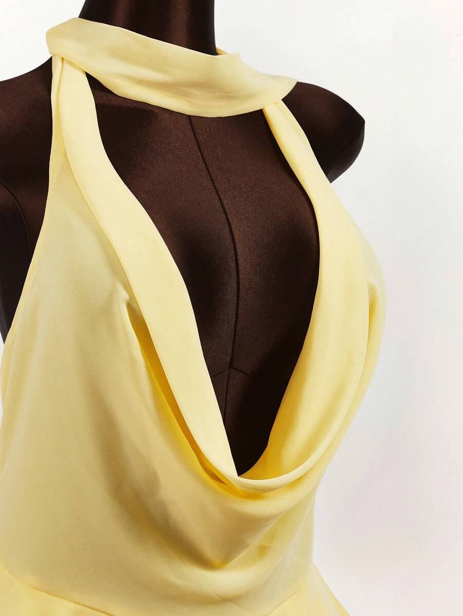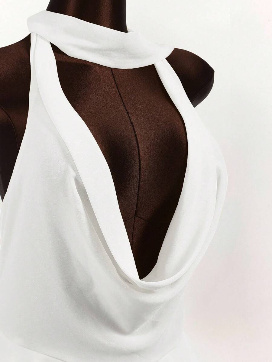 Amplova vestido sexy con cuello holgado exagerado, corbata y plisado