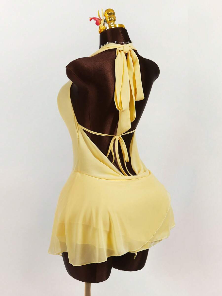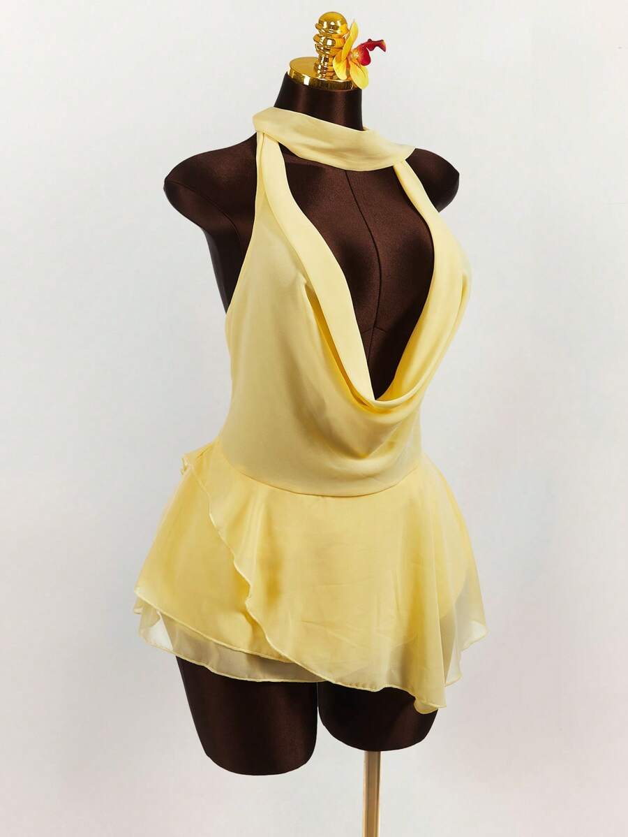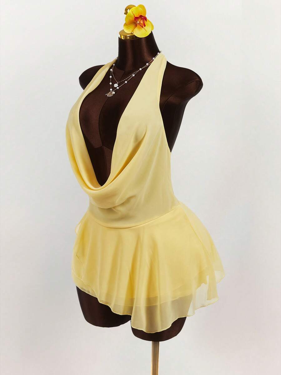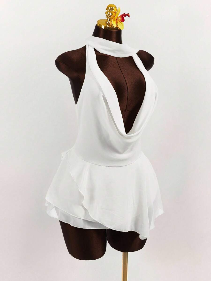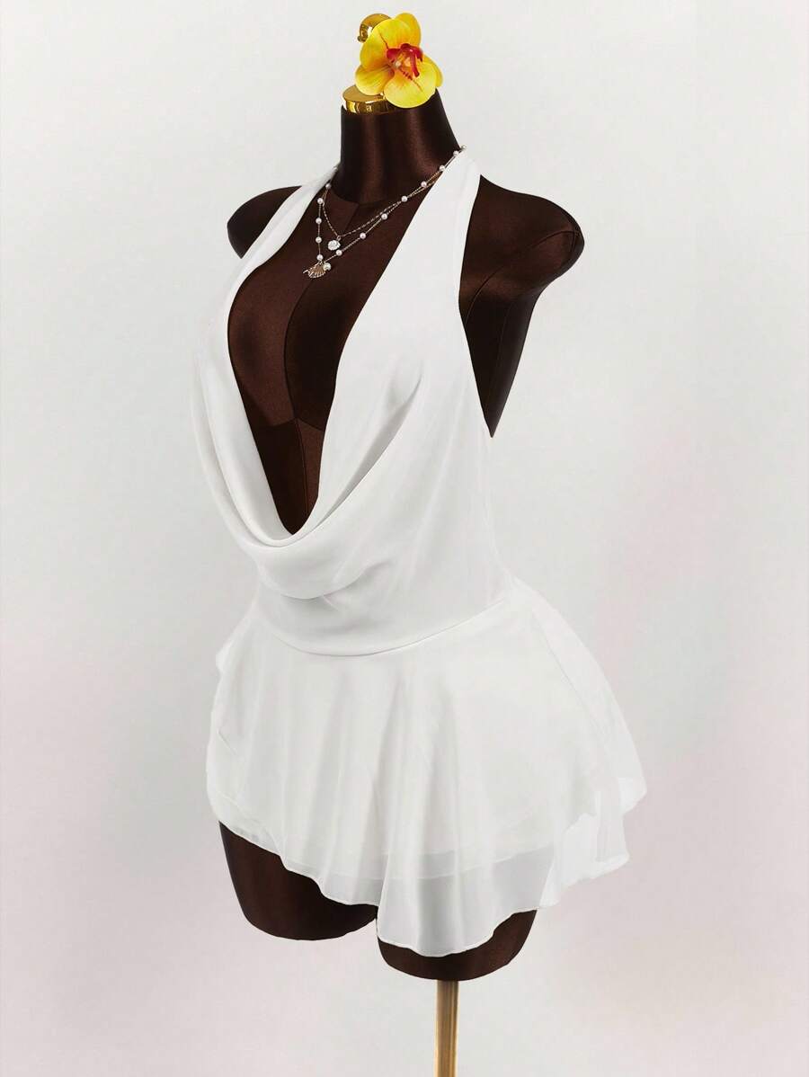 Amplova vestido sexy con cuello holgado exagerado, corbata y plisado