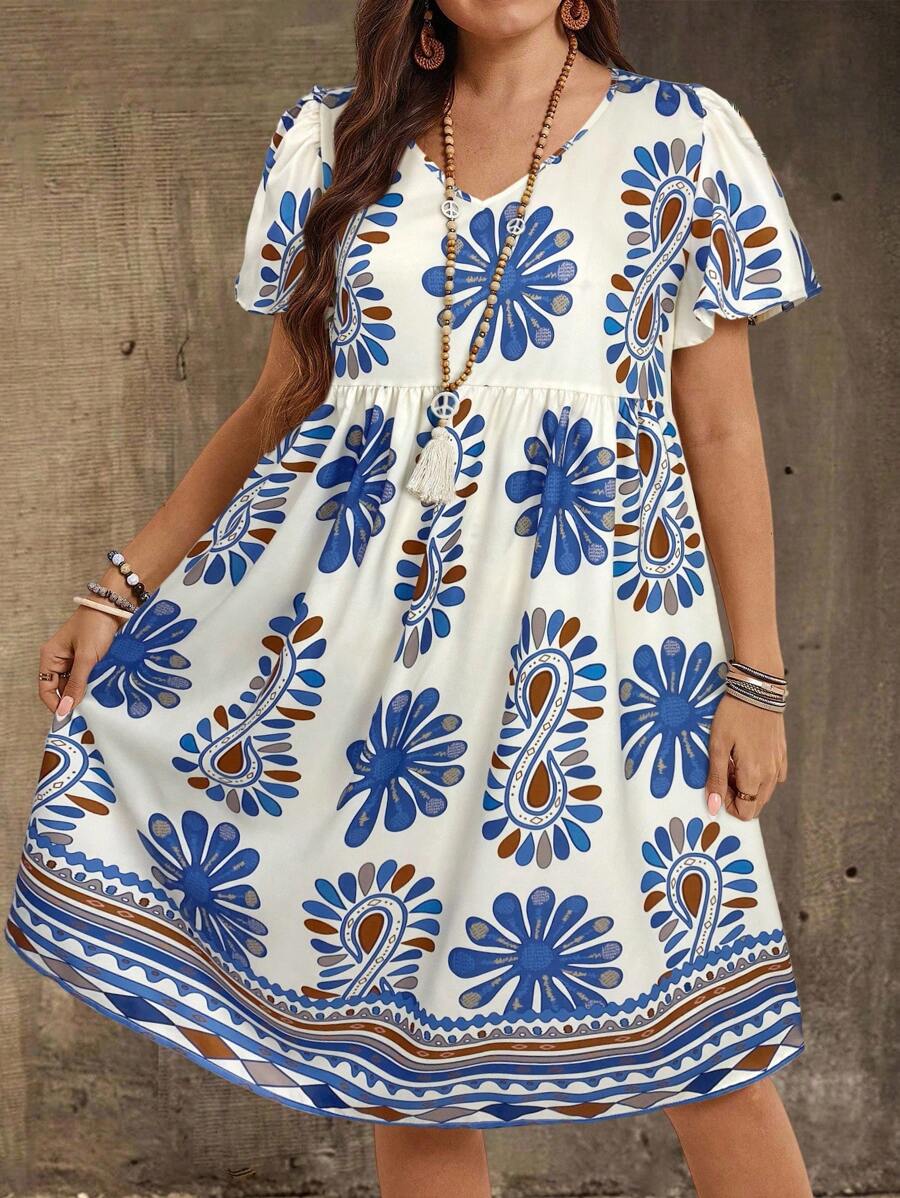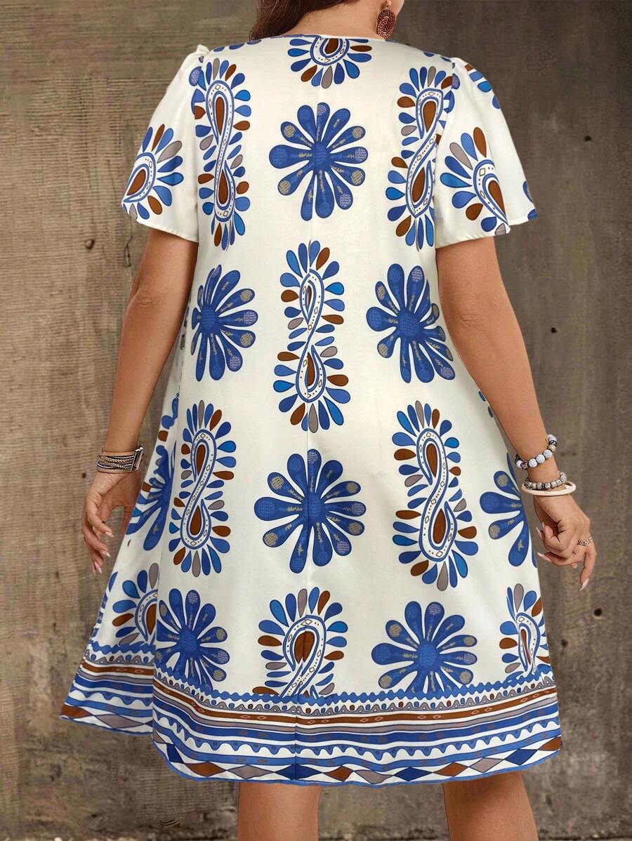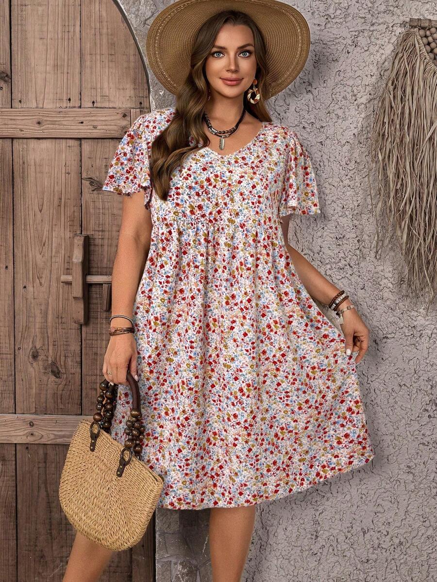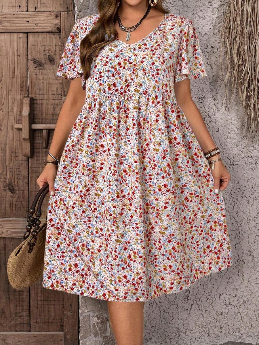 Vestido casual holgado con estampado floral y mangas con volantes para mujer de talla grande
