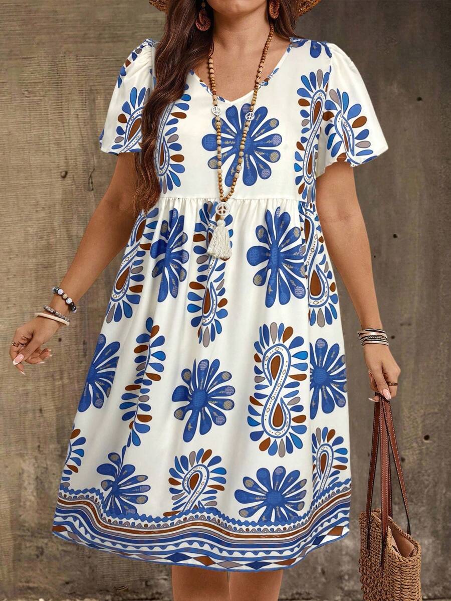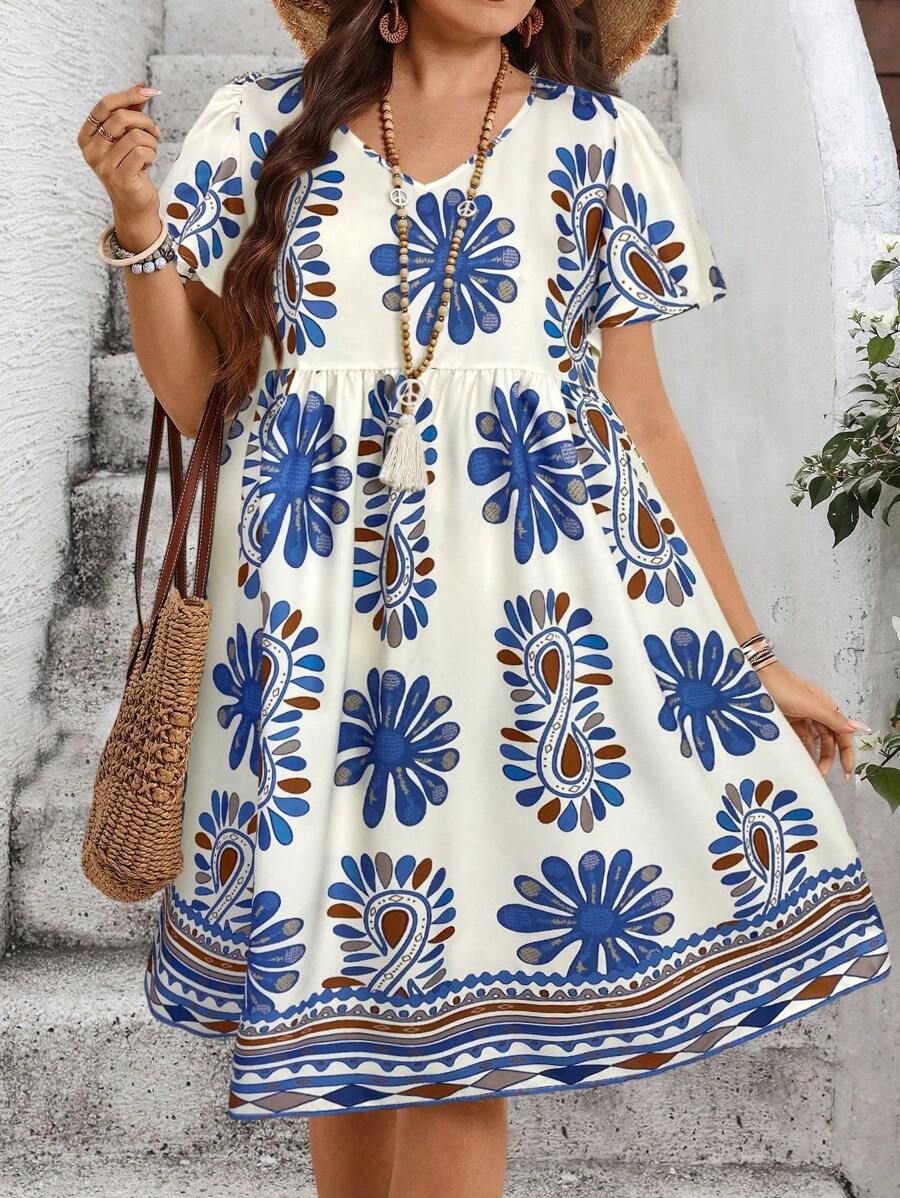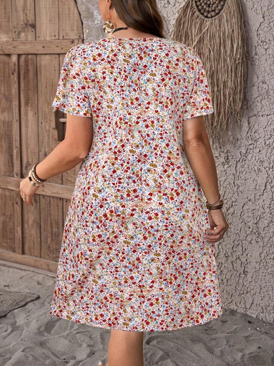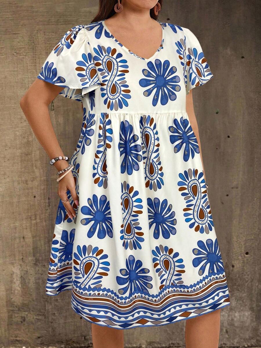 Vestido casual holgado con estampado floral y mangas con volantes para mujer de talla grande