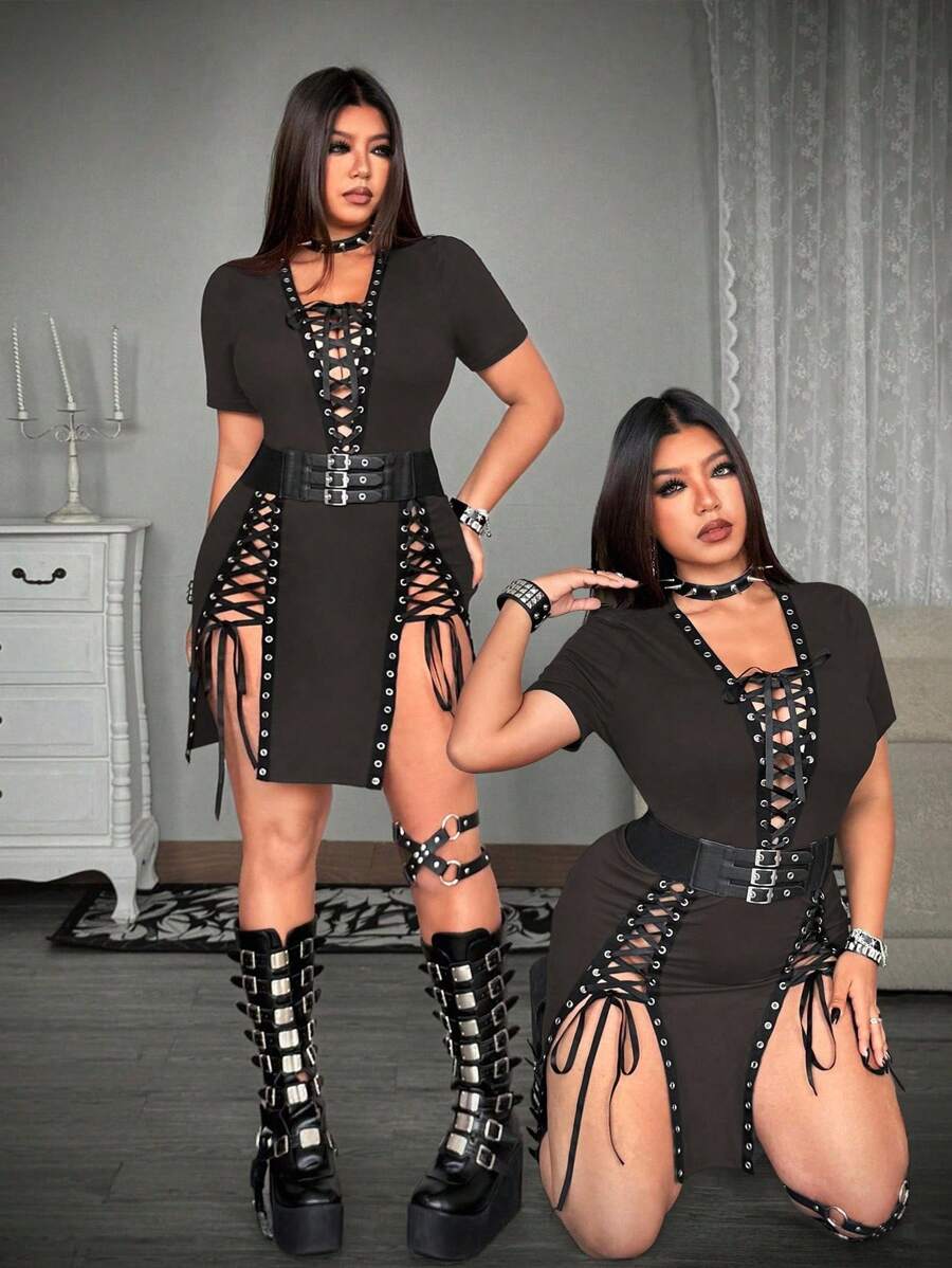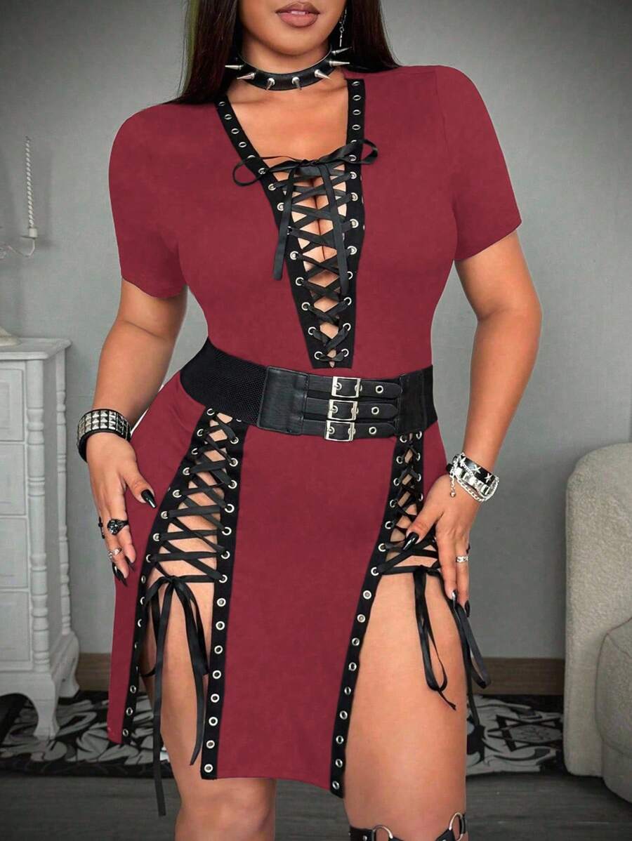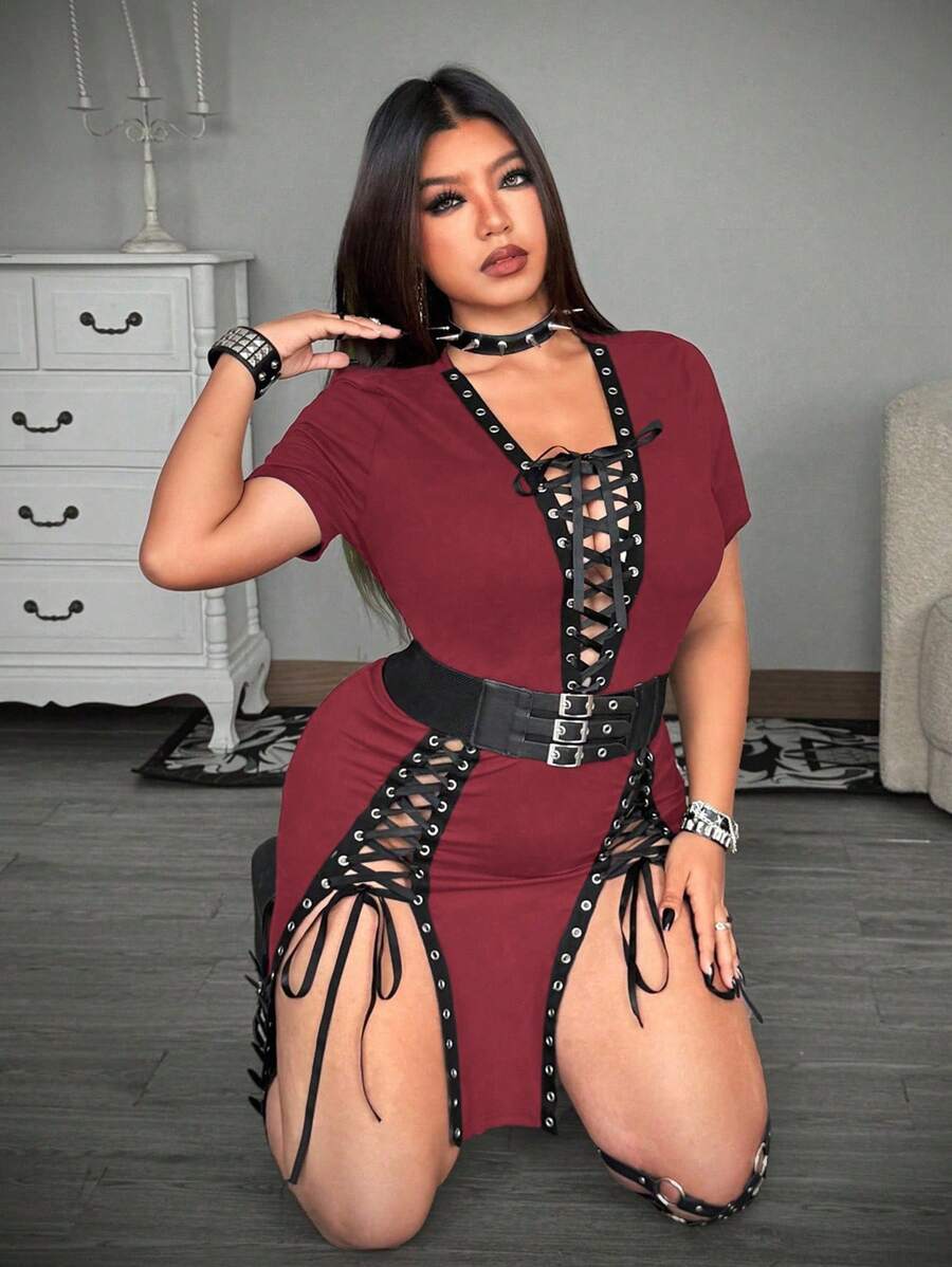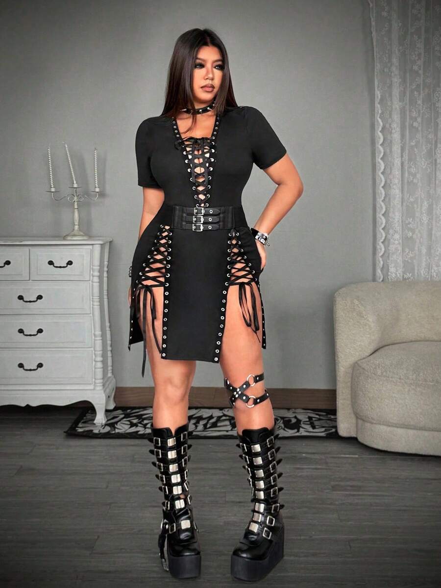 Whyspr vestido ajustado sexy de talla grande con tirantes cruzados y abertura, para verano