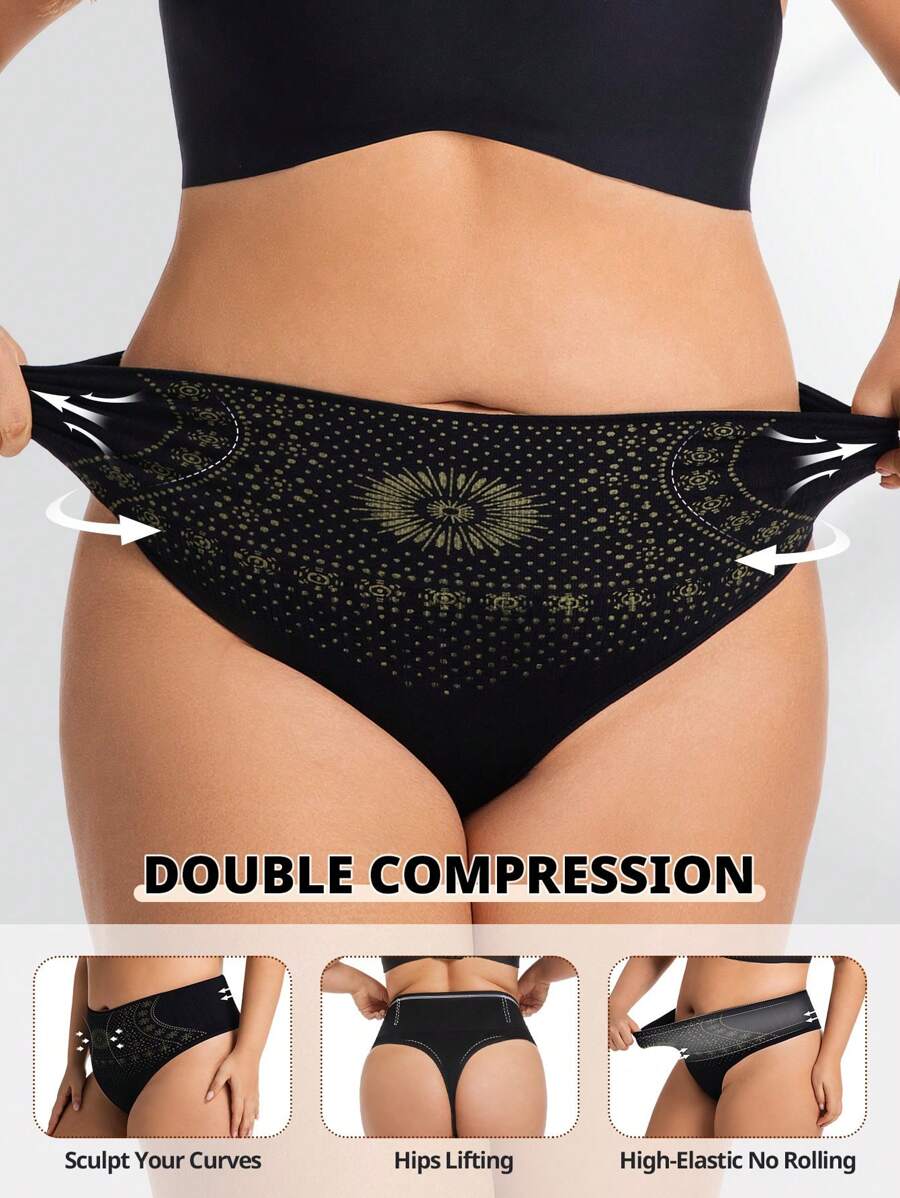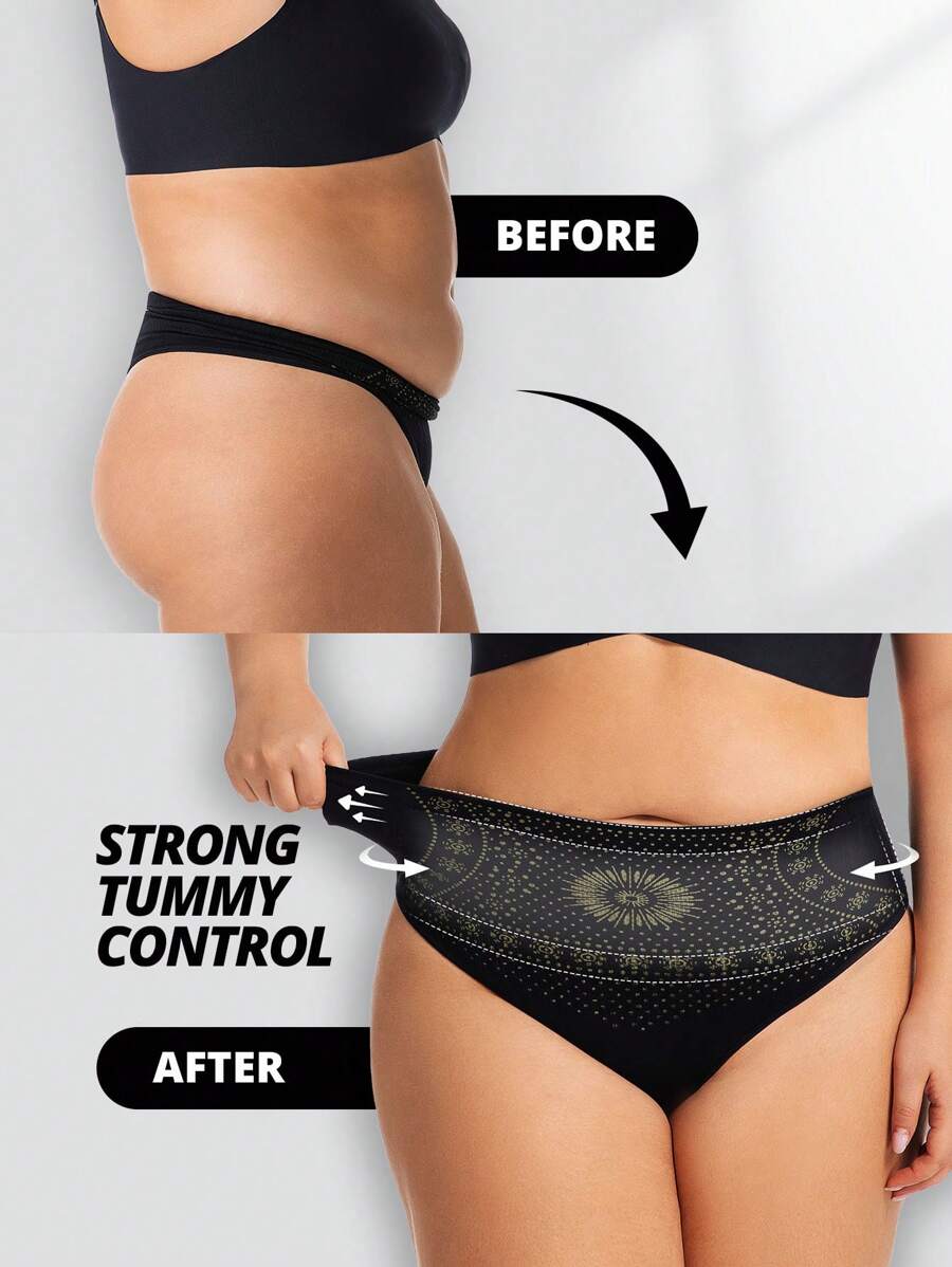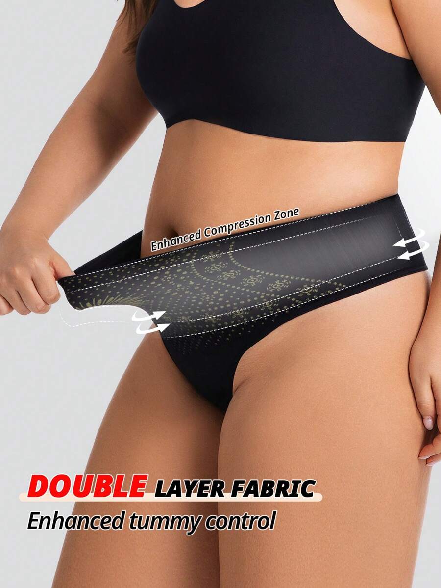 Flarixa 1 pieza tanga sin costuras de cintura alta y talla grande para mujer, ropa interior moldeadora que controla el abdomen y da forma al vientre, con doble cintura para evitar enrollamiento