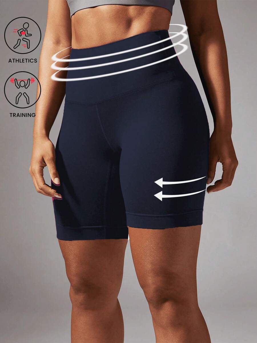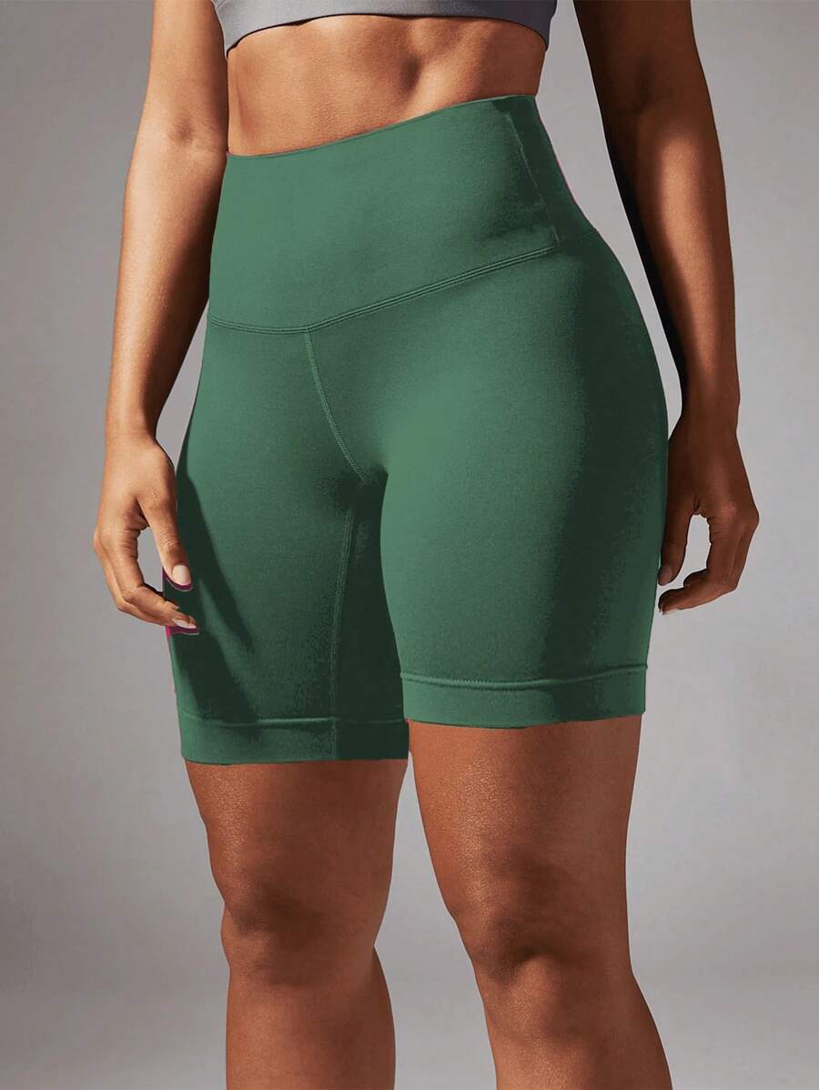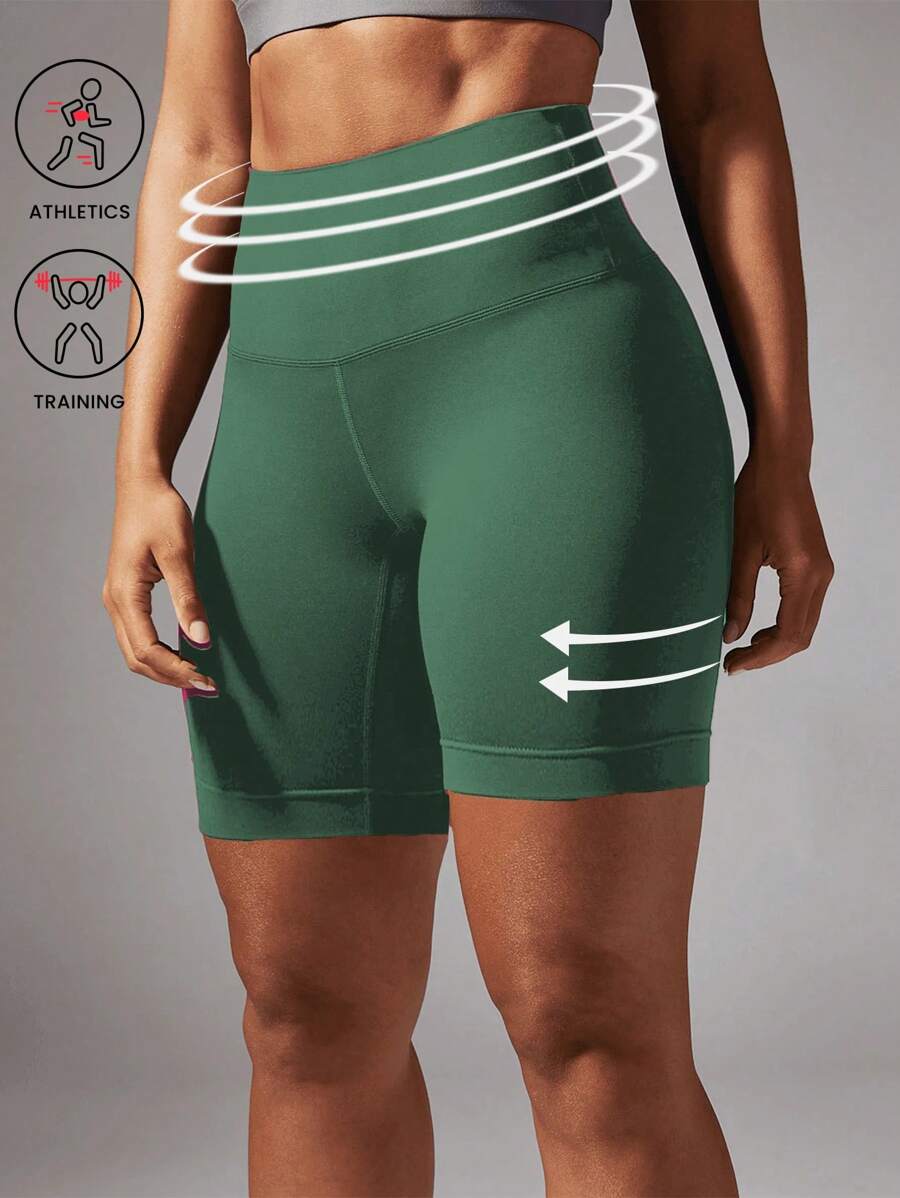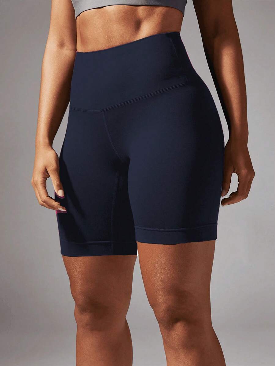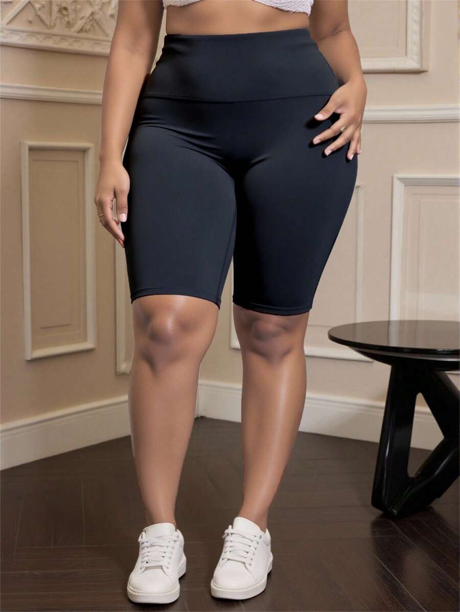 Pantalones cortos de fitness casuales de cintura alta y unicolor para mujer de talla grande