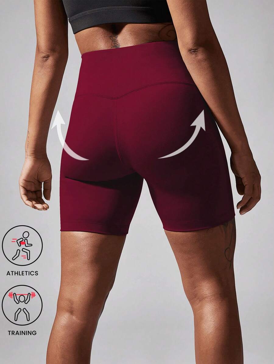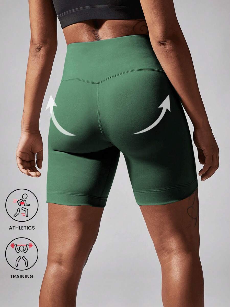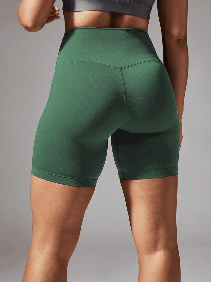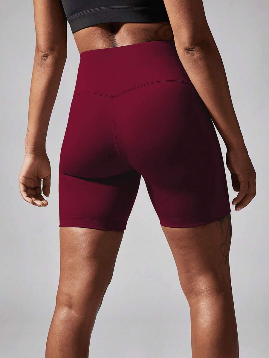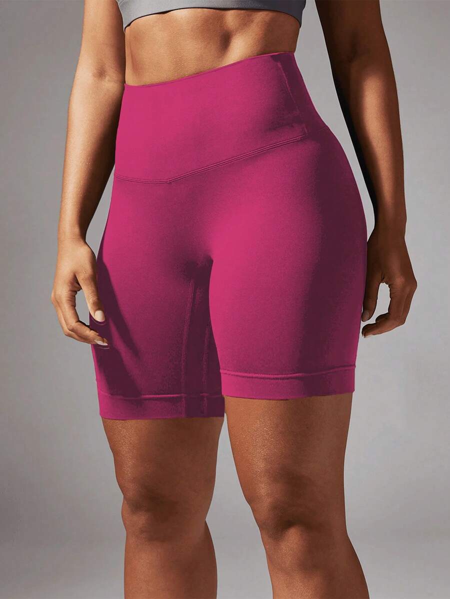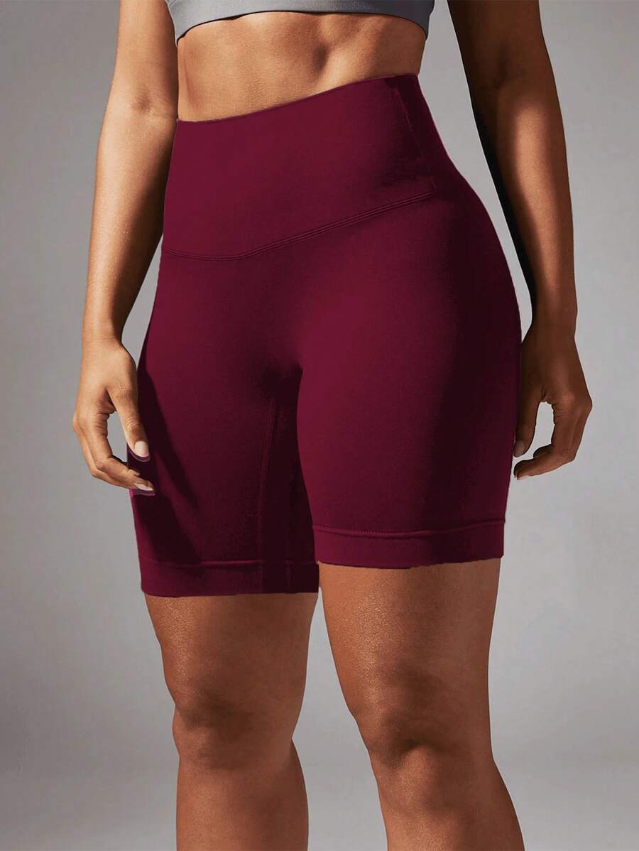 Pantalones cortos de fitness casuales de cintura alta y unicolor para mujer de talla grande
