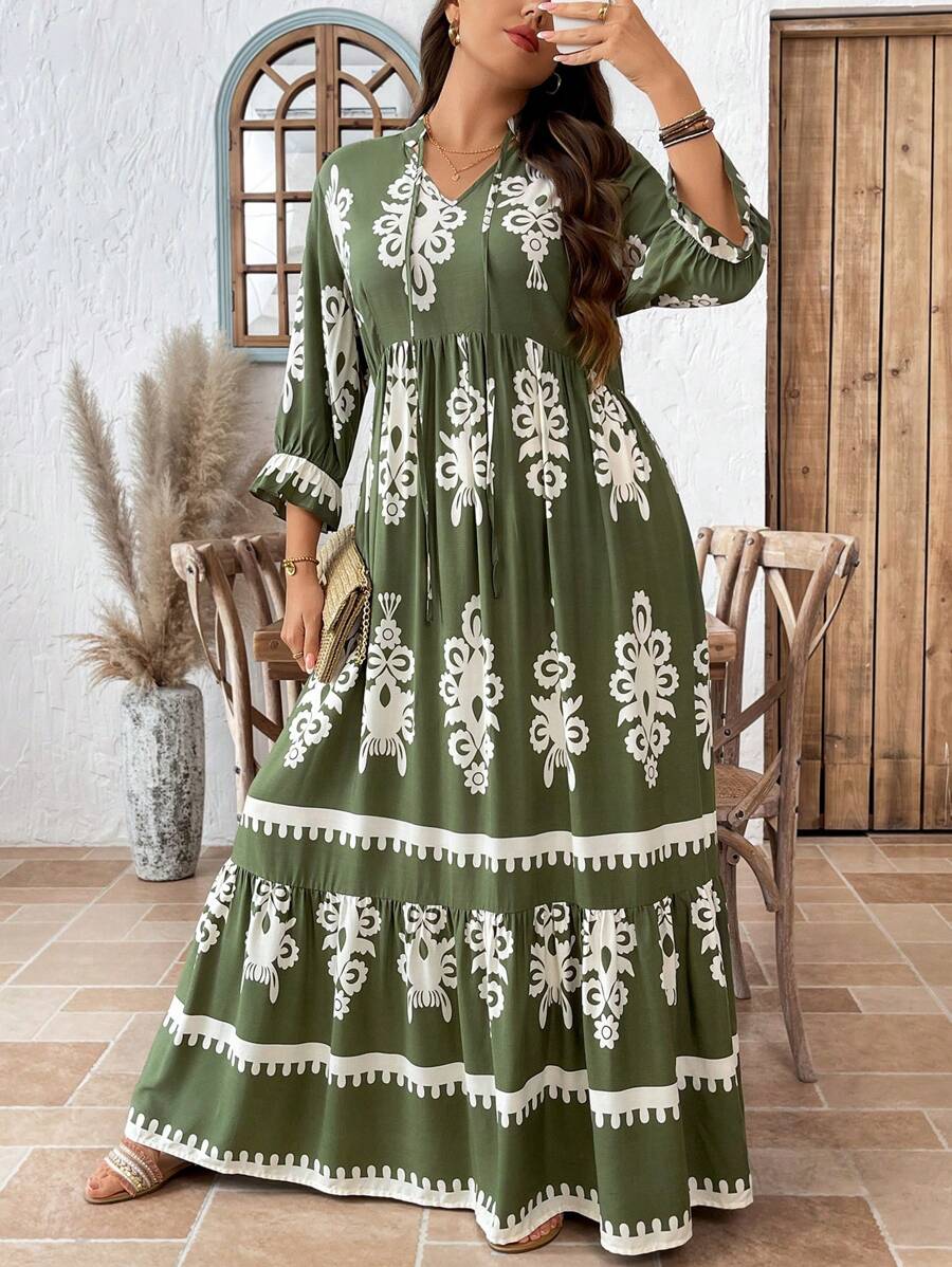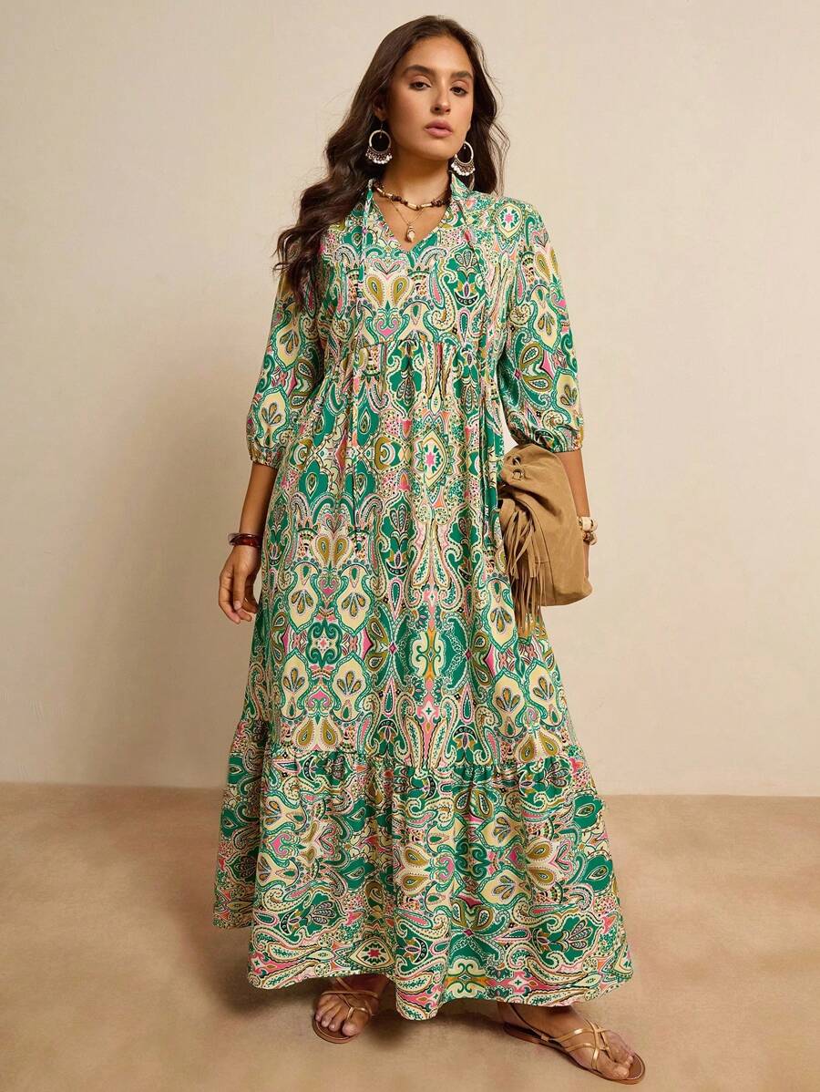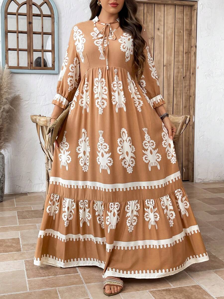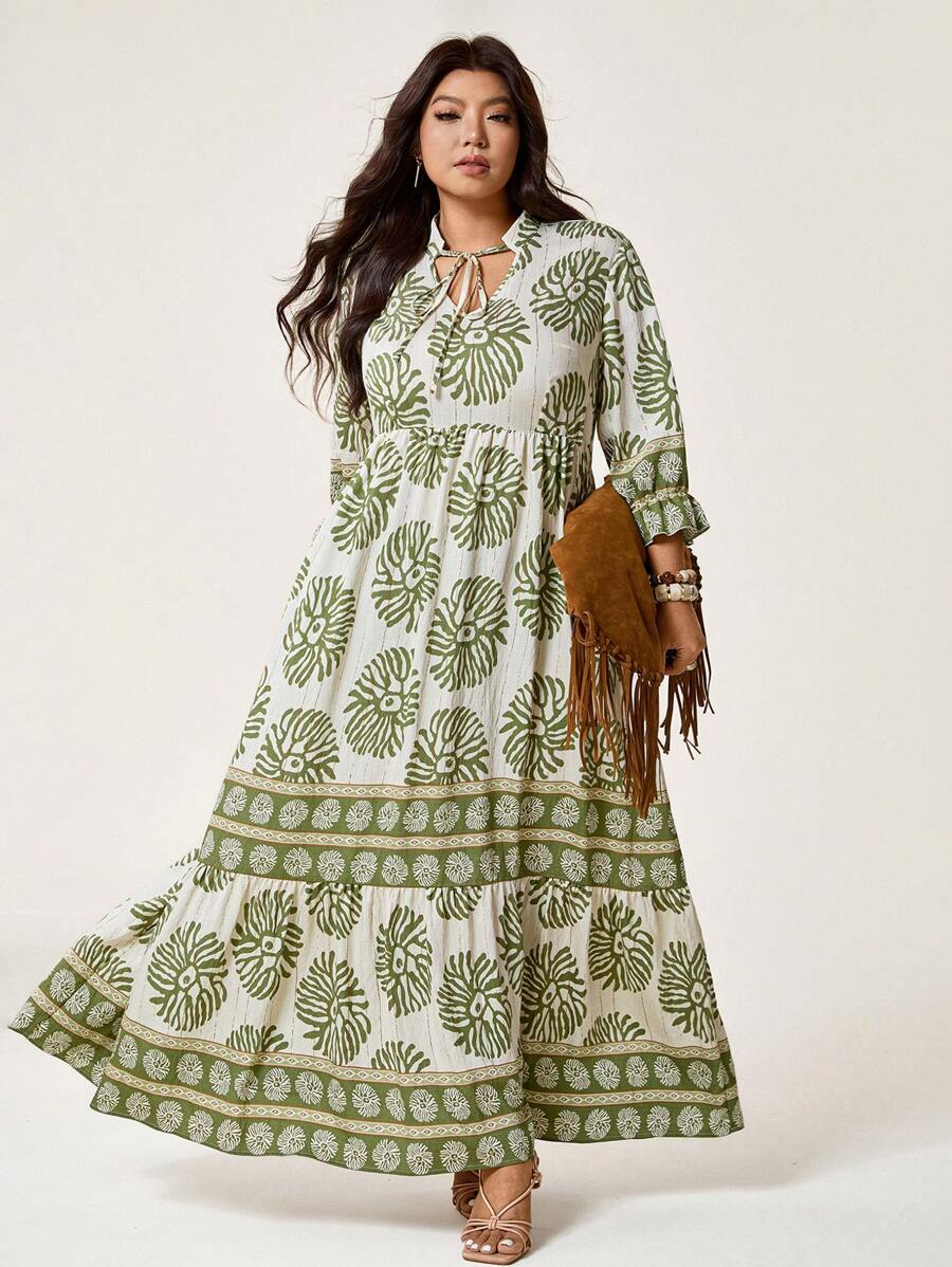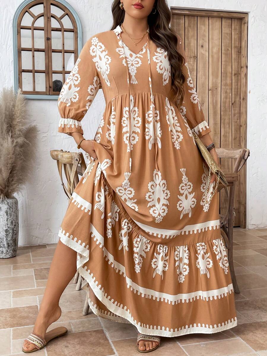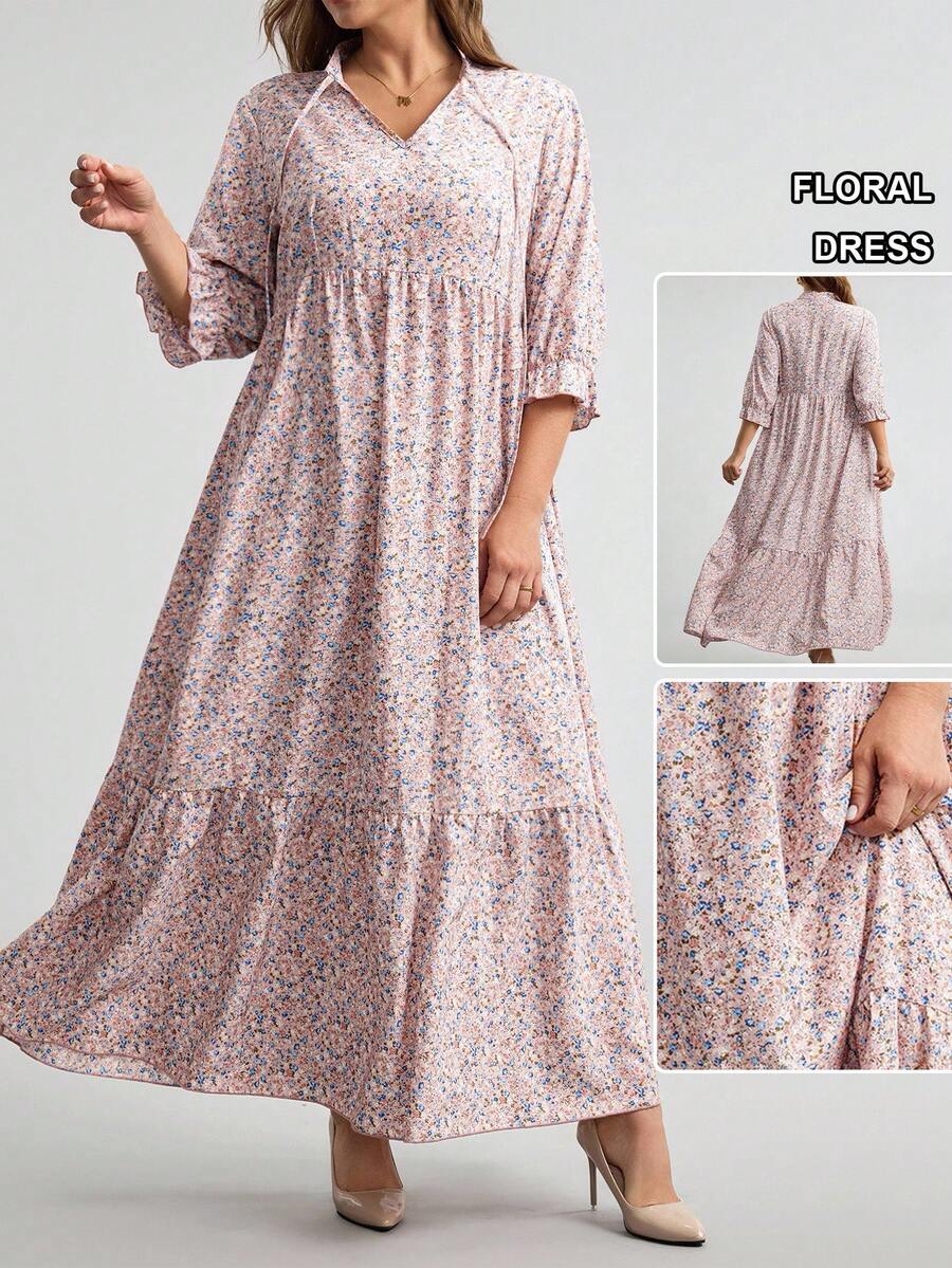 Vestido de estilo occidental informal de talla grande para vacaciones, festival de musica, pascua, vacaciones de primavera, estilo boho, rave, vacaciones, estilo elegante y casual con estampado floral, atuendo para conciertos, festivales y