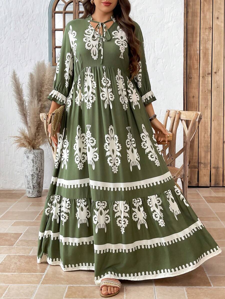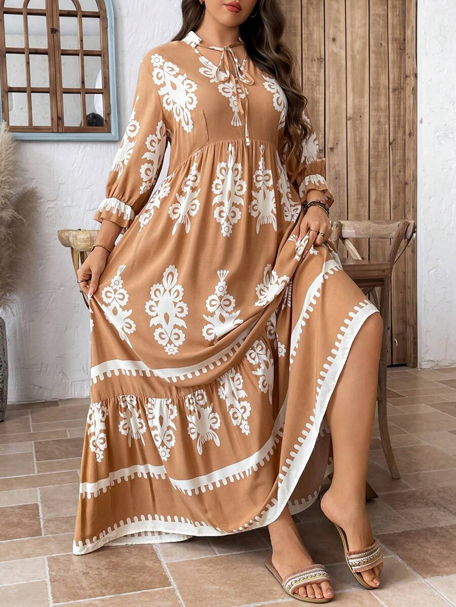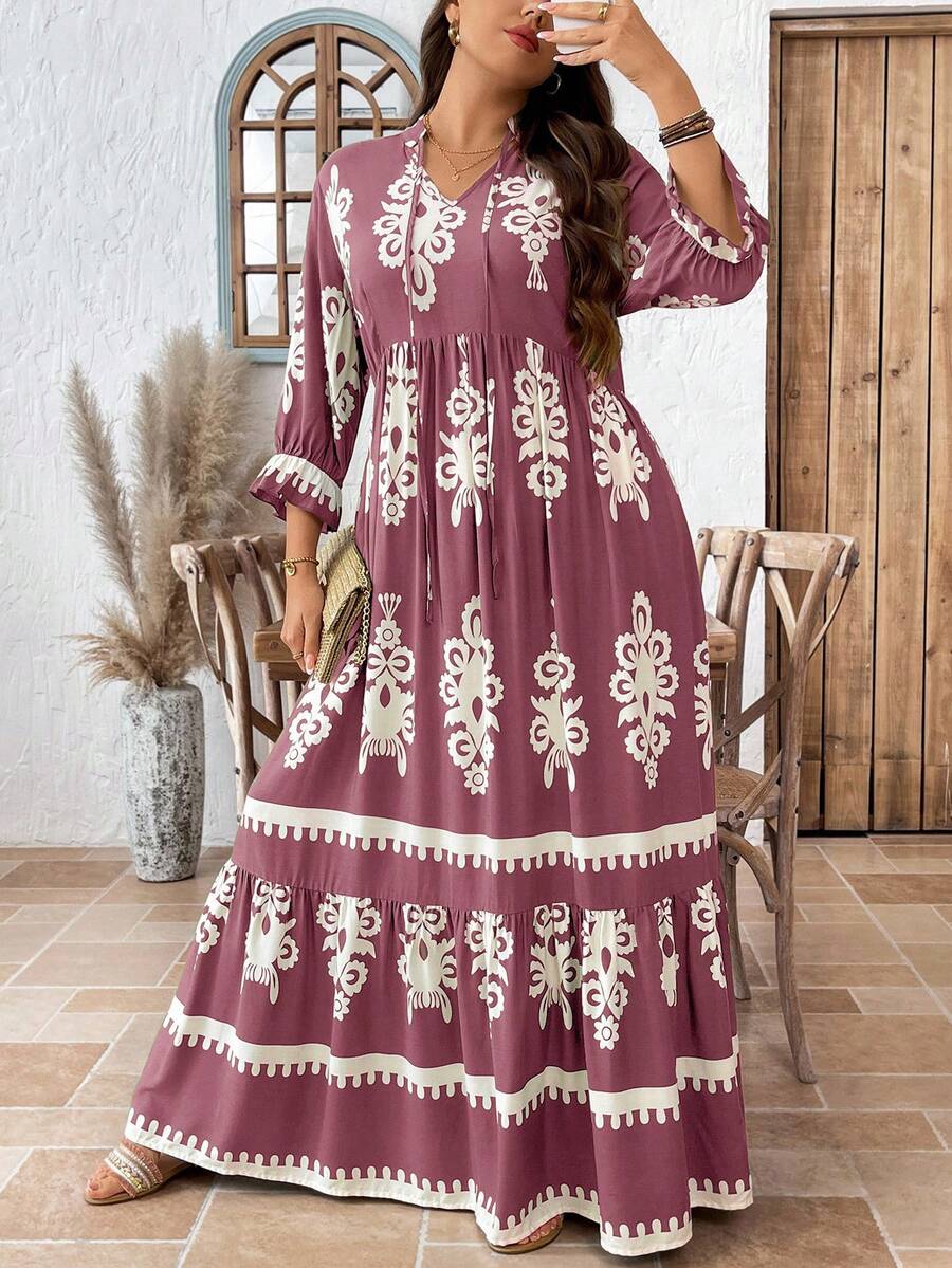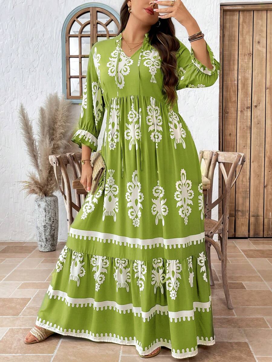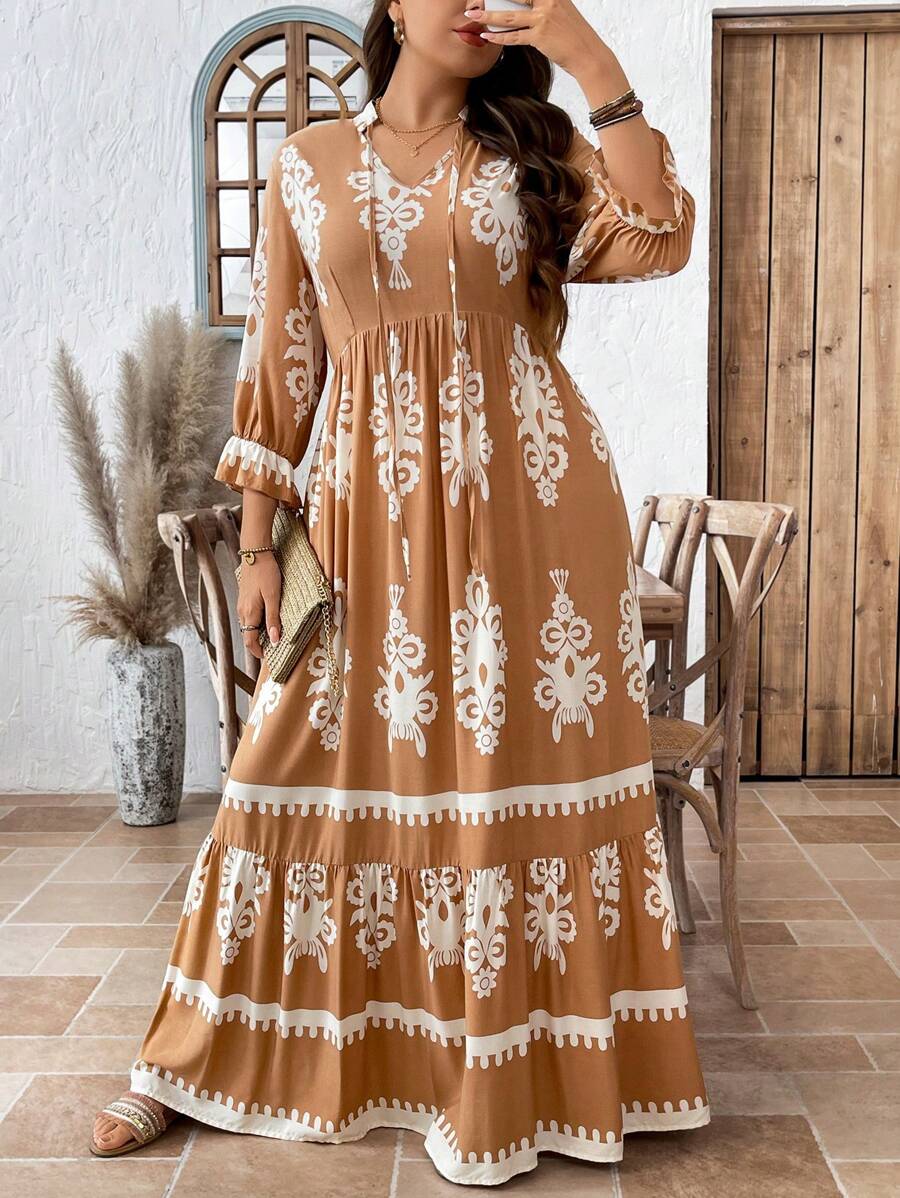 Vestido de estilo occidental informal de talla grande para vacaciones, festival de musica, pascua, vacaciones de primavera, estilo boho, rave, vacaciones, estilo elegante y casual con estampado floral, atuendo para conciertos, festivales y