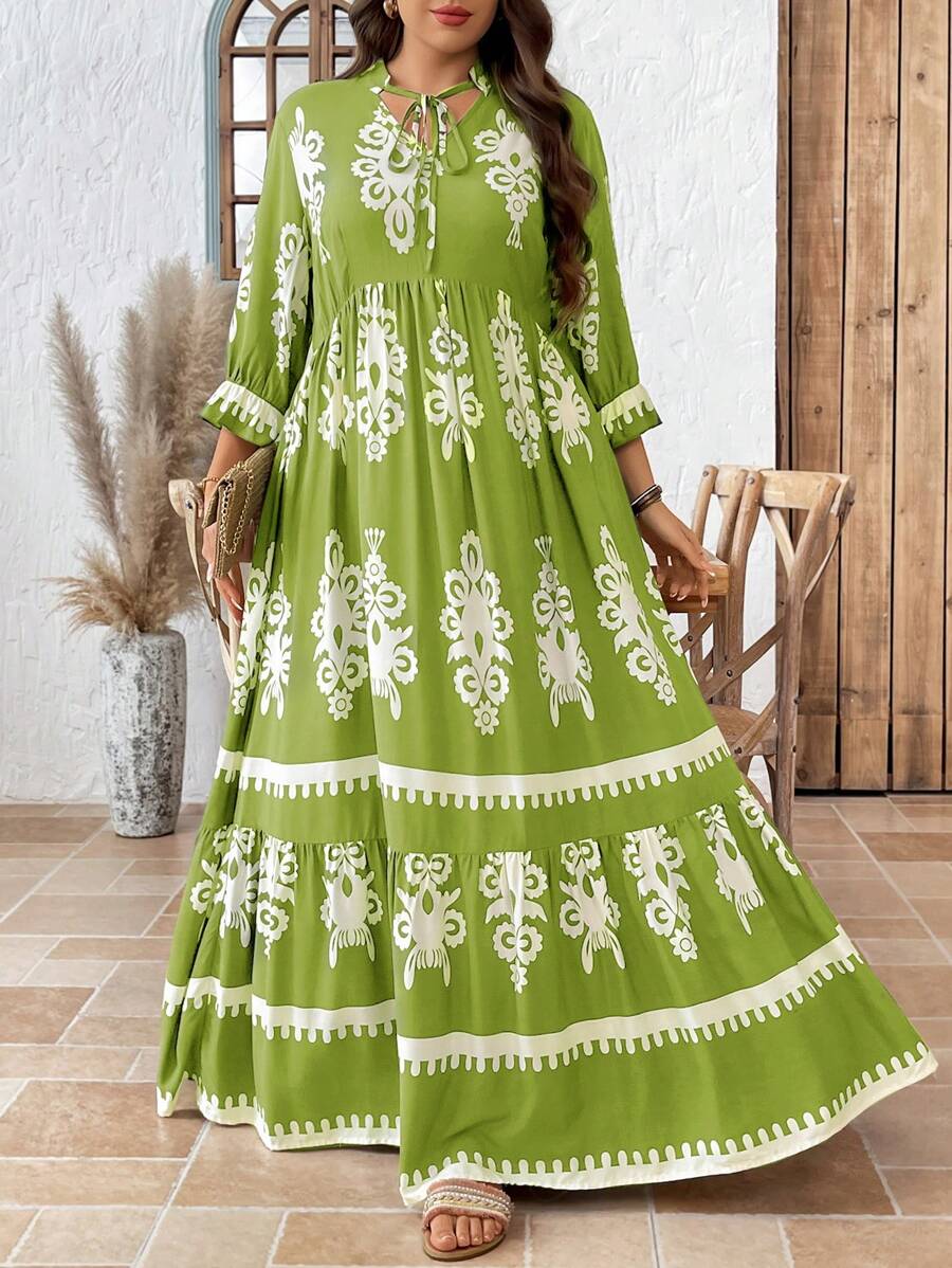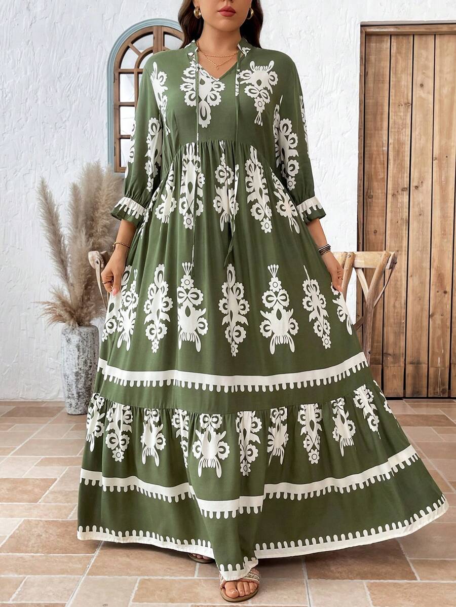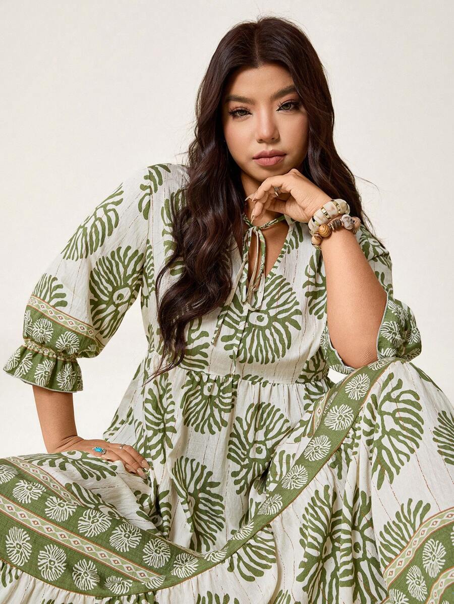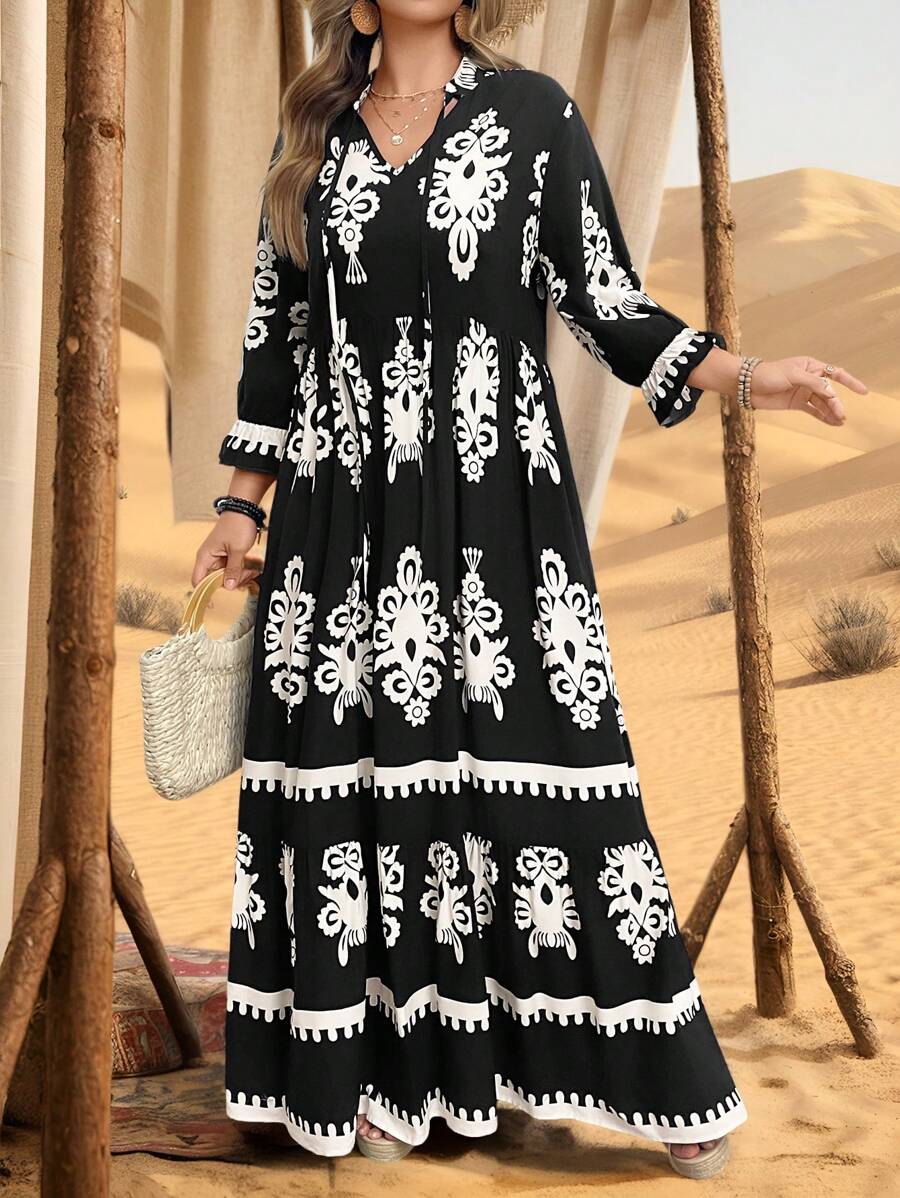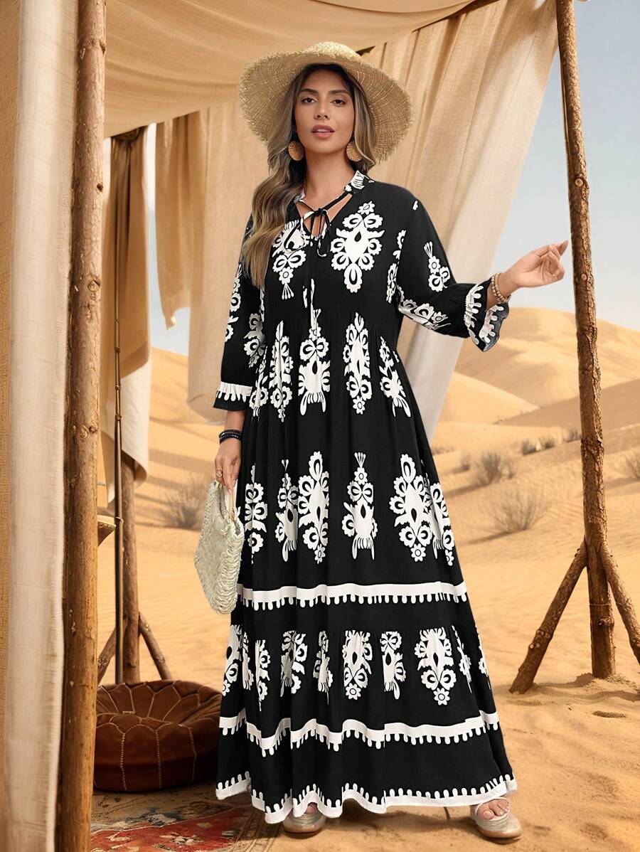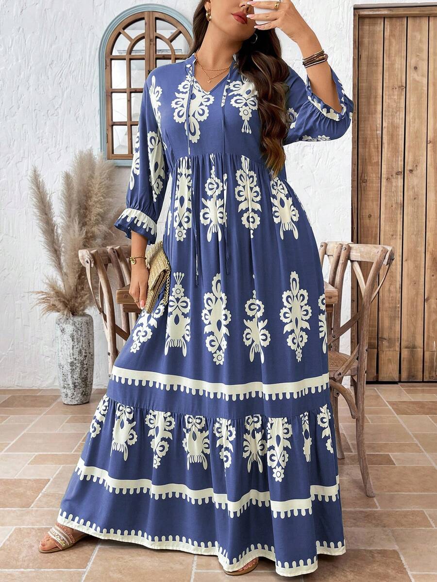 Vestido de estilo occidental informal de talla grande para vacaciones, festival de musica, pascua, vacaciones de primavera, estilo boho, rave, vacaciones, estilo elegante y casual con estampado floral, atuendo para conciertos, festivales y