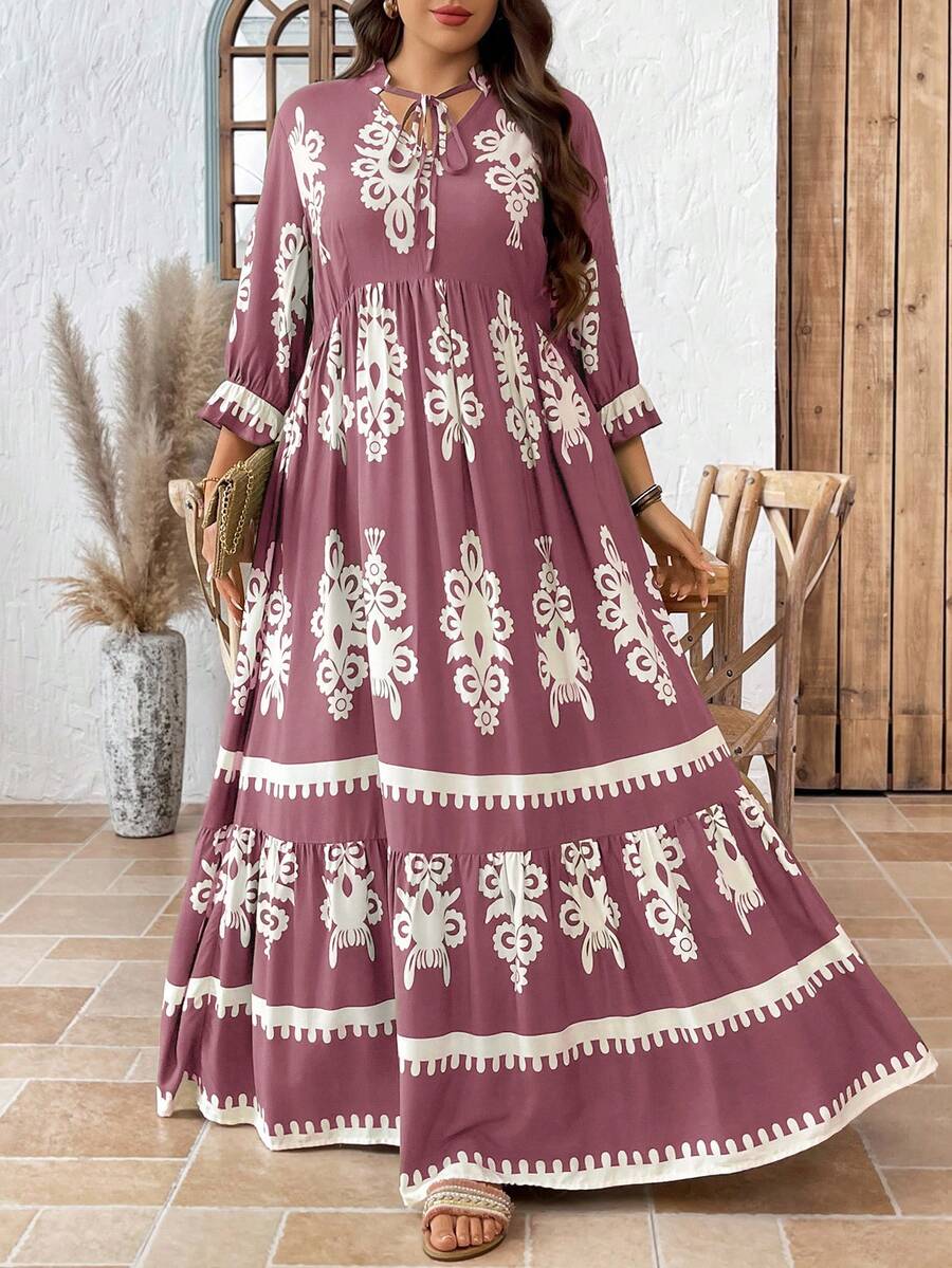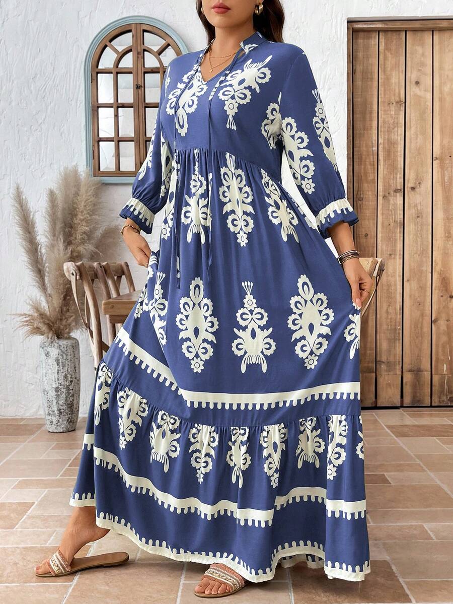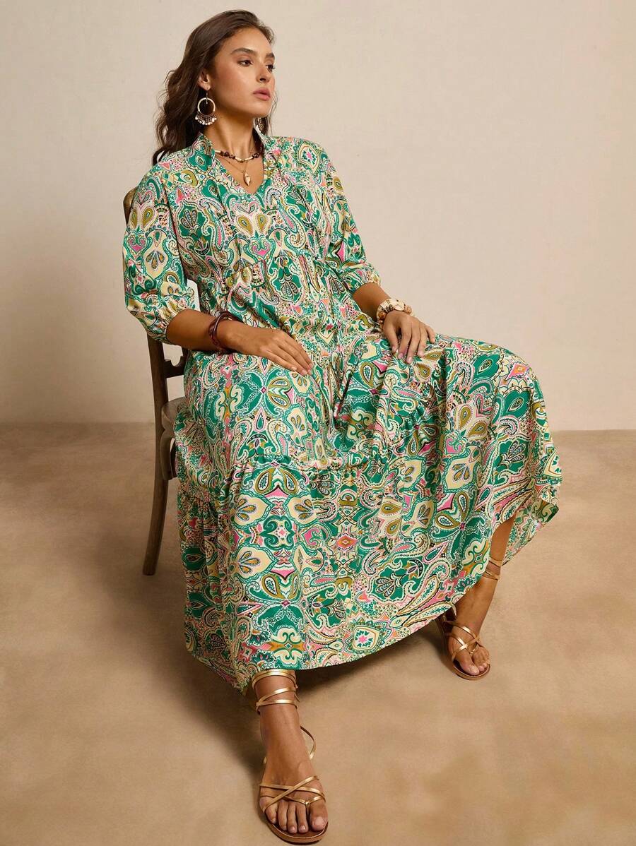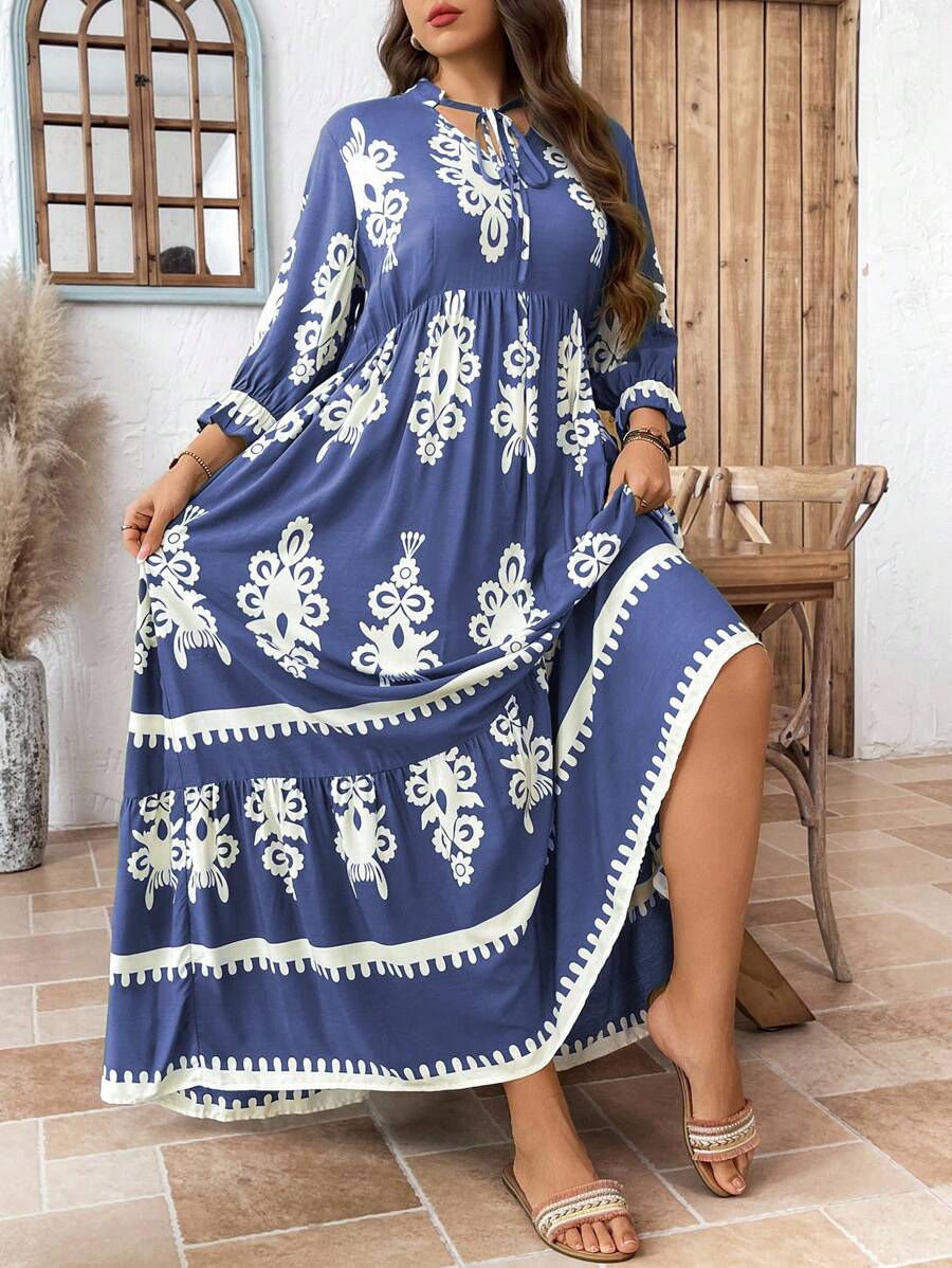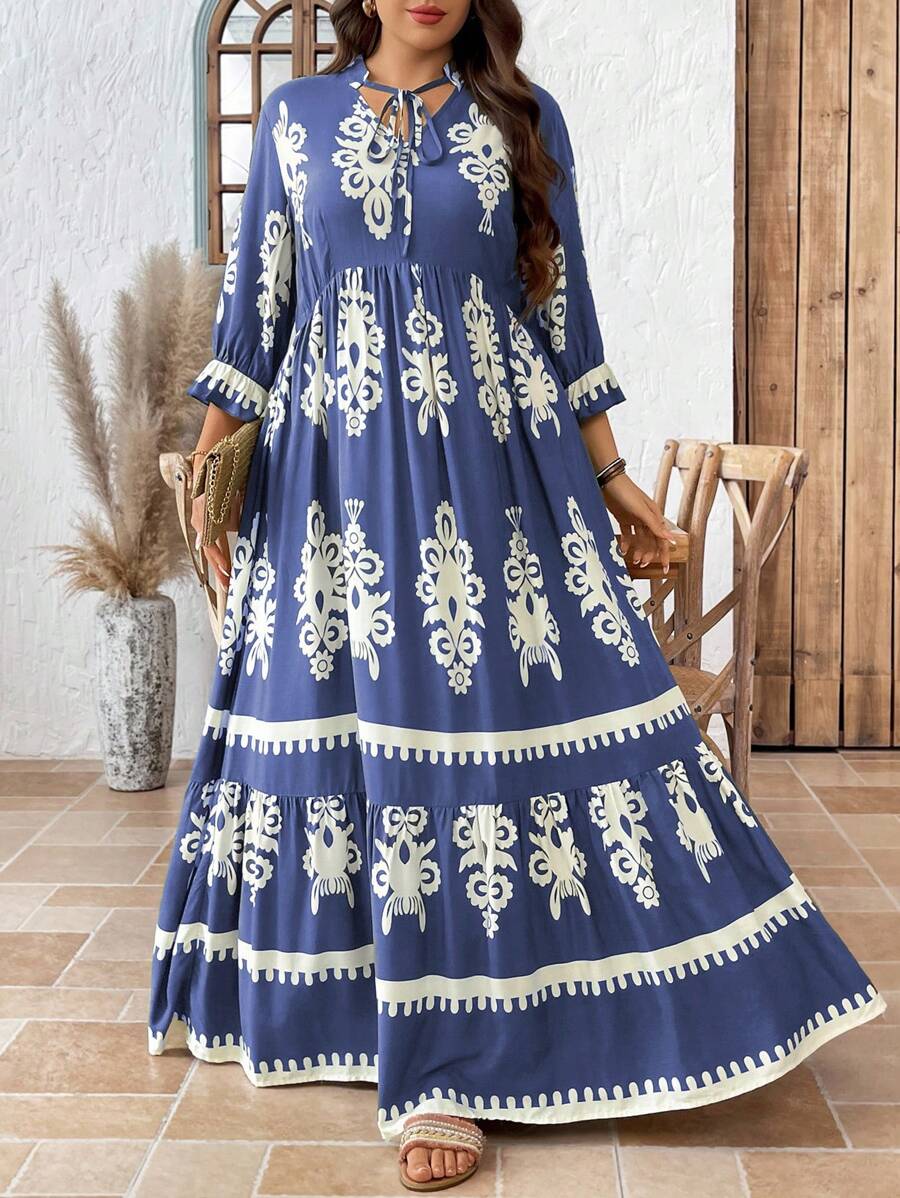 Vestido de estilo occidental informal de talla grande para vacaciones, festival de musica, pascua, vacaciones de primavera, estilo boho, rave, vacaciones, estilo elegante y casual con estampado floral, atuendo para conciertos, festivales y