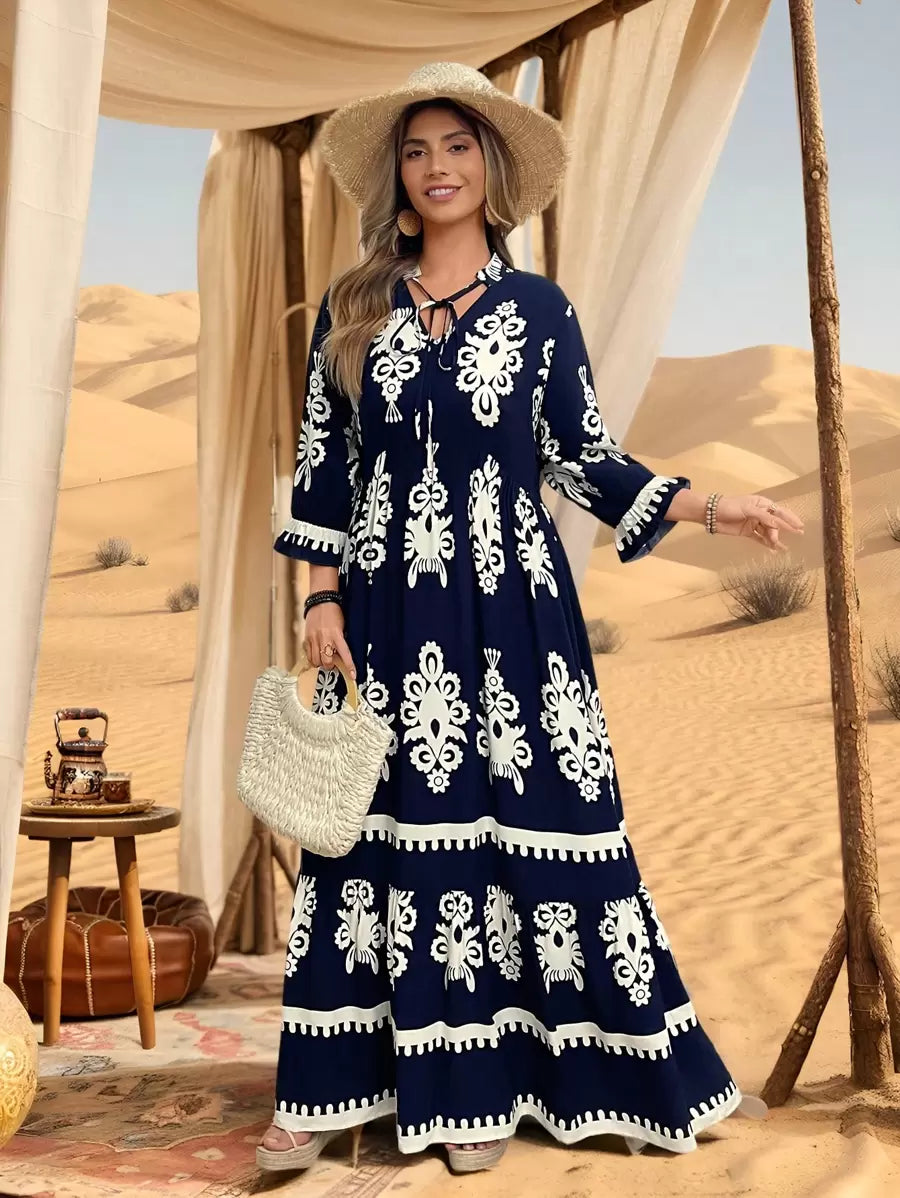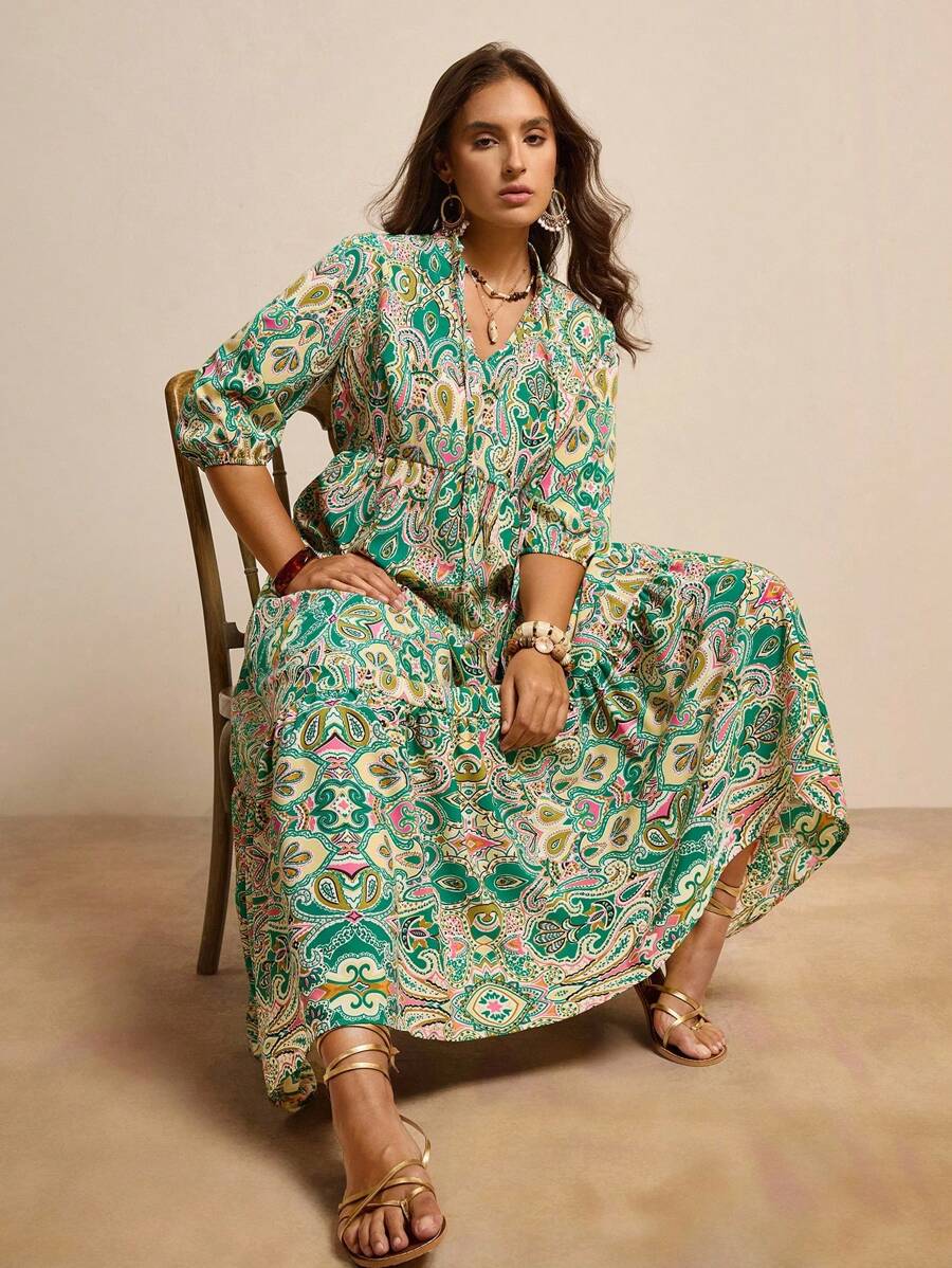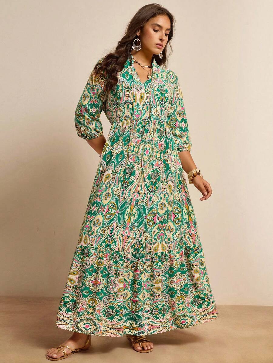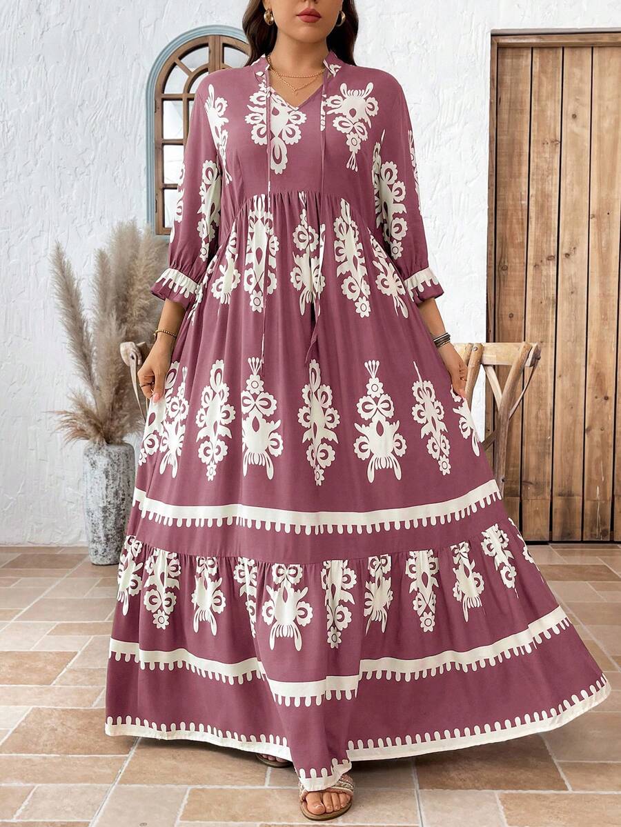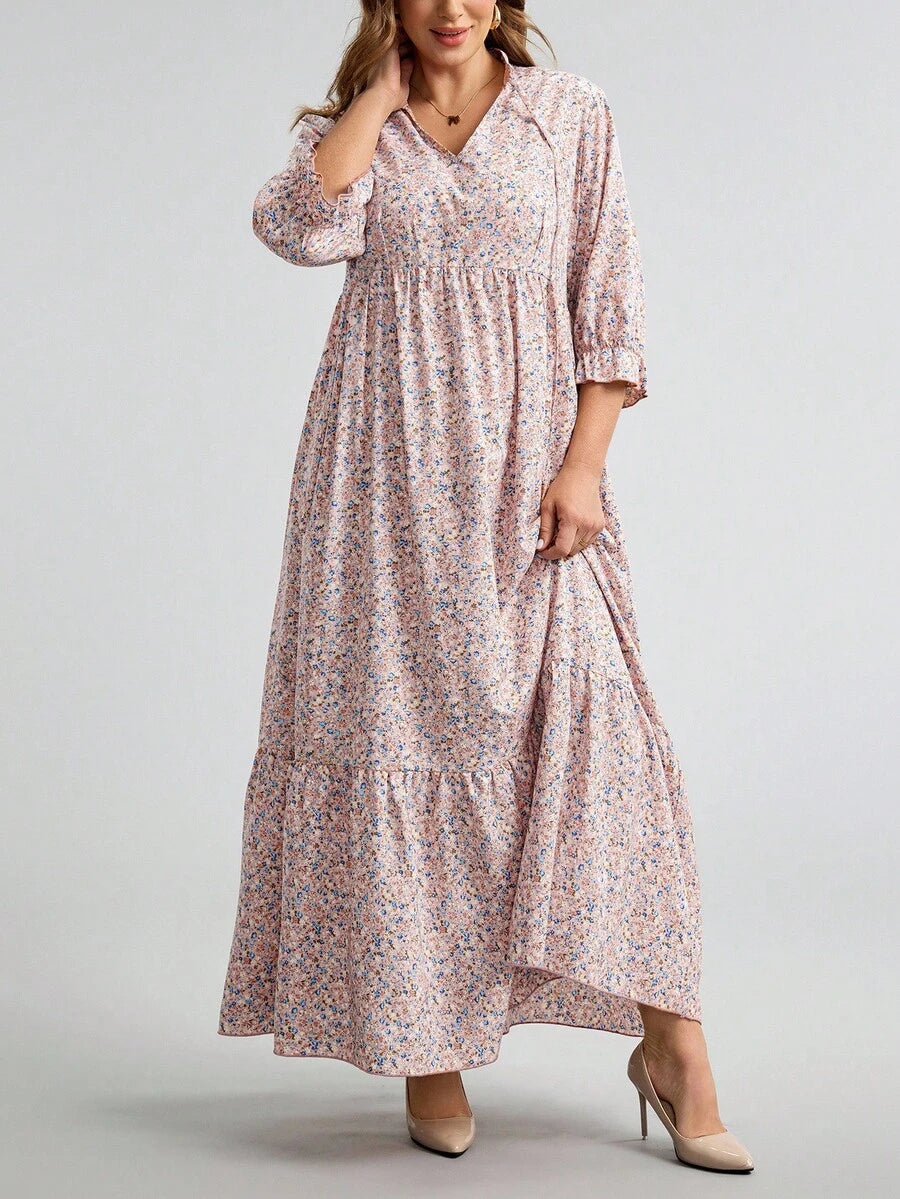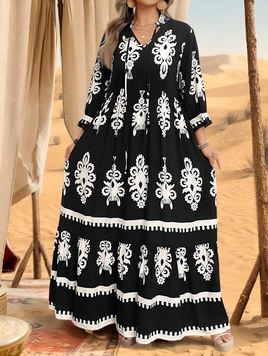 Vestido de estilo occidental informal de talla grande para vacaciones, festival de musica, pascua, vacaciones de primavera, estilo boho, rave, vacaciones, estilo elegante y casual con estampado floral, atuendo para conciertos, festivales y