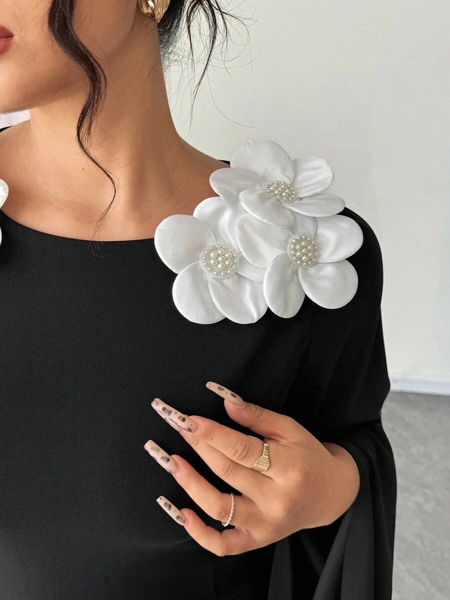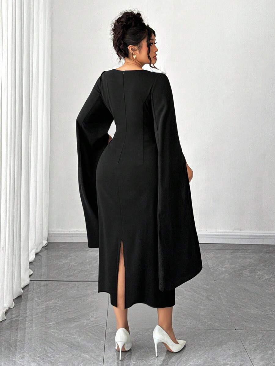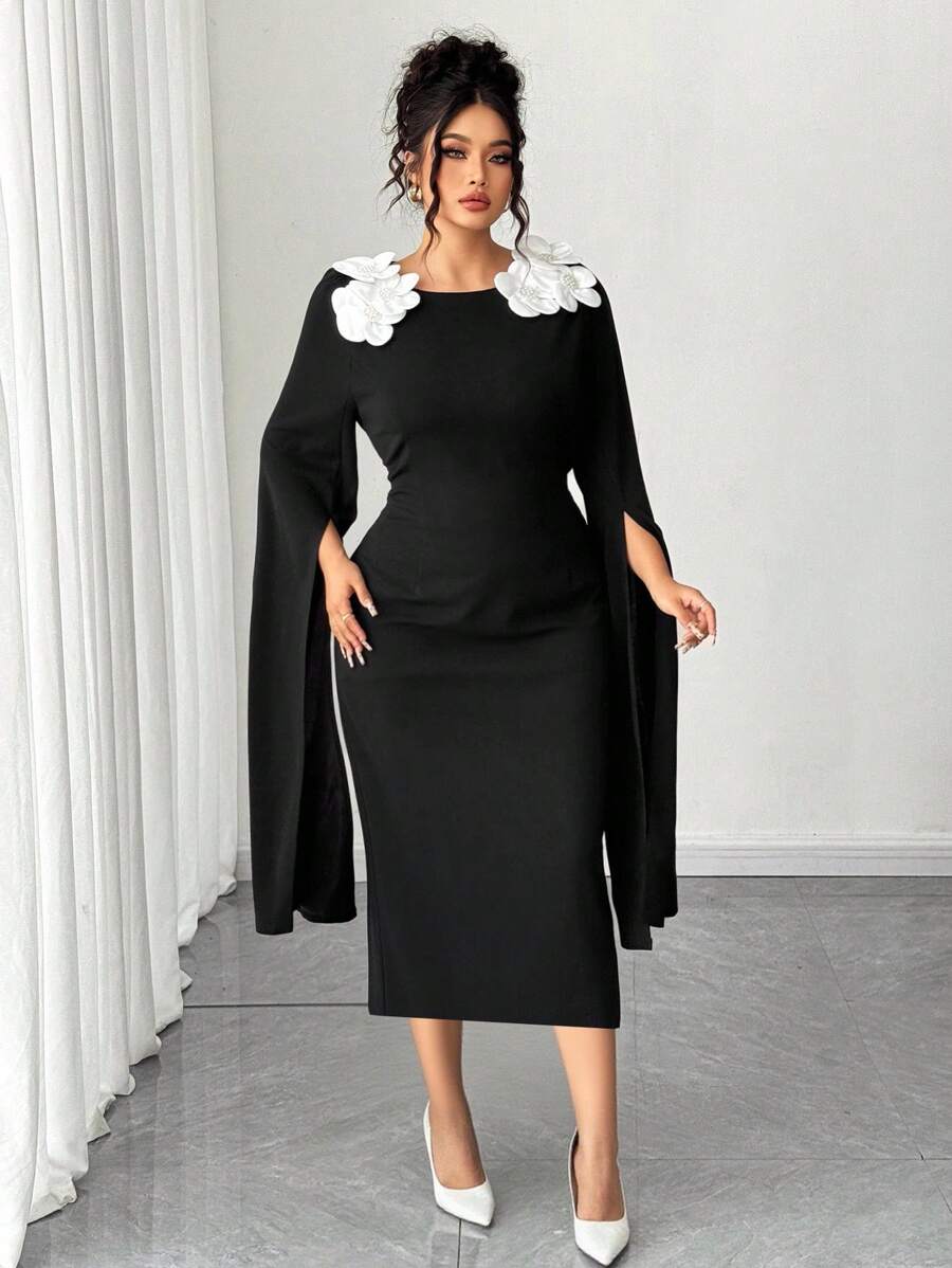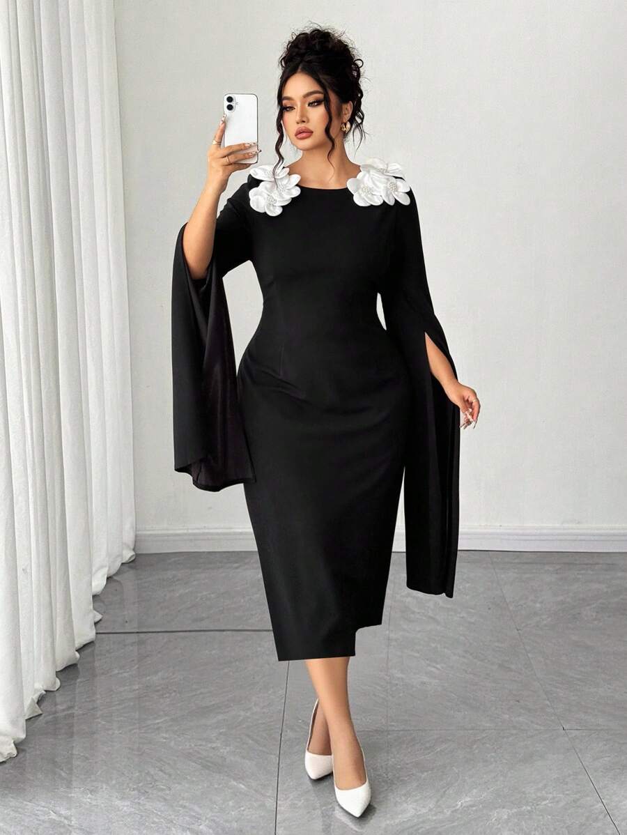 Vestido elegante y de moda de alta gama para mujer con cuello redondo y decoracion de aplicaciones, talla grande