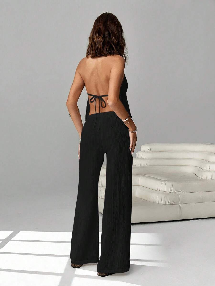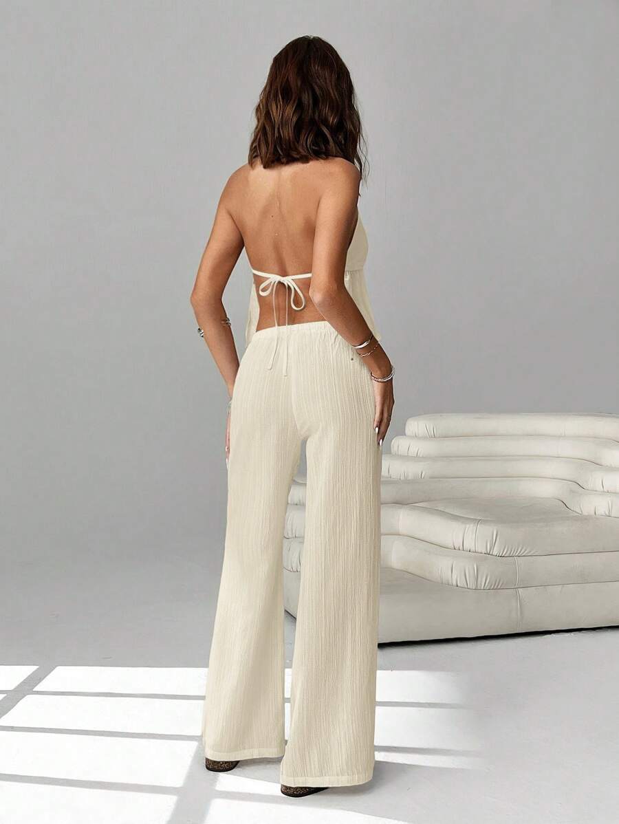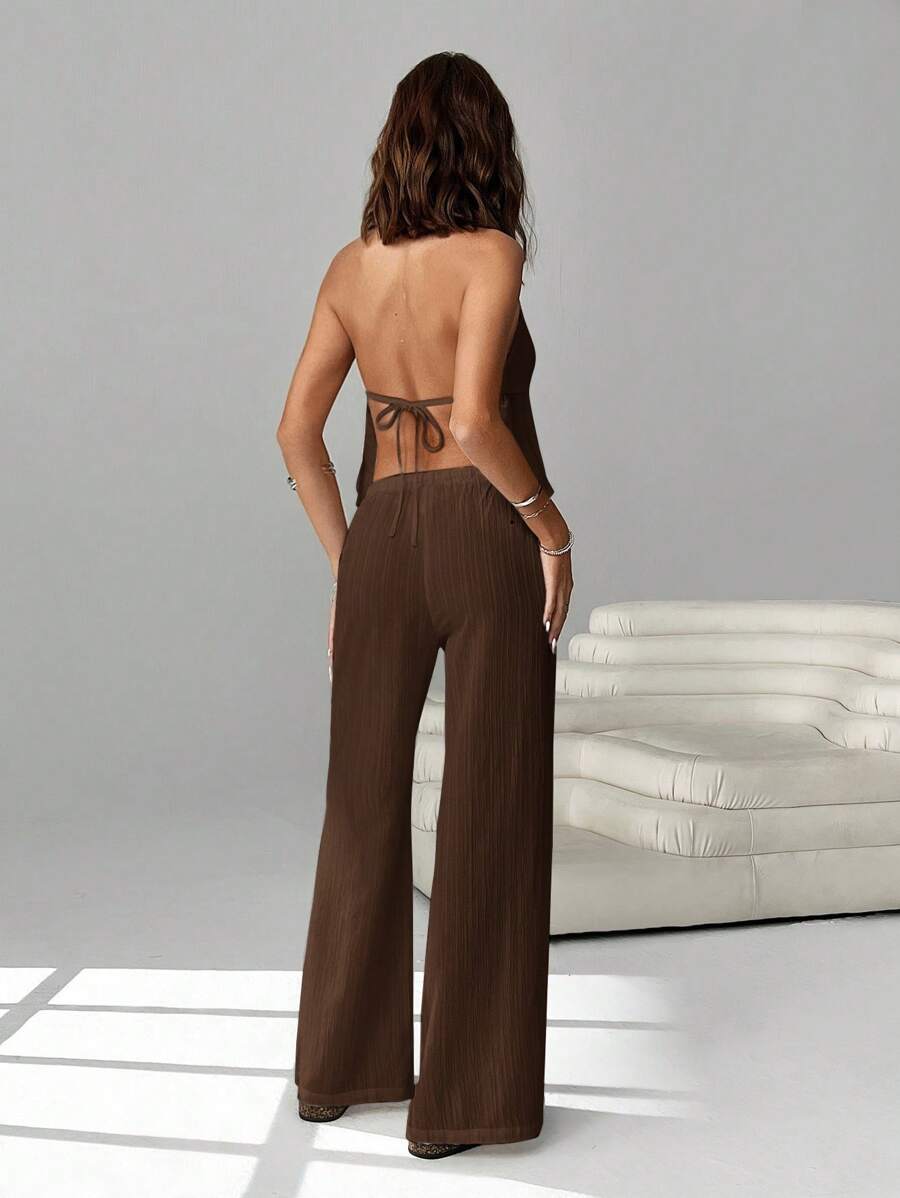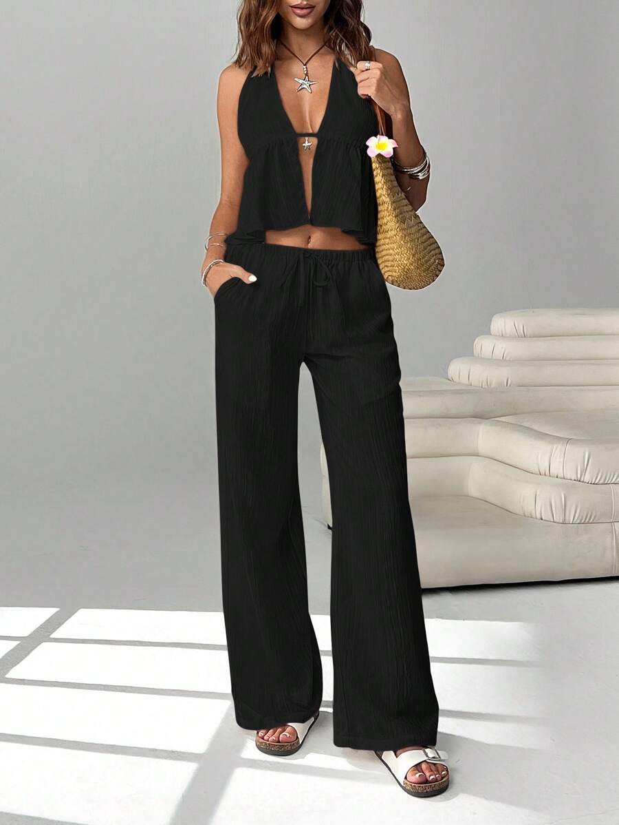 2 piezas conjunto de top halter y pantalones casuales de vacaciones para mujer