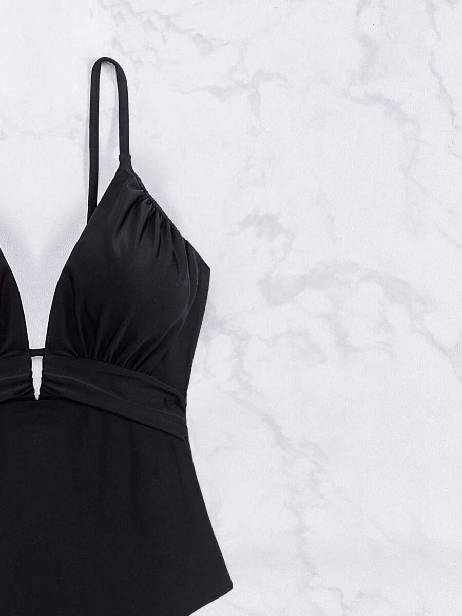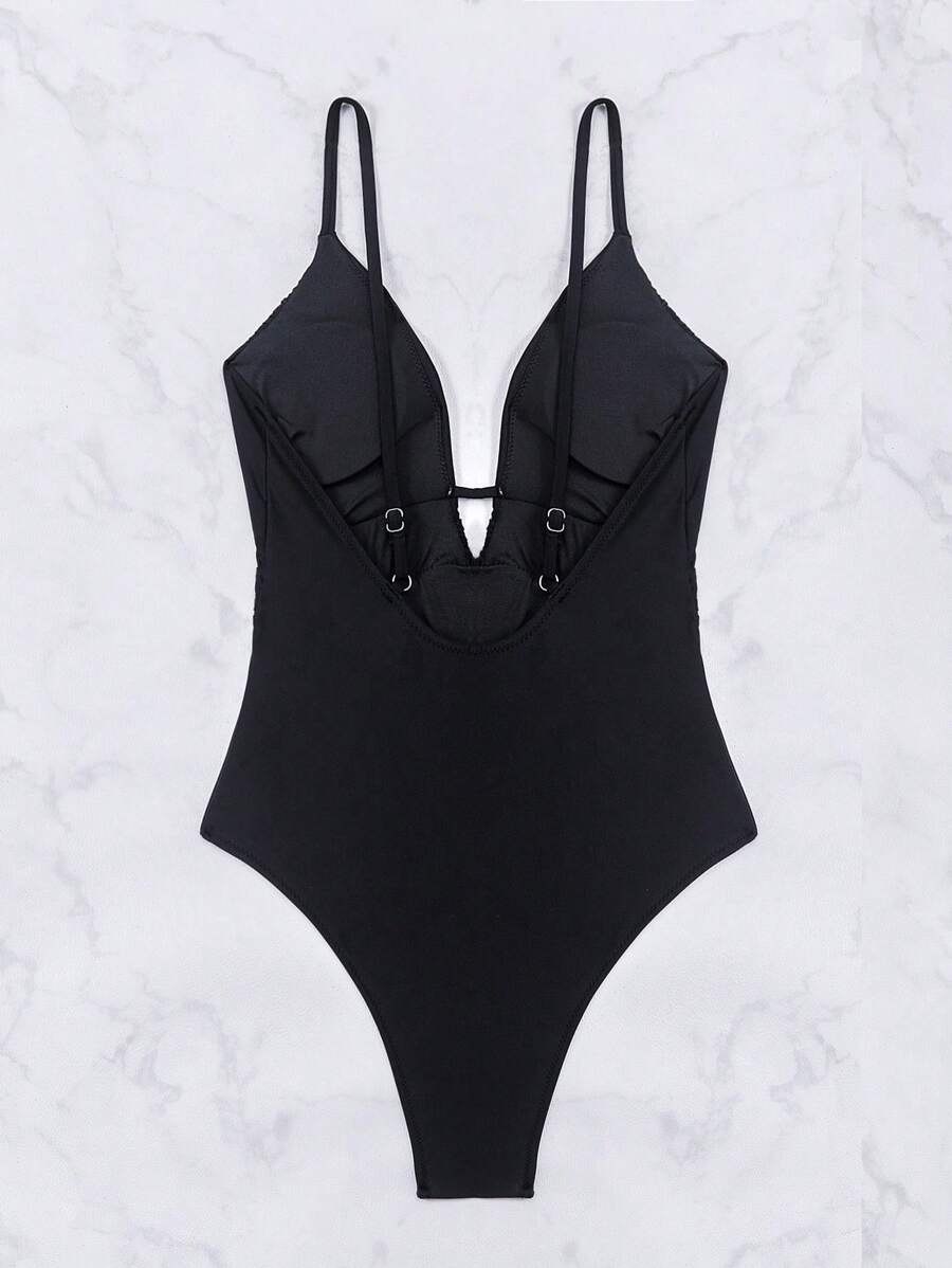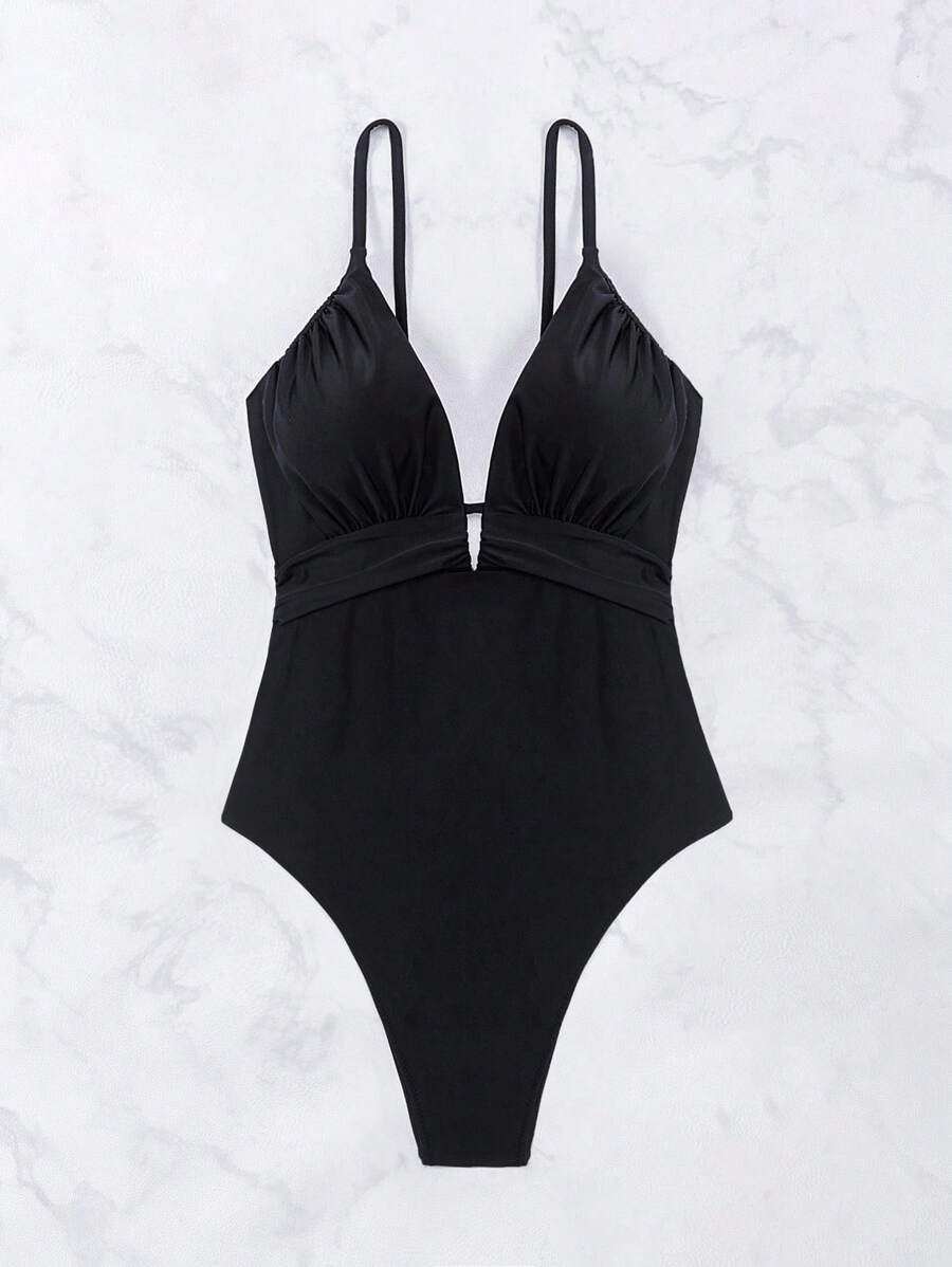 1 pieza traje de bano de mujer de unicolor con tirantes finos y diseno sexy con aberturas