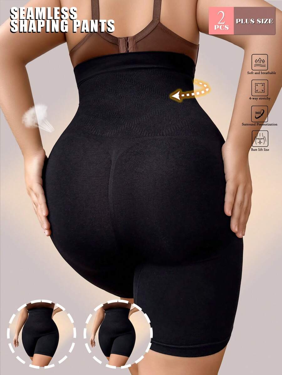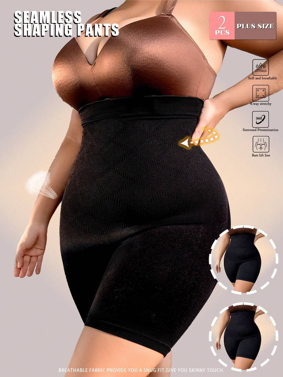 2 piezas leggings moldeadores de cintura alta sin costuras y control de abdomen para mujer talla grande, pantalones de yoga comodos y adelgazantes