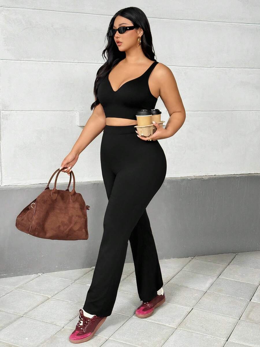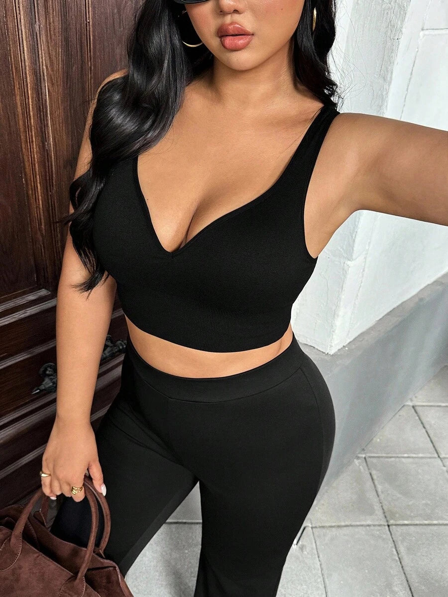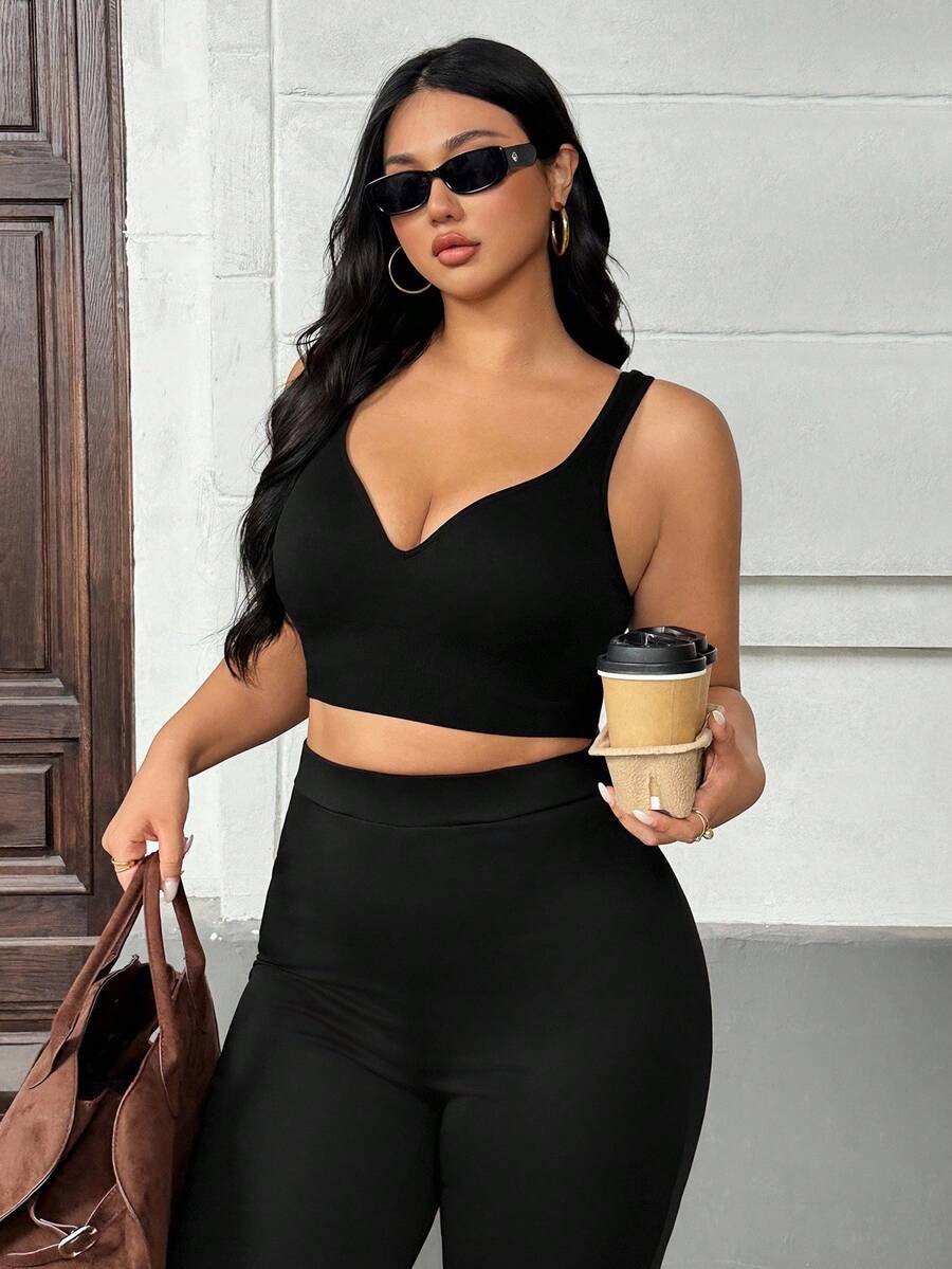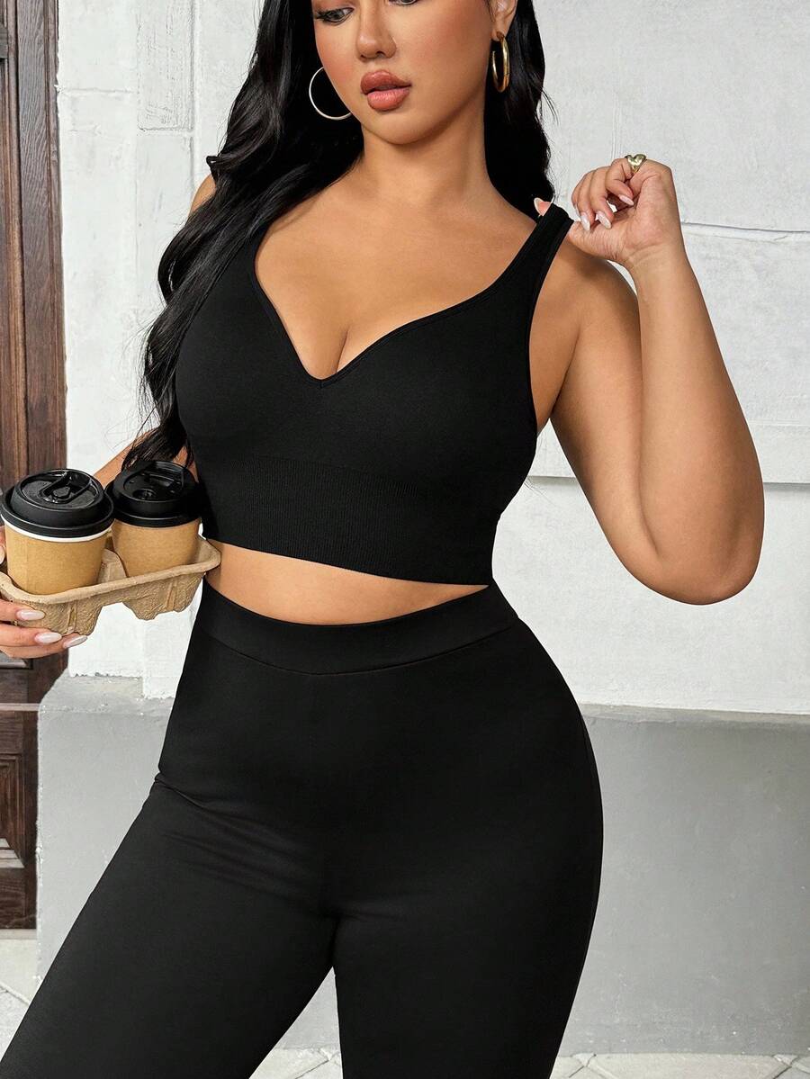 Auralis brasier deportivo sin costuras para mujer de talla grande en negro