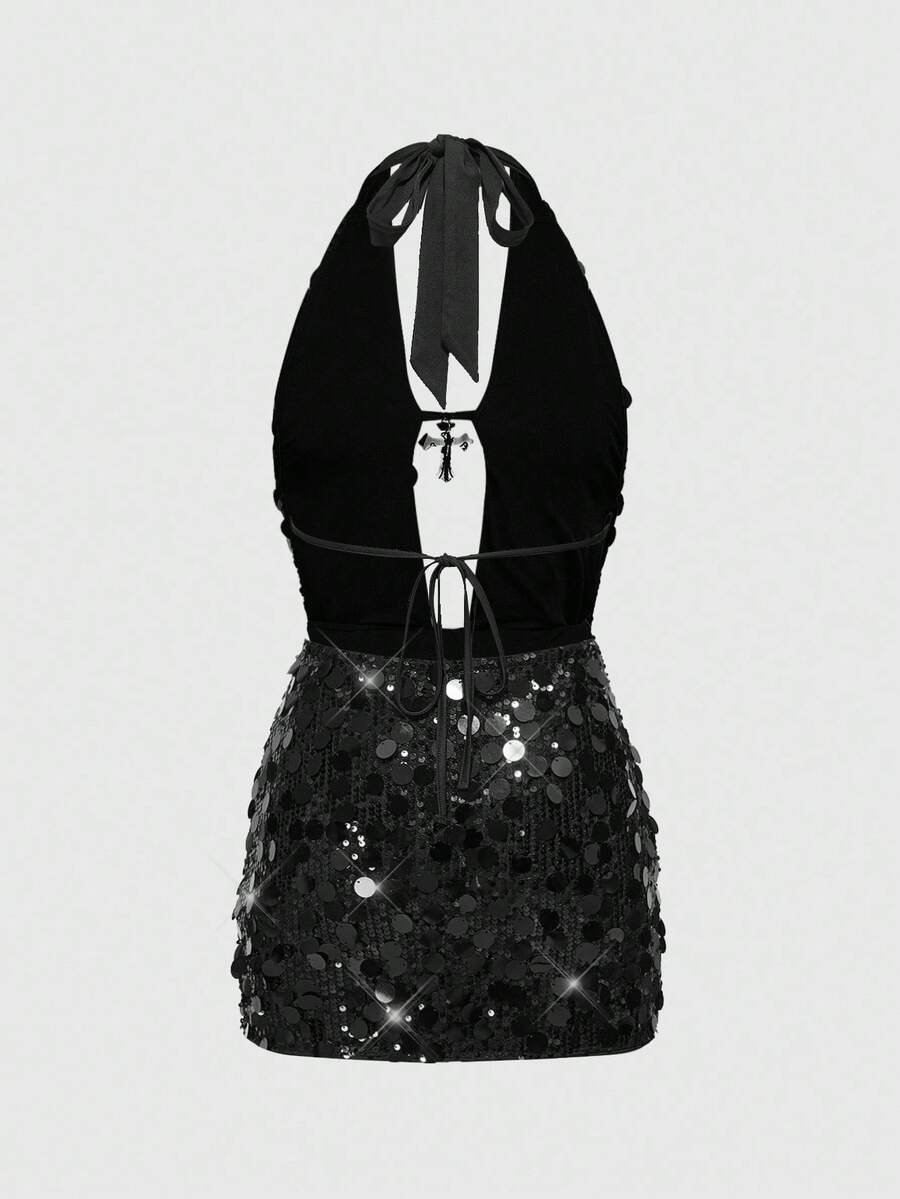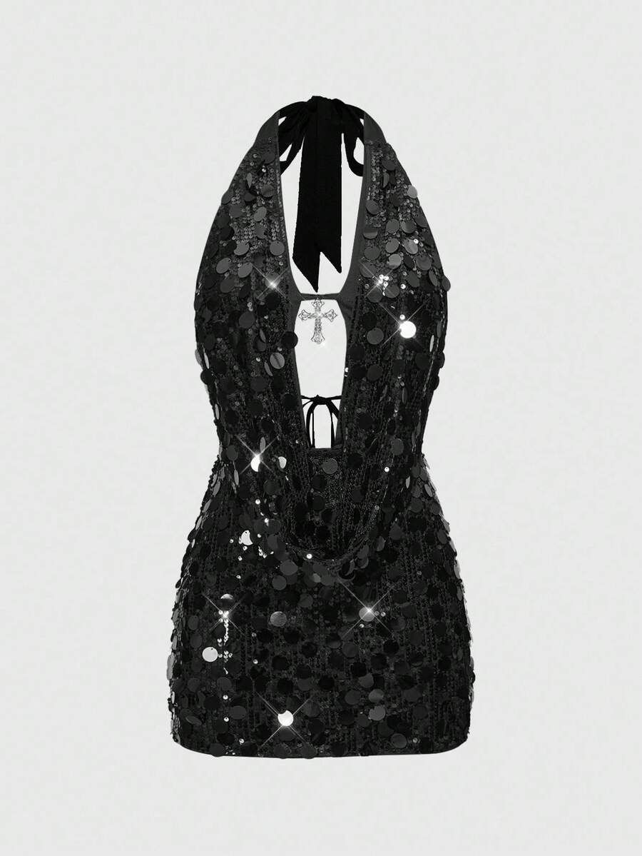 Vestido mini de mujer con tirantes de atar, estampado de leopardo y colgante en forma de cruz, de estilo sexy y moderno