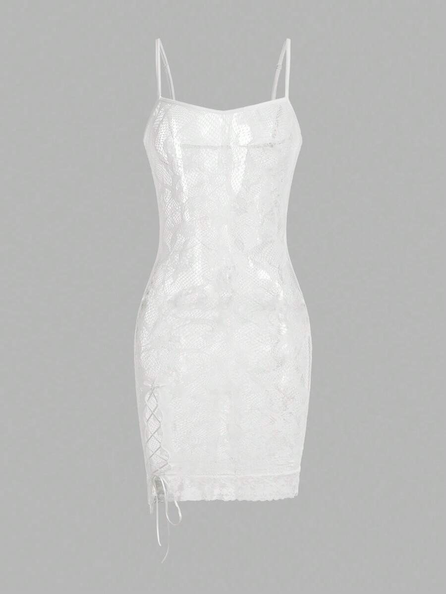 Chasethenight 1 pieza vestido de tirantes transparente con diseno de cordones para salir, para mujer