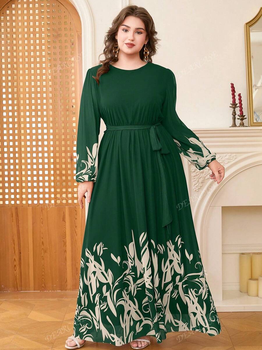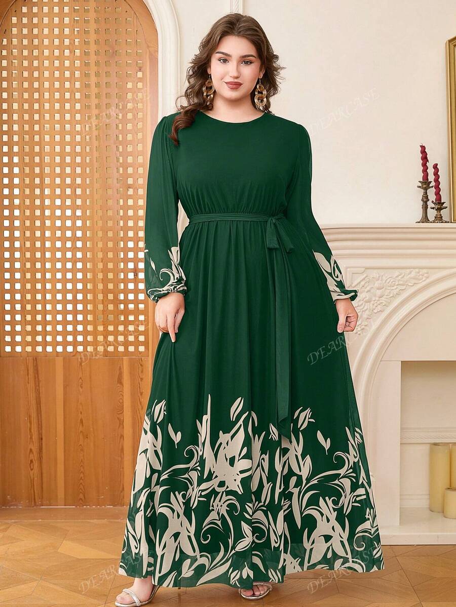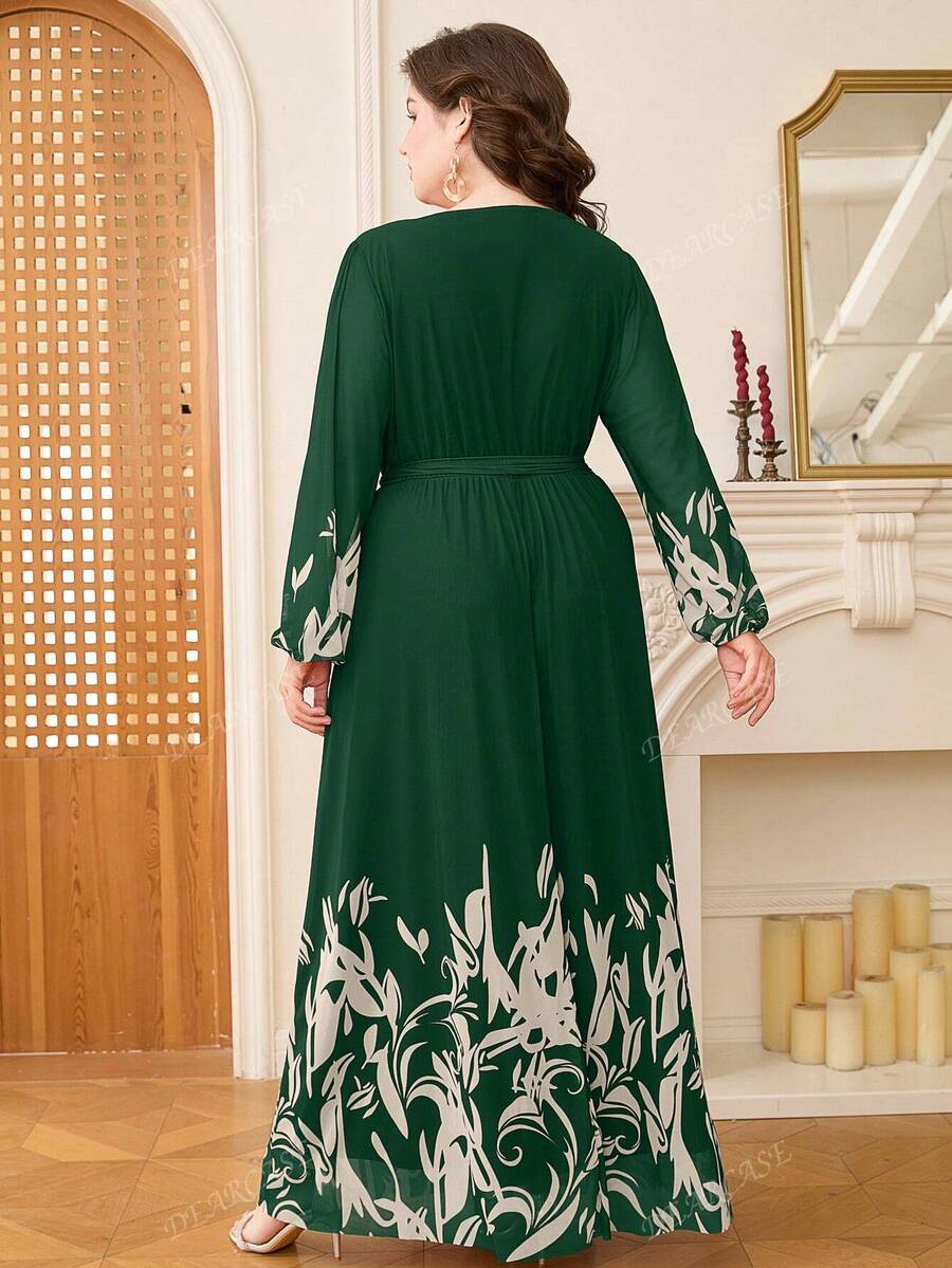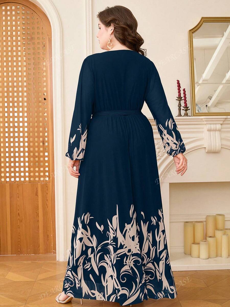Vestido de linea a con mangas de globo y estampado floral elegante para tallas grandes