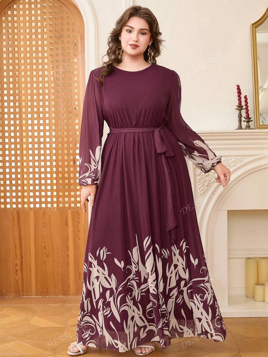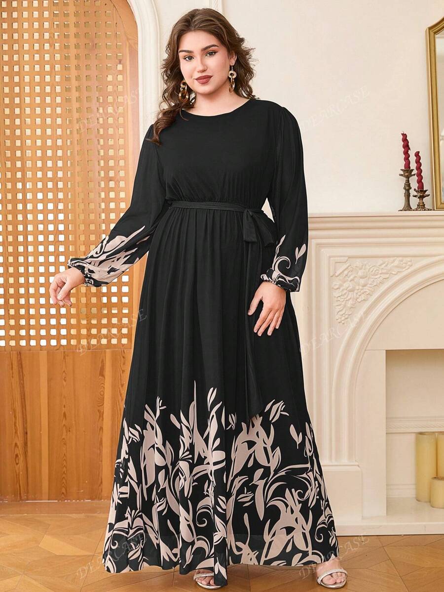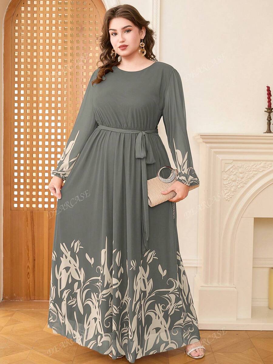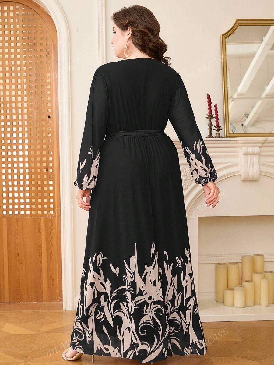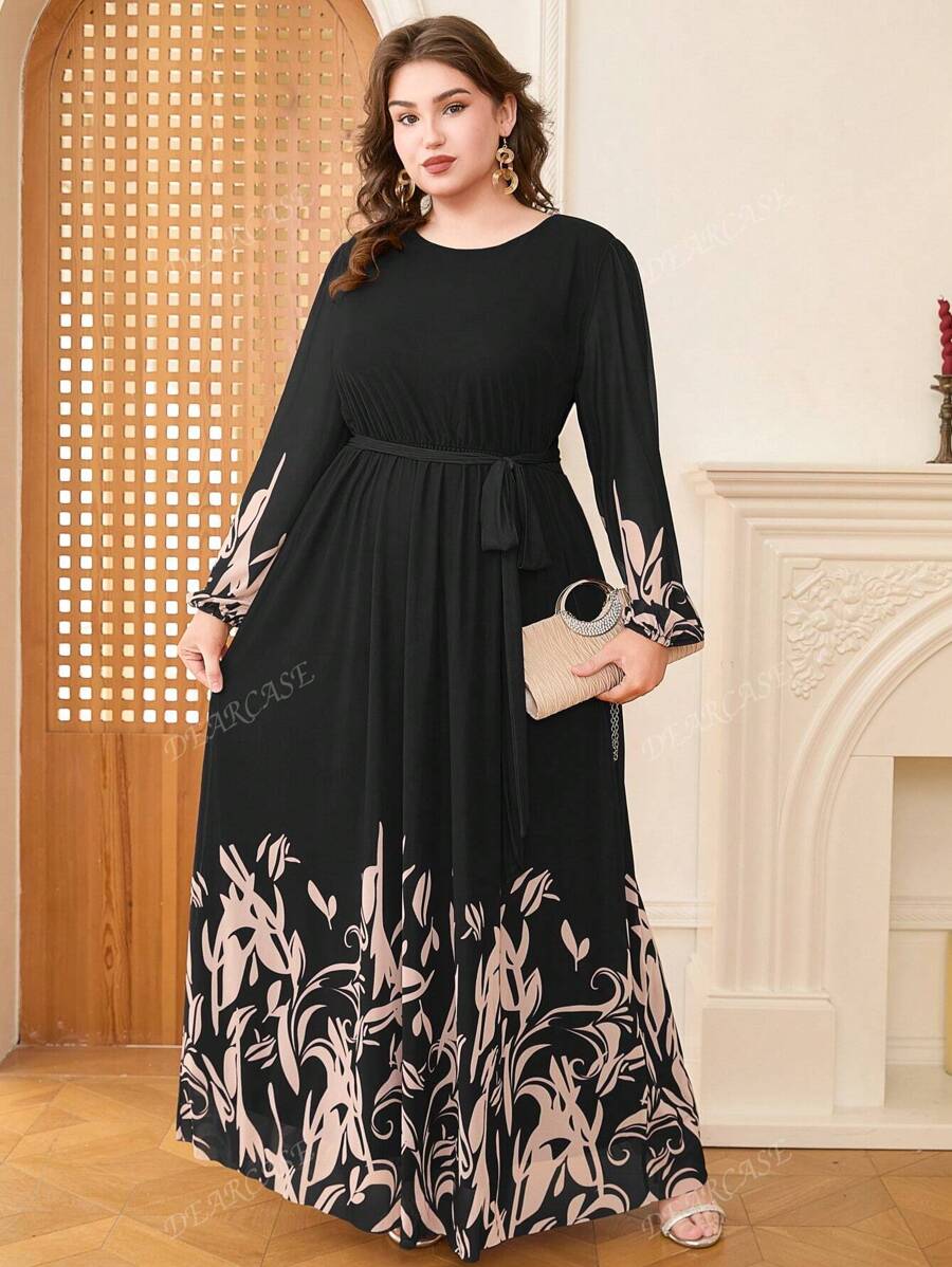 Vestido de linea a con mangas de globo y estampado floral elegante para tallas grandes