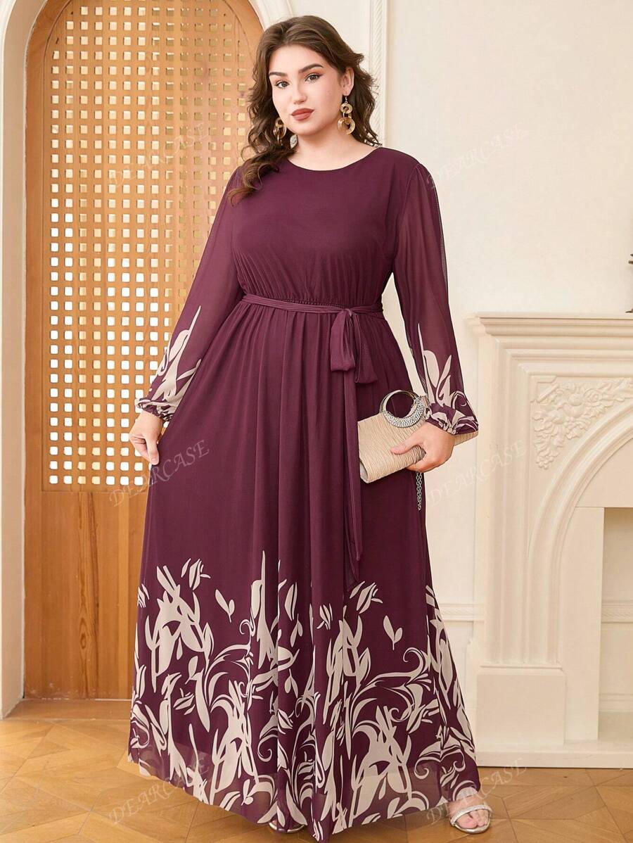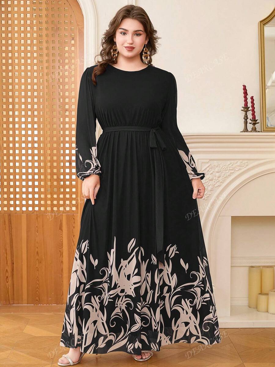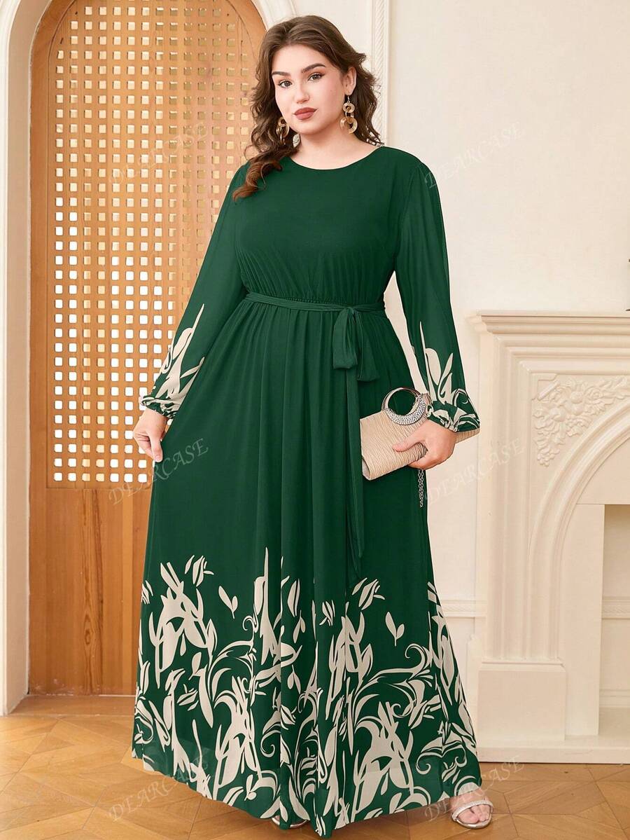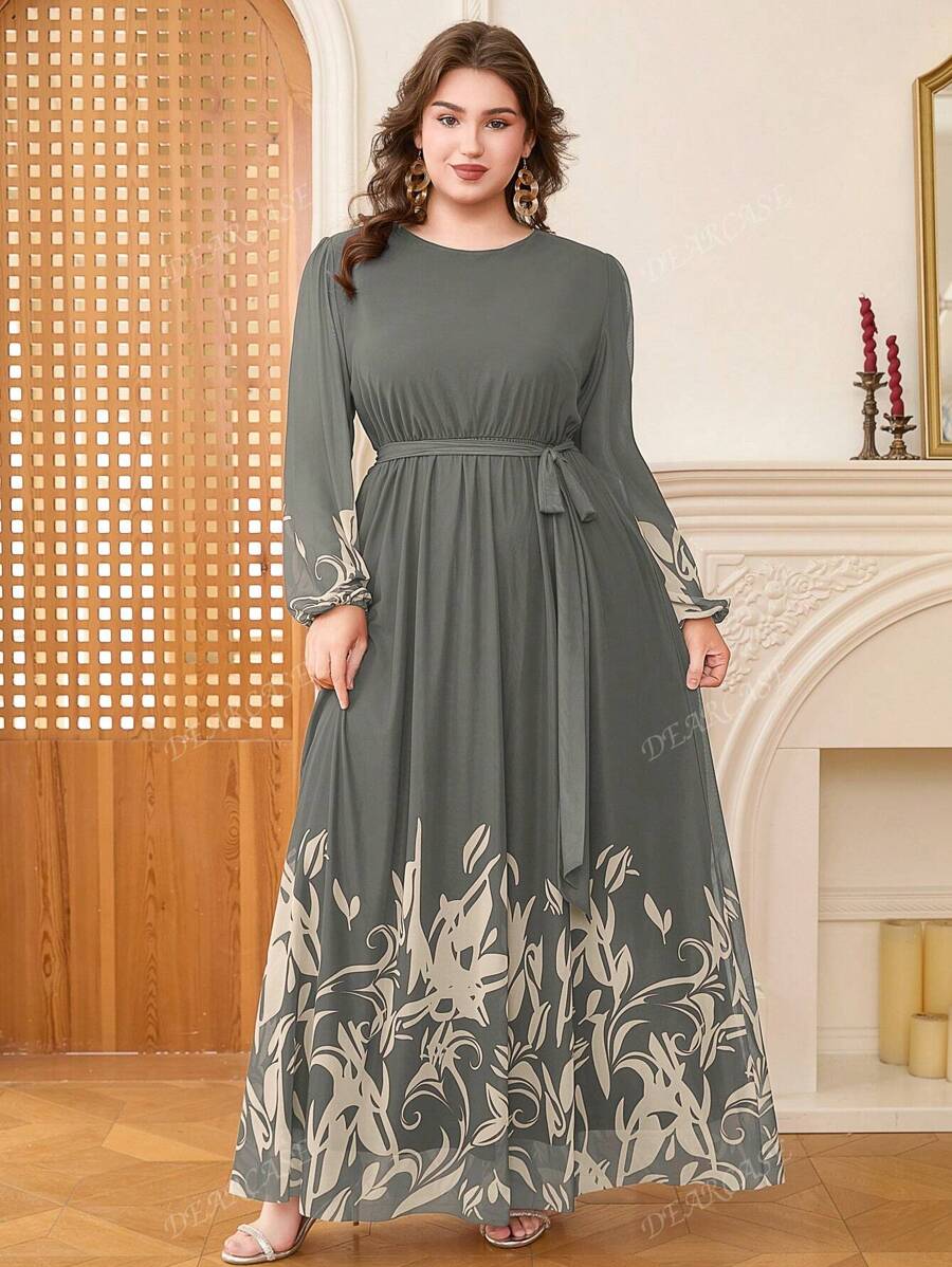 Vestido de linea a con mangas de globo y estampado floral elegante para tallas grandes