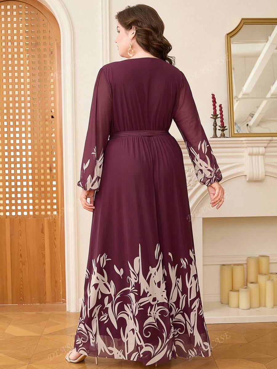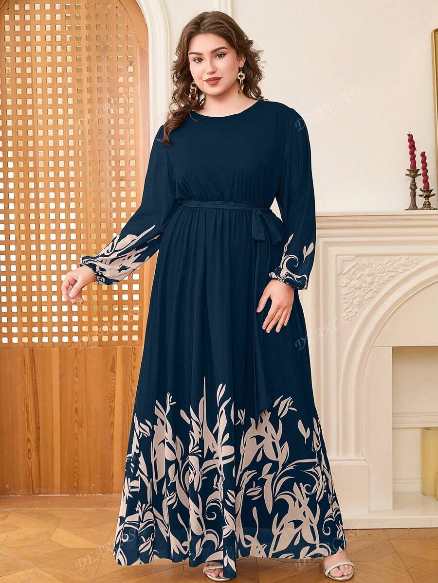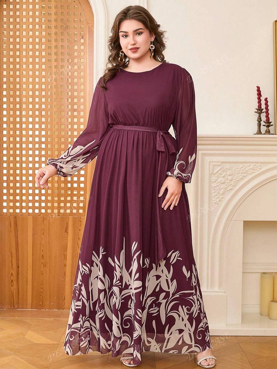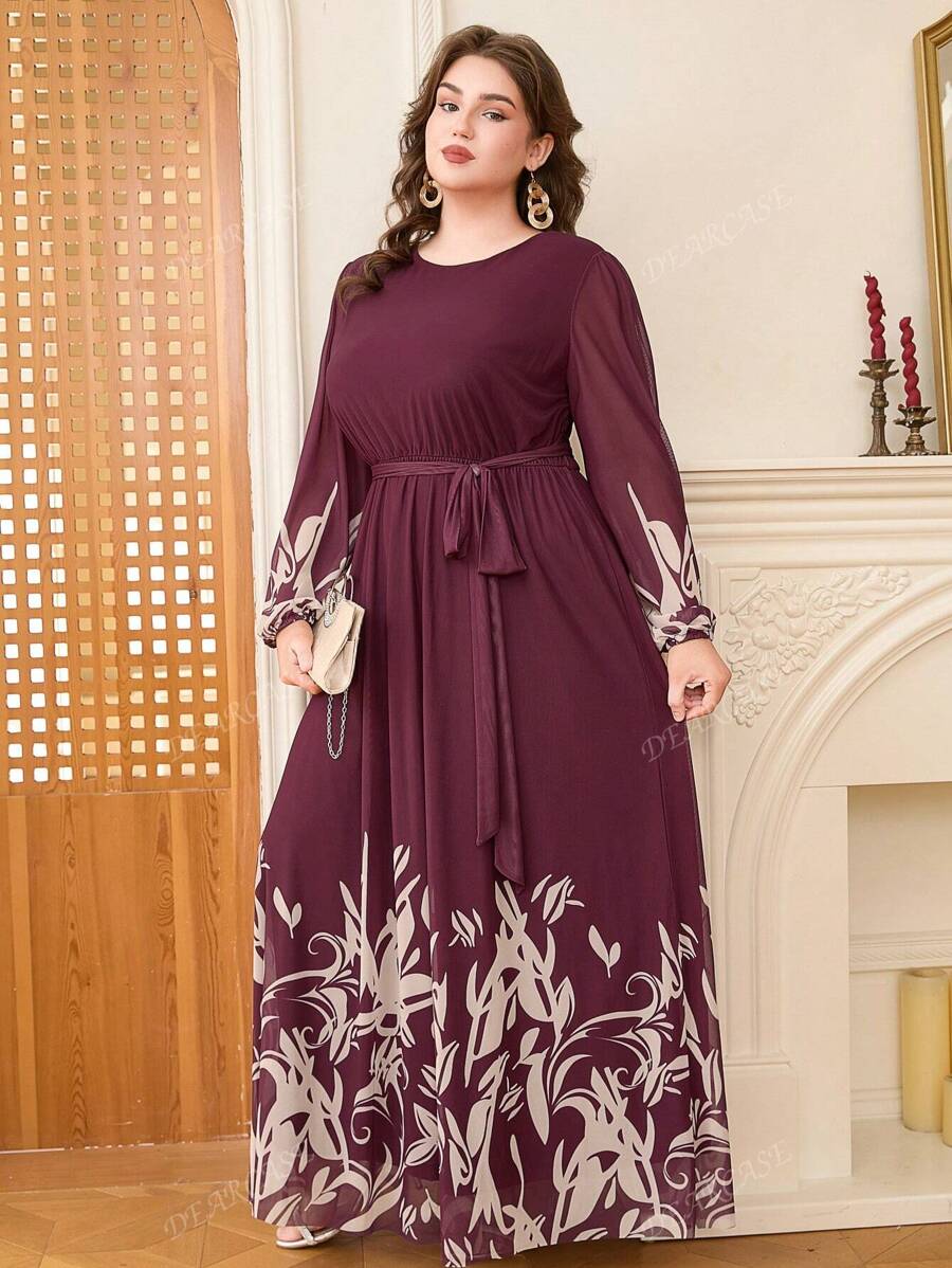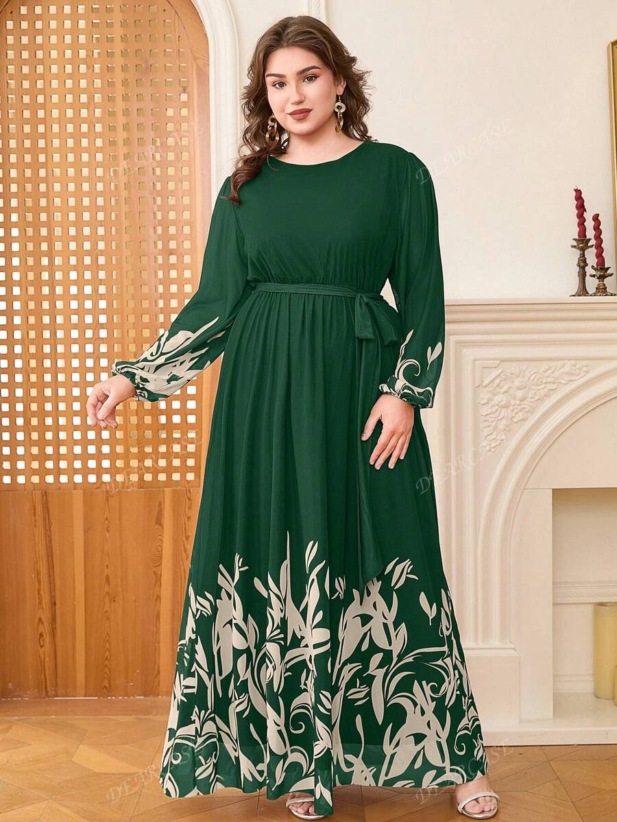 Vestido de linea a con mangas de globo y estampado floral elegante para tallas grandes