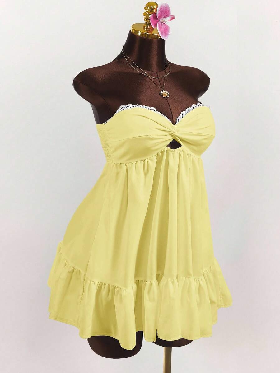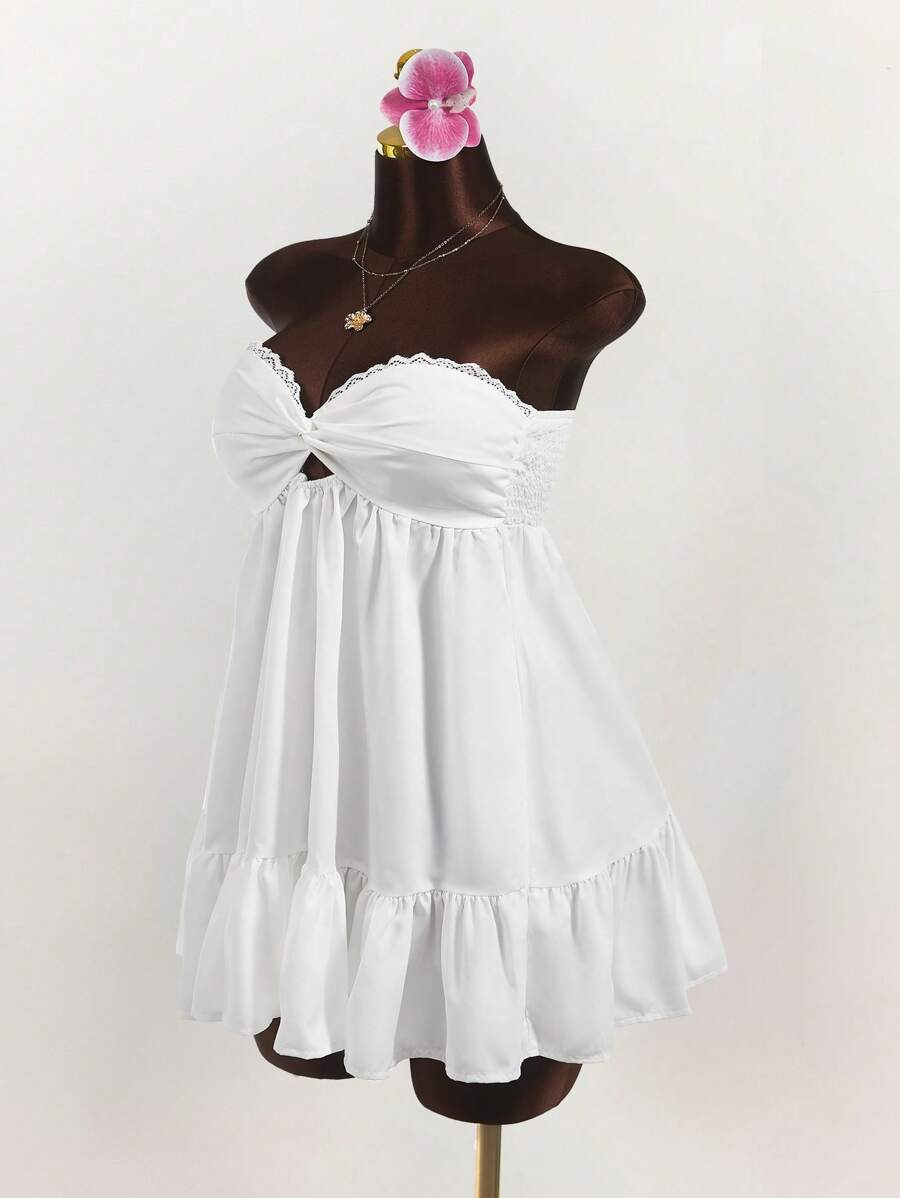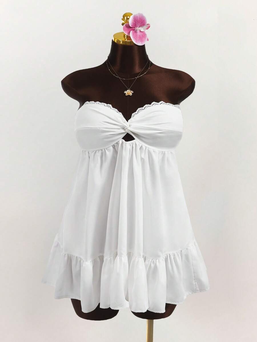 Amplova vestido mini con volantes en el bajo, parches de encaje y diseno de brasier sin tirantes