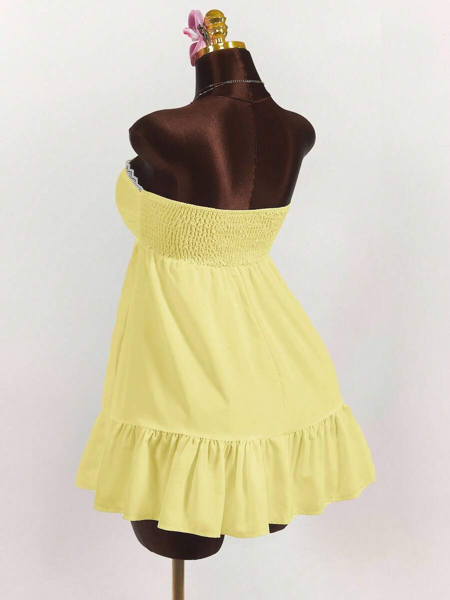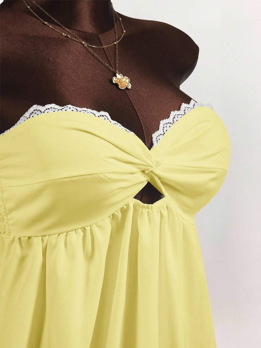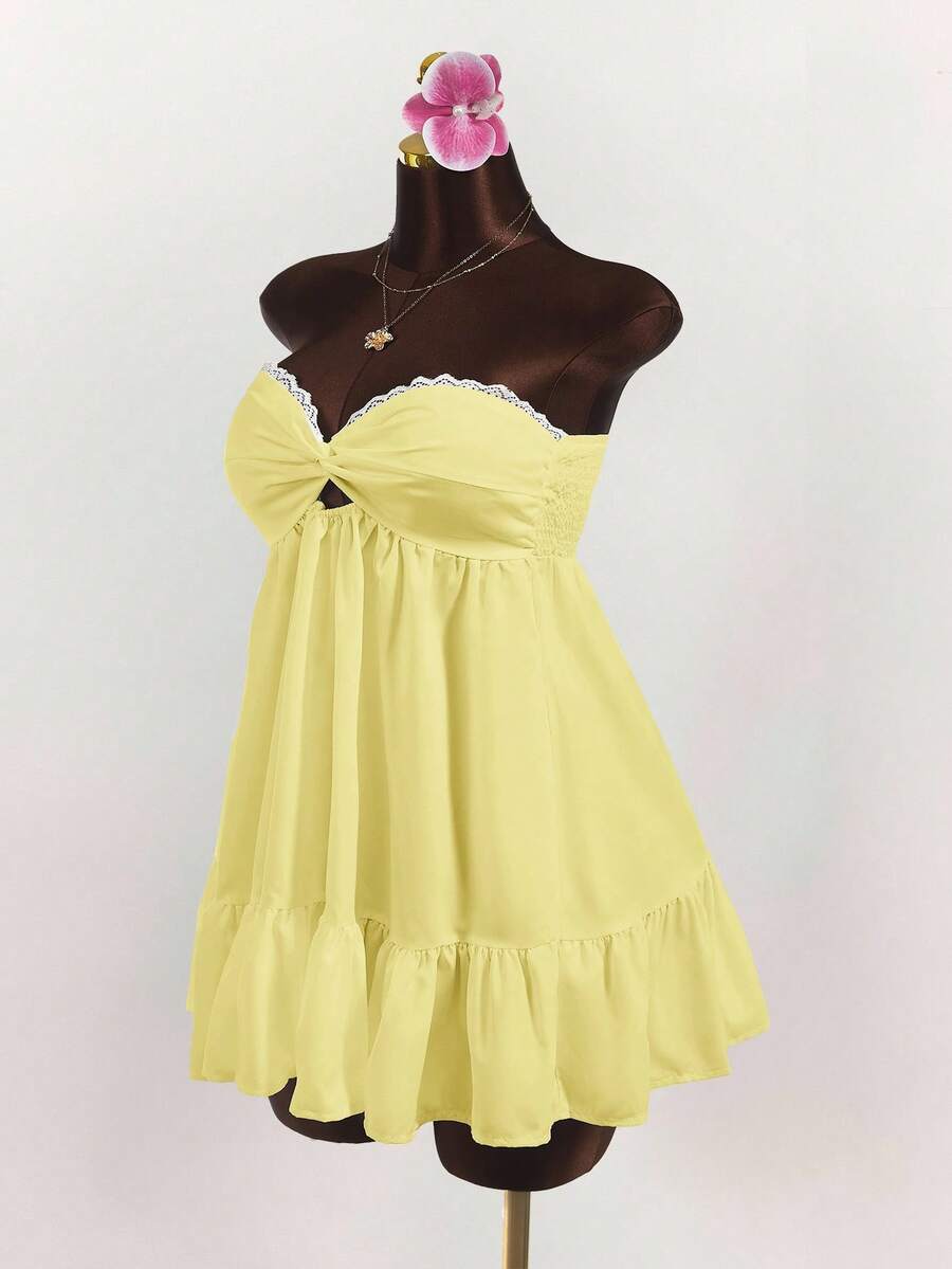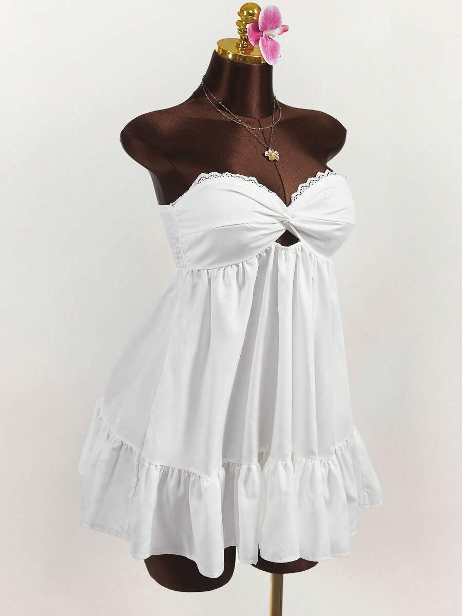Amplova vestido mini con volantes en el bajo, parches de encaje y diseno de brasier sin tirantes