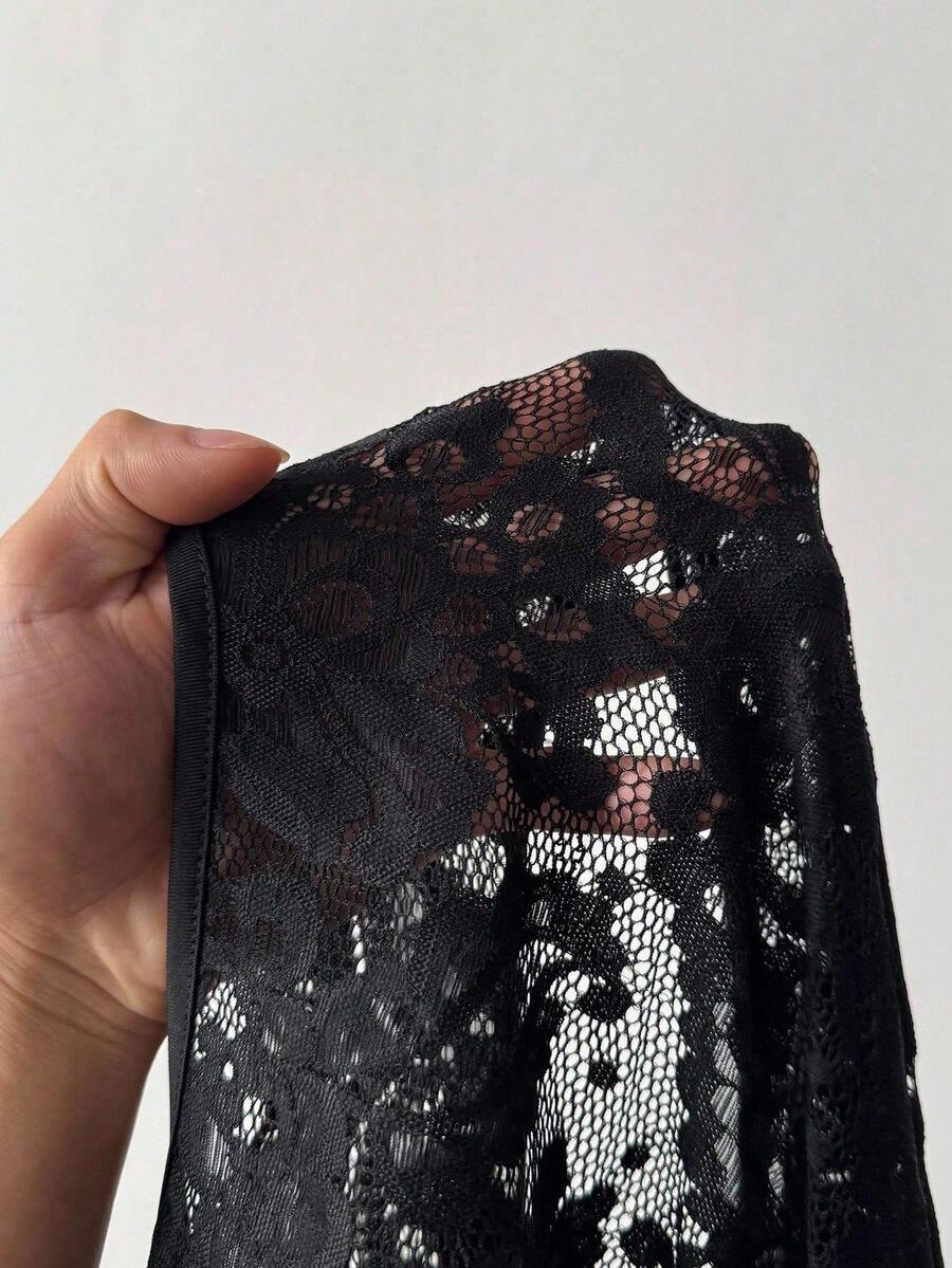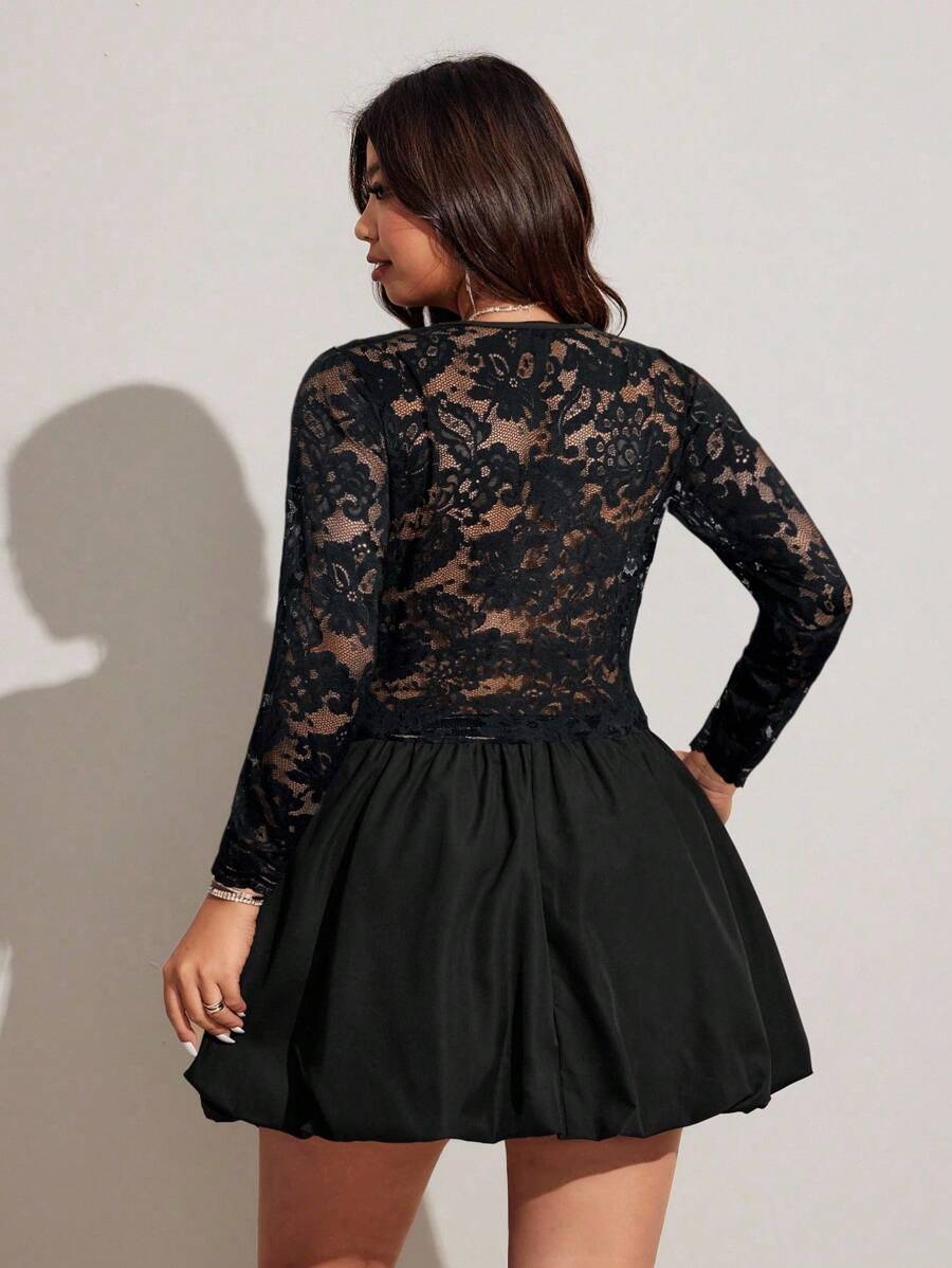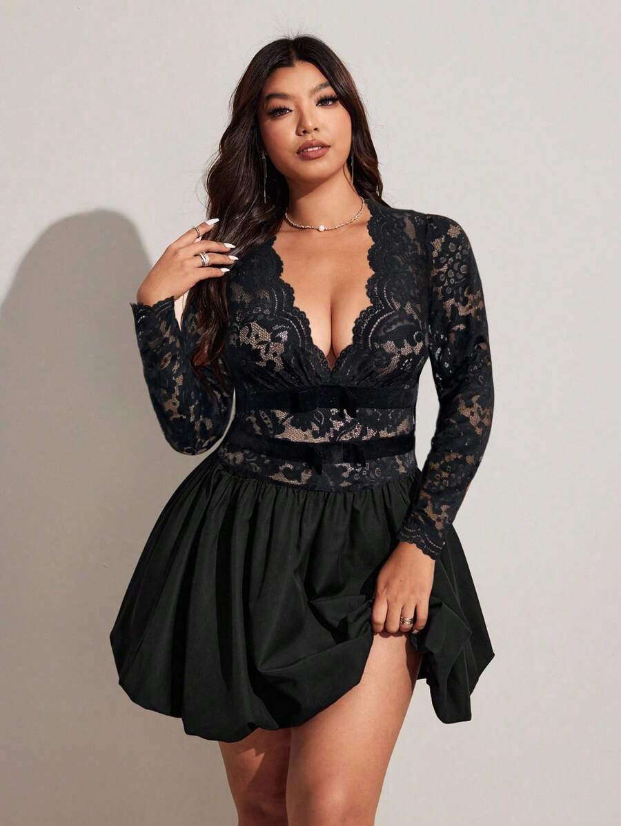Viva relle vestido sexy de manga larga con cuello en v profundo, fruncido y con encaje en contraste para mujer de talla grande