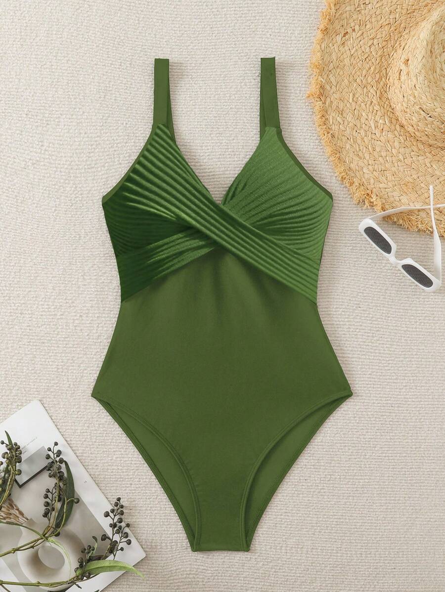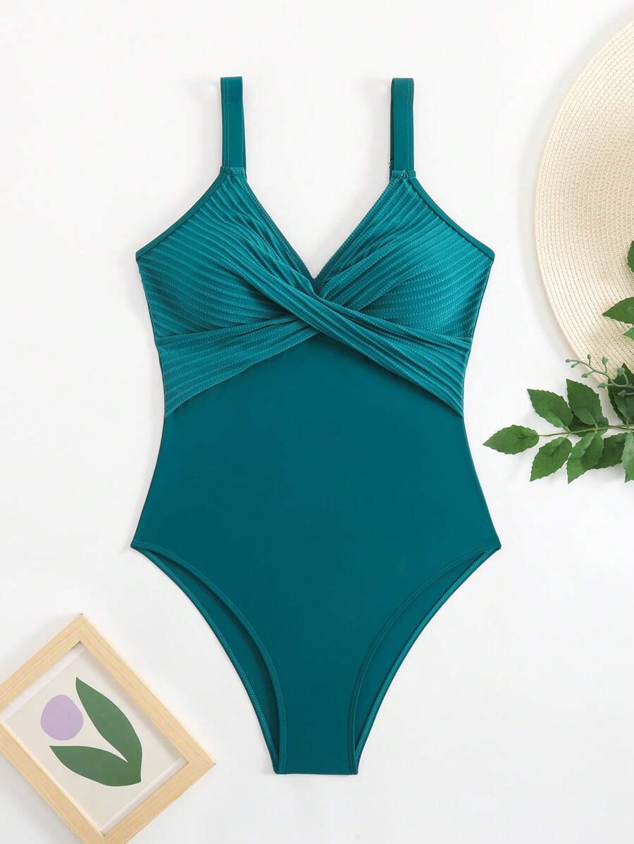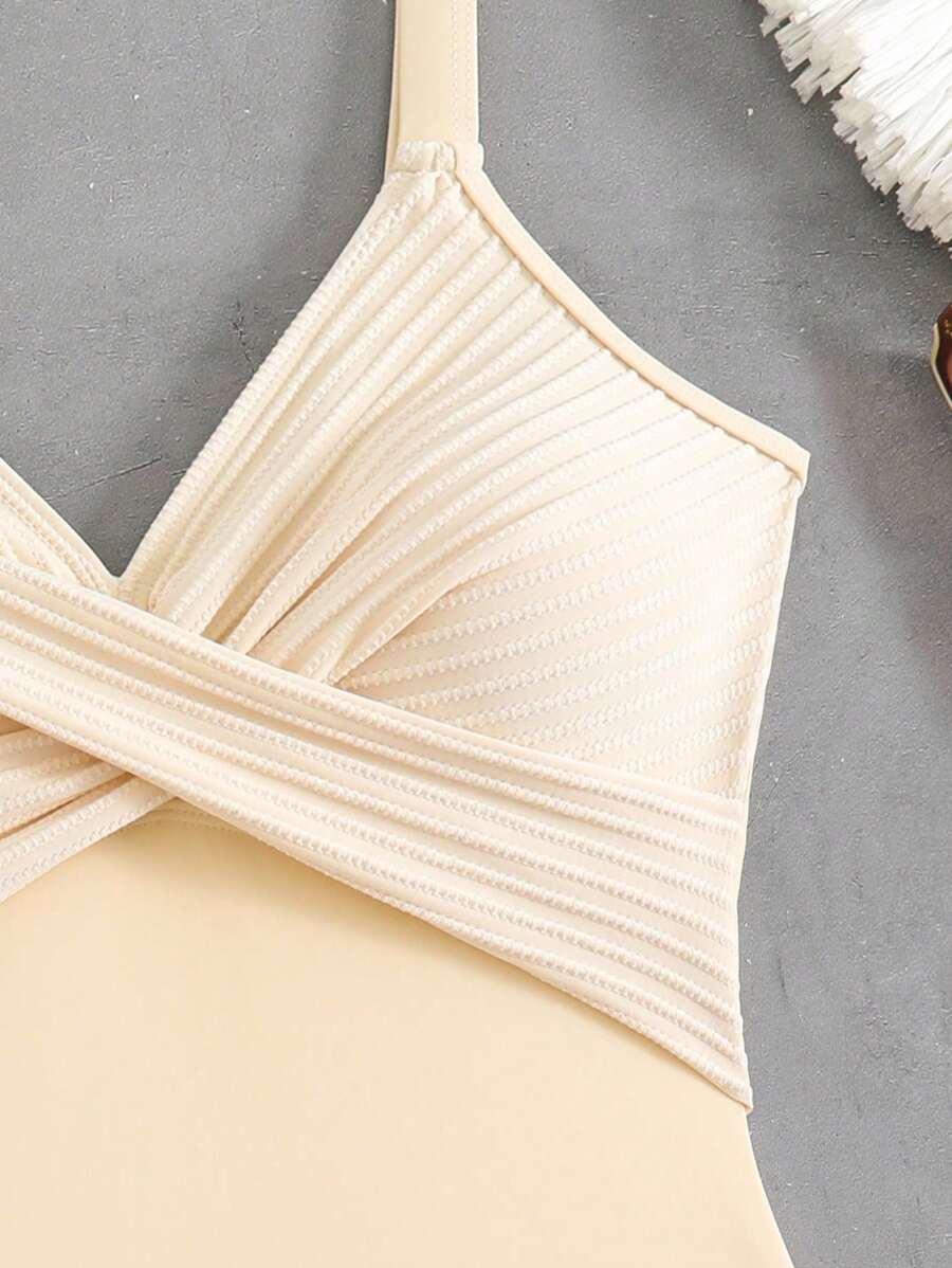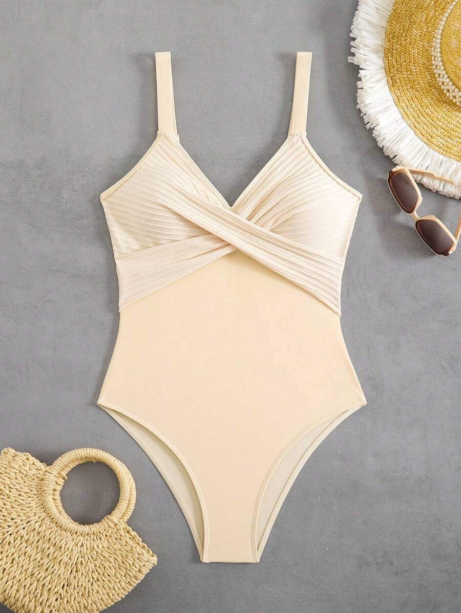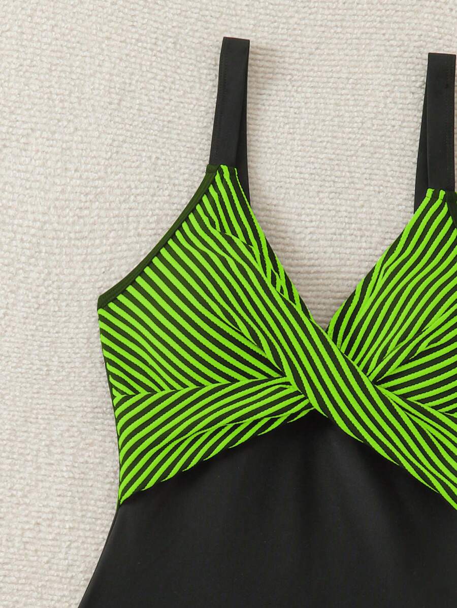 1 pieza traje de bano de una sola pieza con frente cruzado a rayas para mujer, ropa de vacaciones