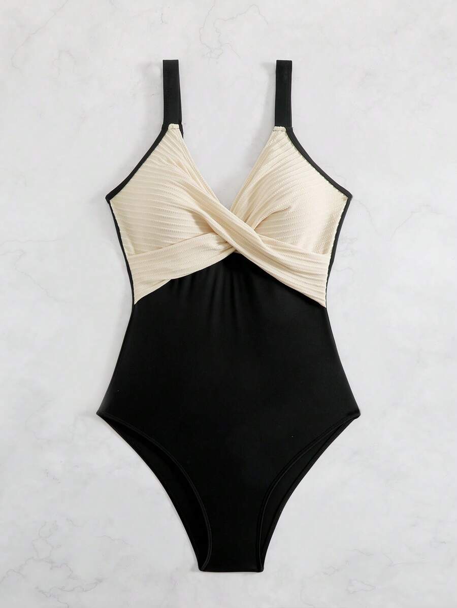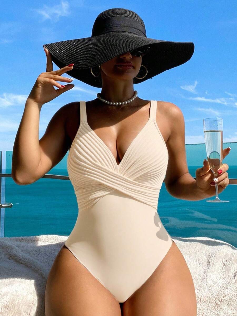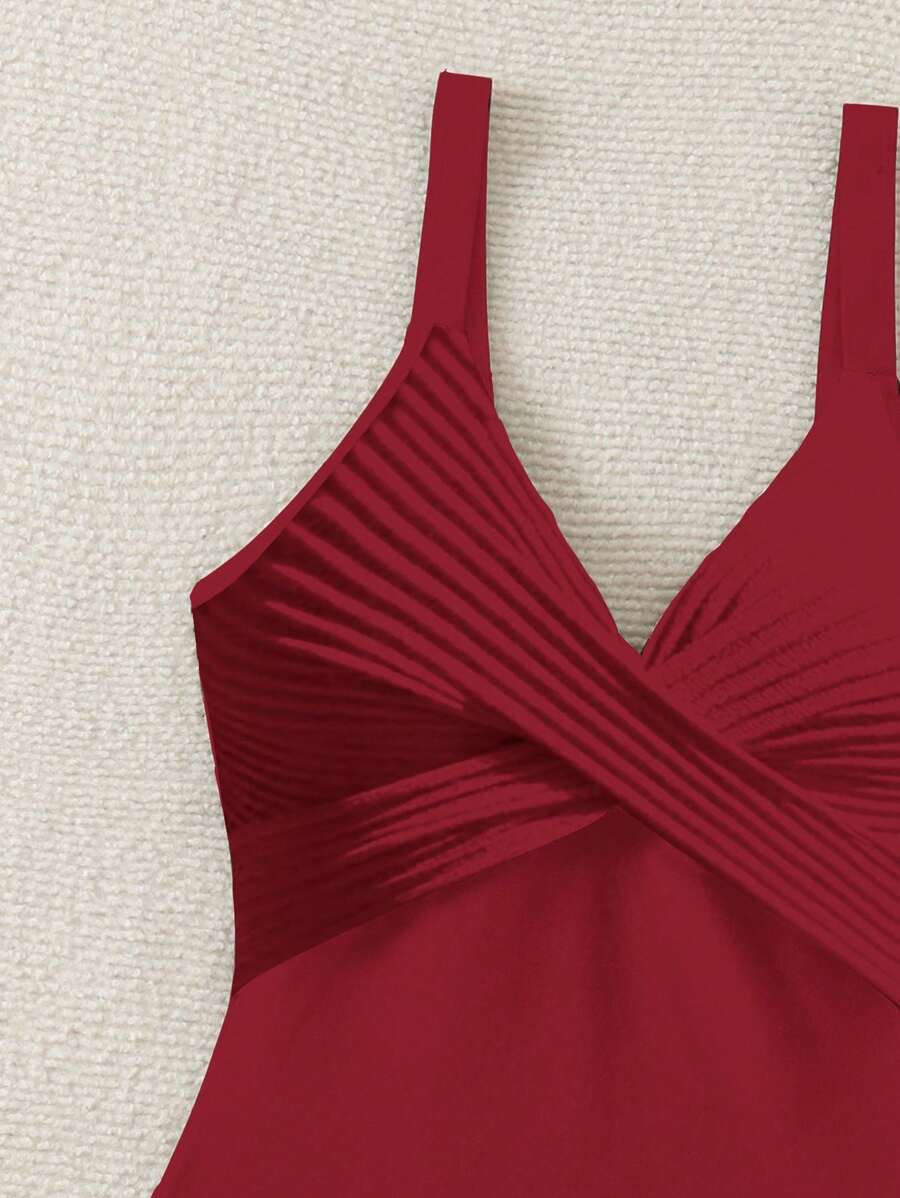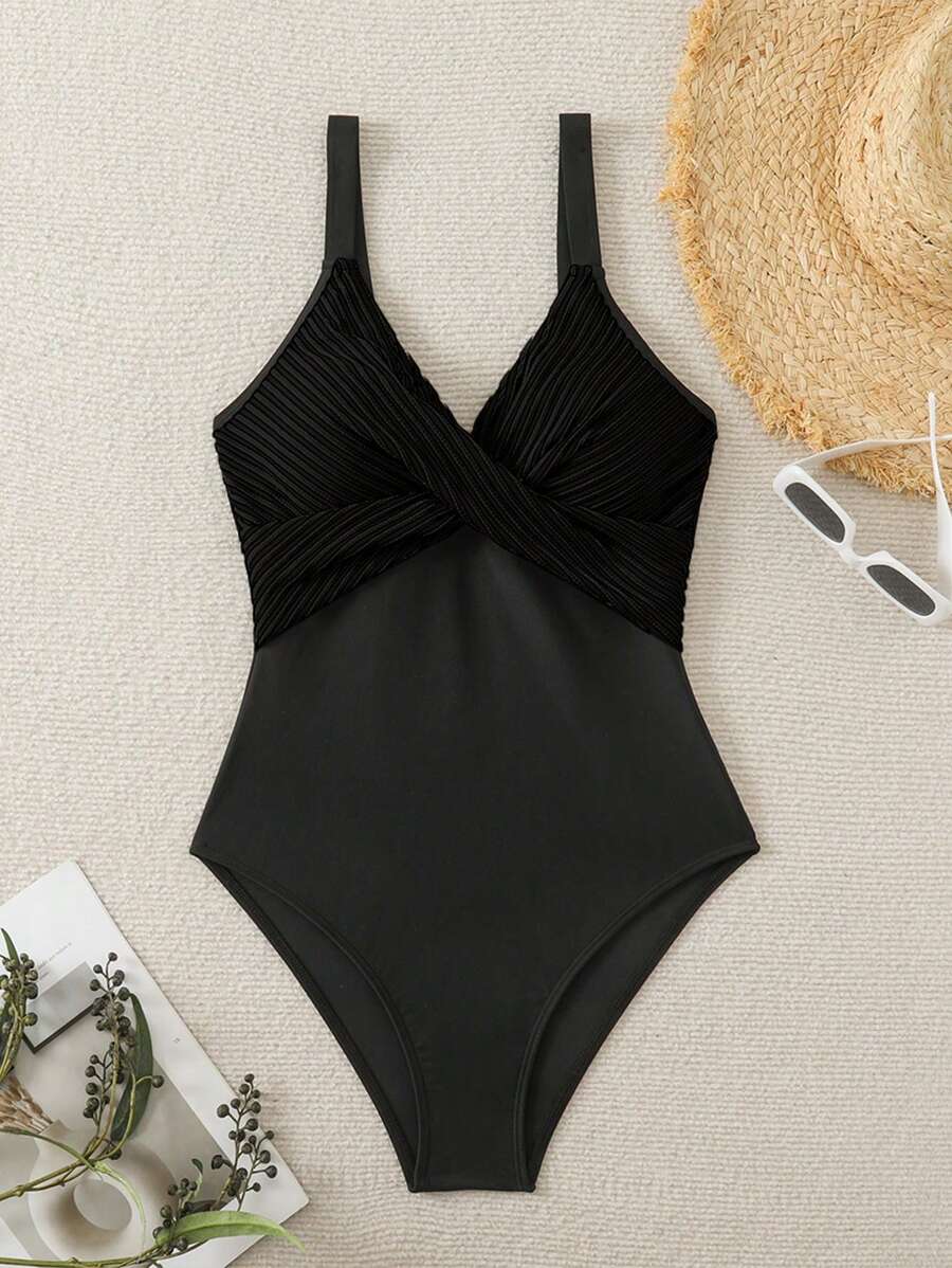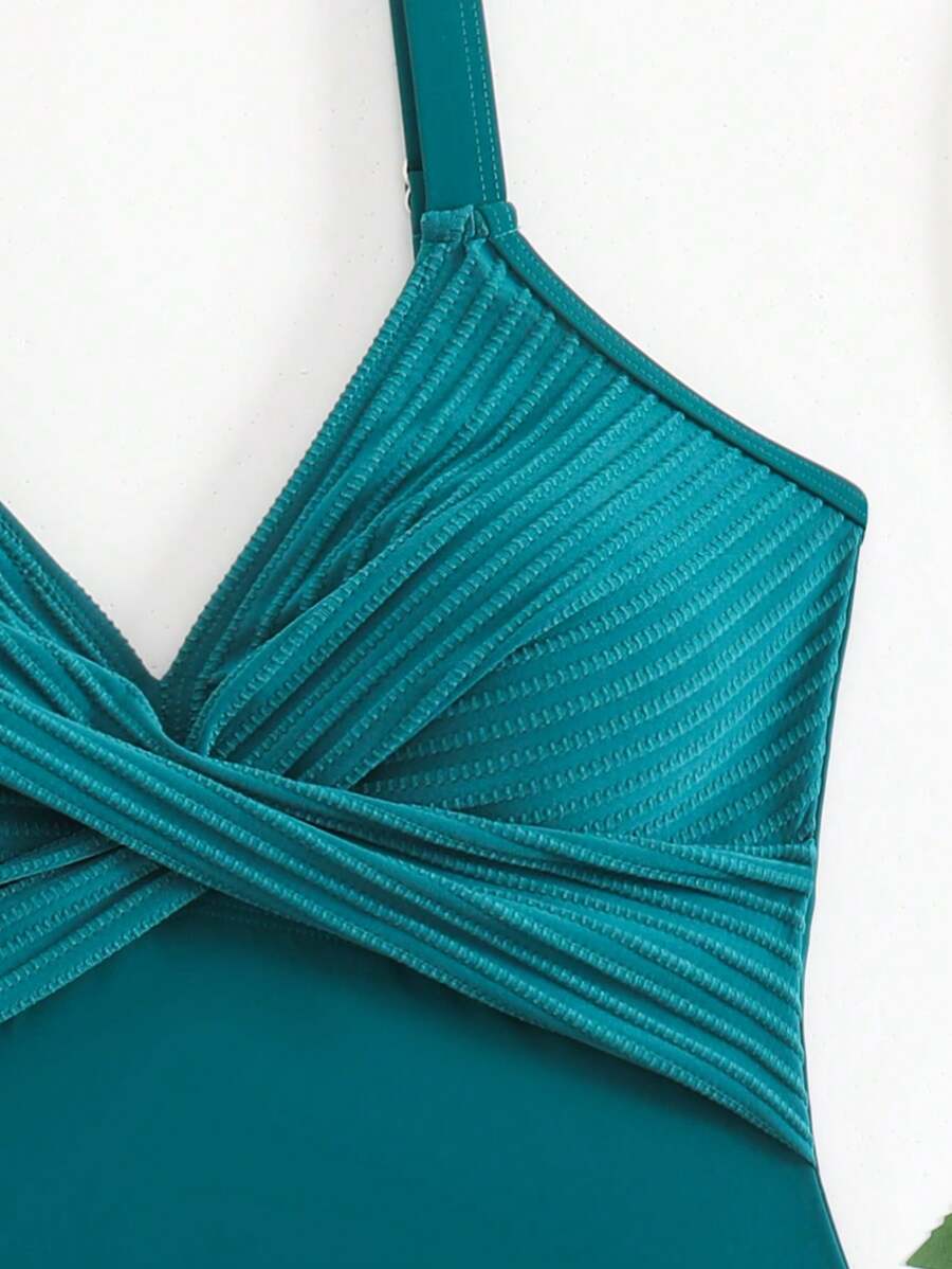 1 pieza traje de bano de una sola pieza con frente cruzado a rayas para mujer, ropa de vacaciones