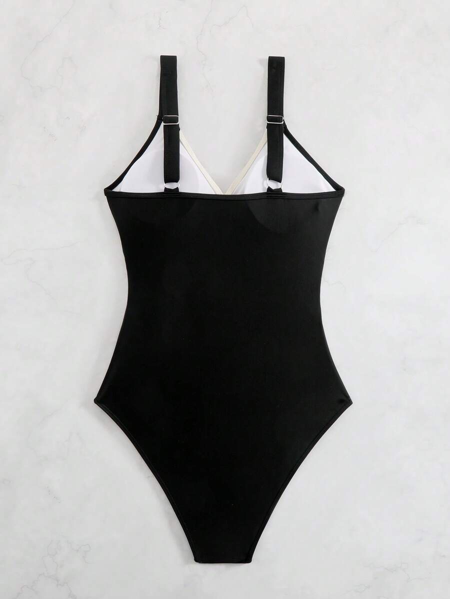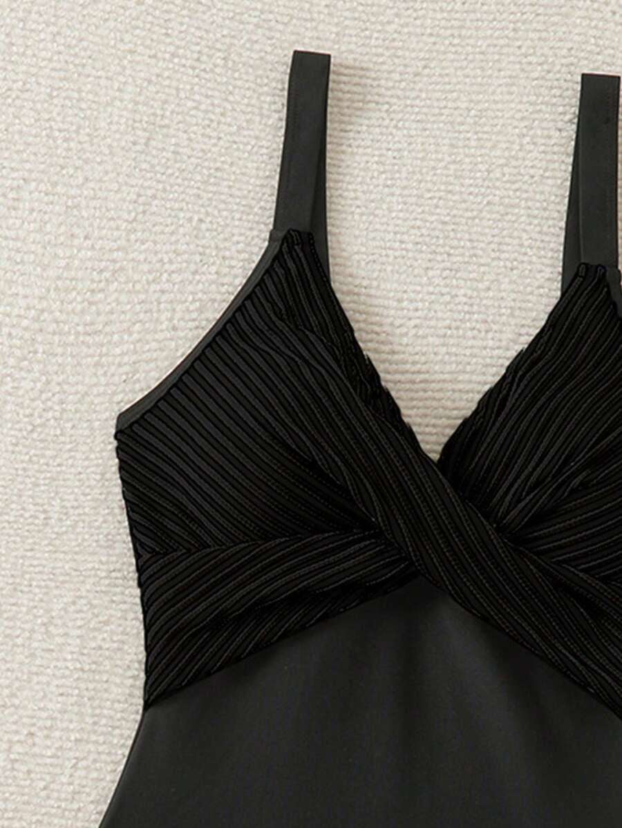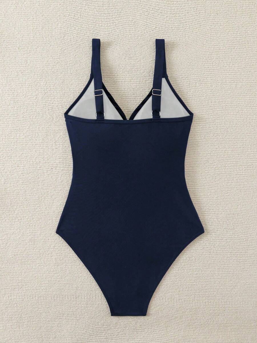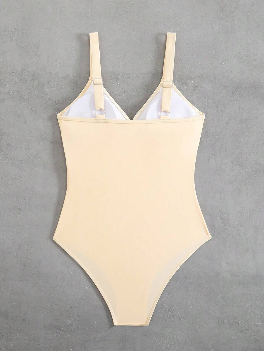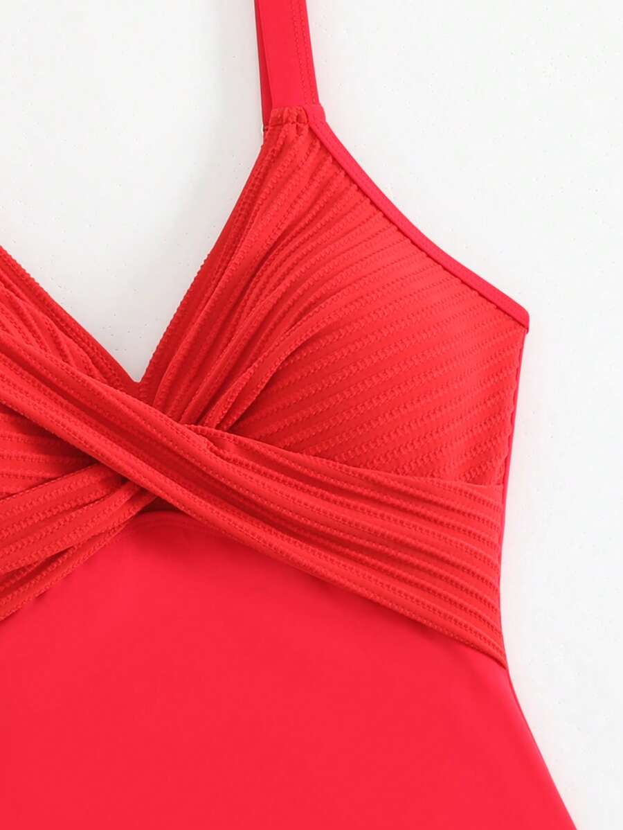 1 pieza traje de bano de una sola pieza con frente cruzado a rayas para mujer, ropa de vacaciones