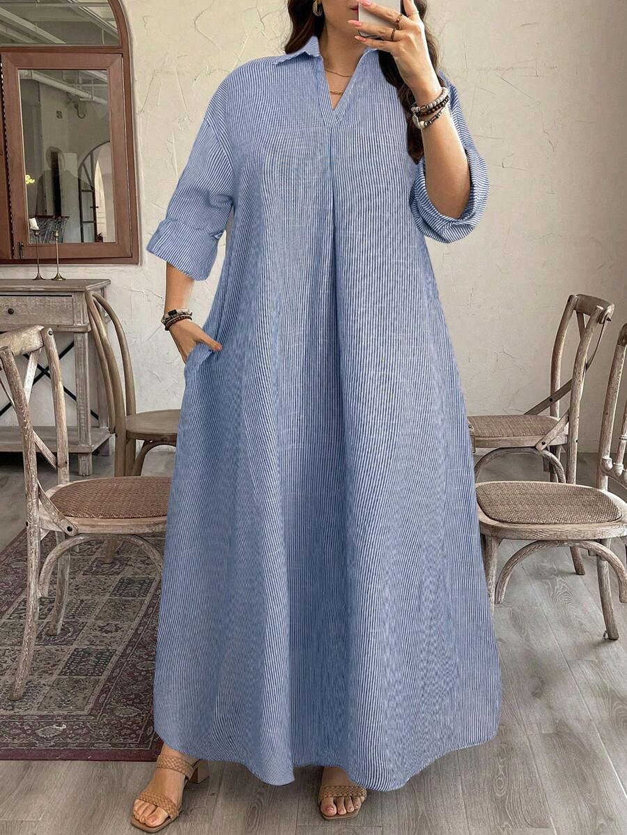 Zelara vestido camisero maxi de rayas de talla grande, vestimenta occidental para mujeres, festival bohemio hippie vaquero, estilo bohemio de dinero viejo para verano, atuendos de verano bohemios de dinero viejo para mujeres, atuendos de primavera y
