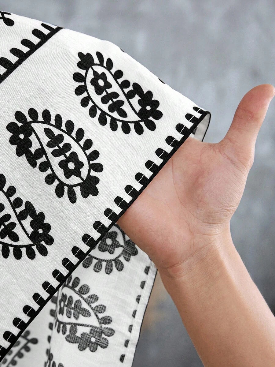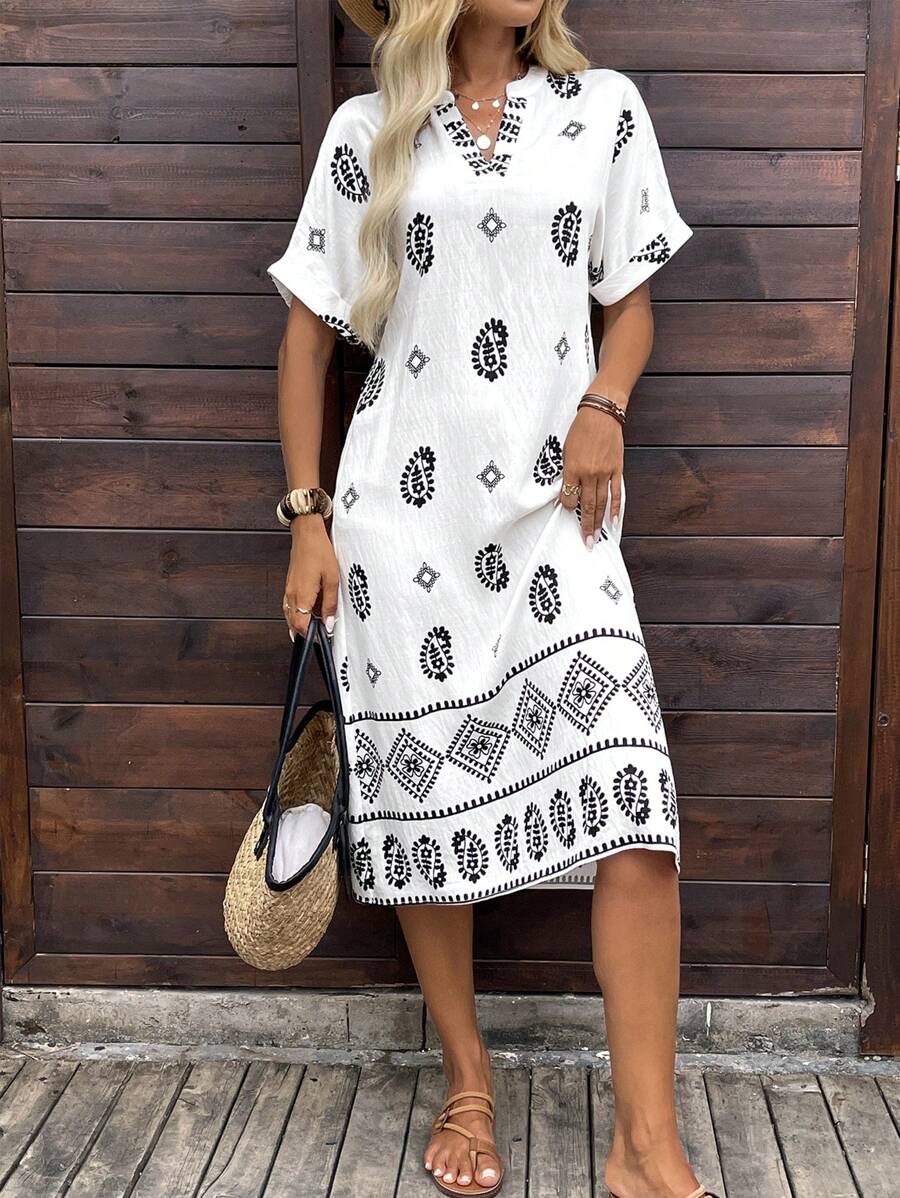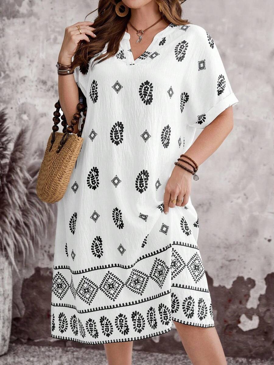 Vestido holgado de estilo de vacaciones de verano para mujer de talla grande con estampado de paisley, cuello con muesca y mangas tipo murcielago