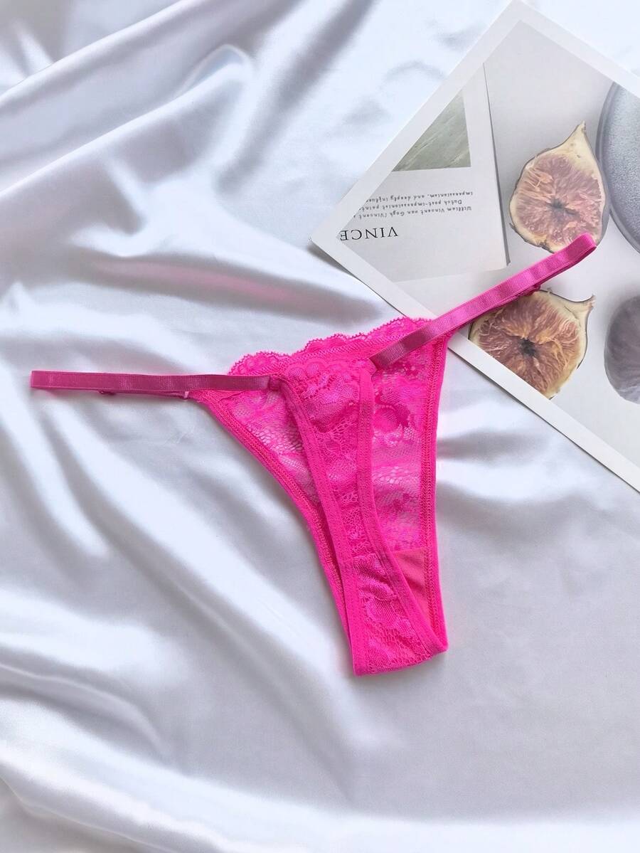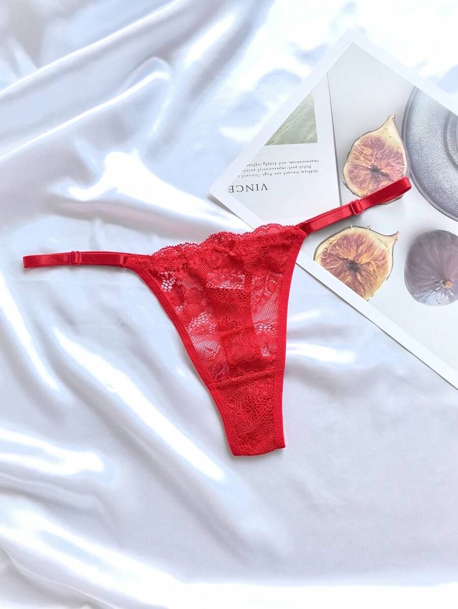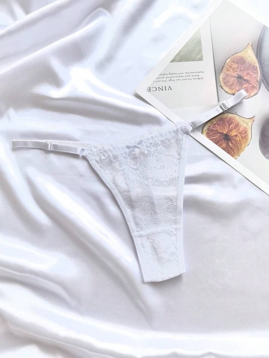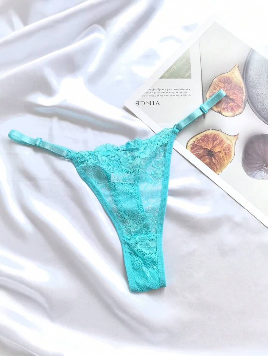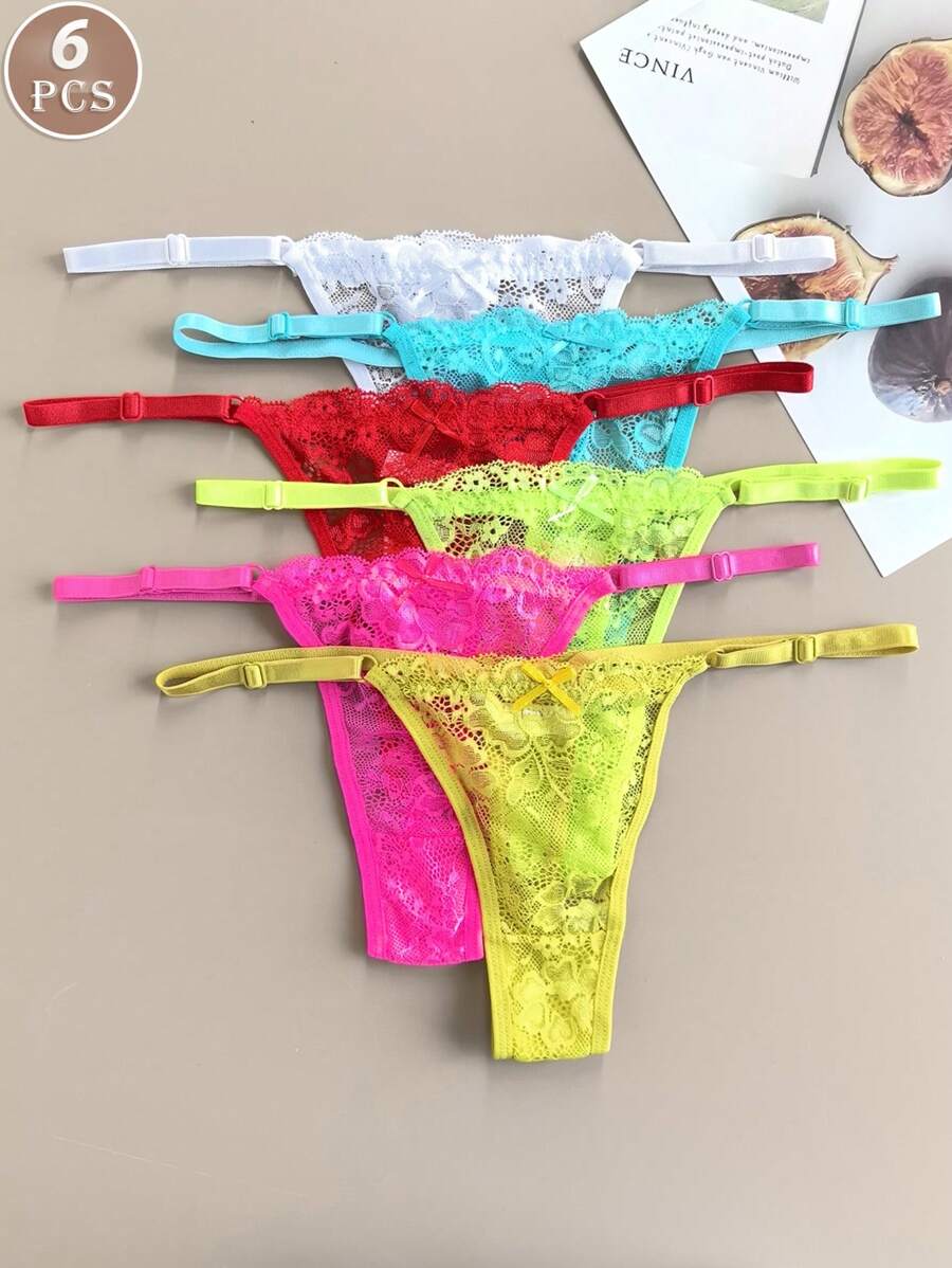 6 piezas de bragas de mujer de unicolor con encaje, ropa interior sexy de tanga tipo v ajustable