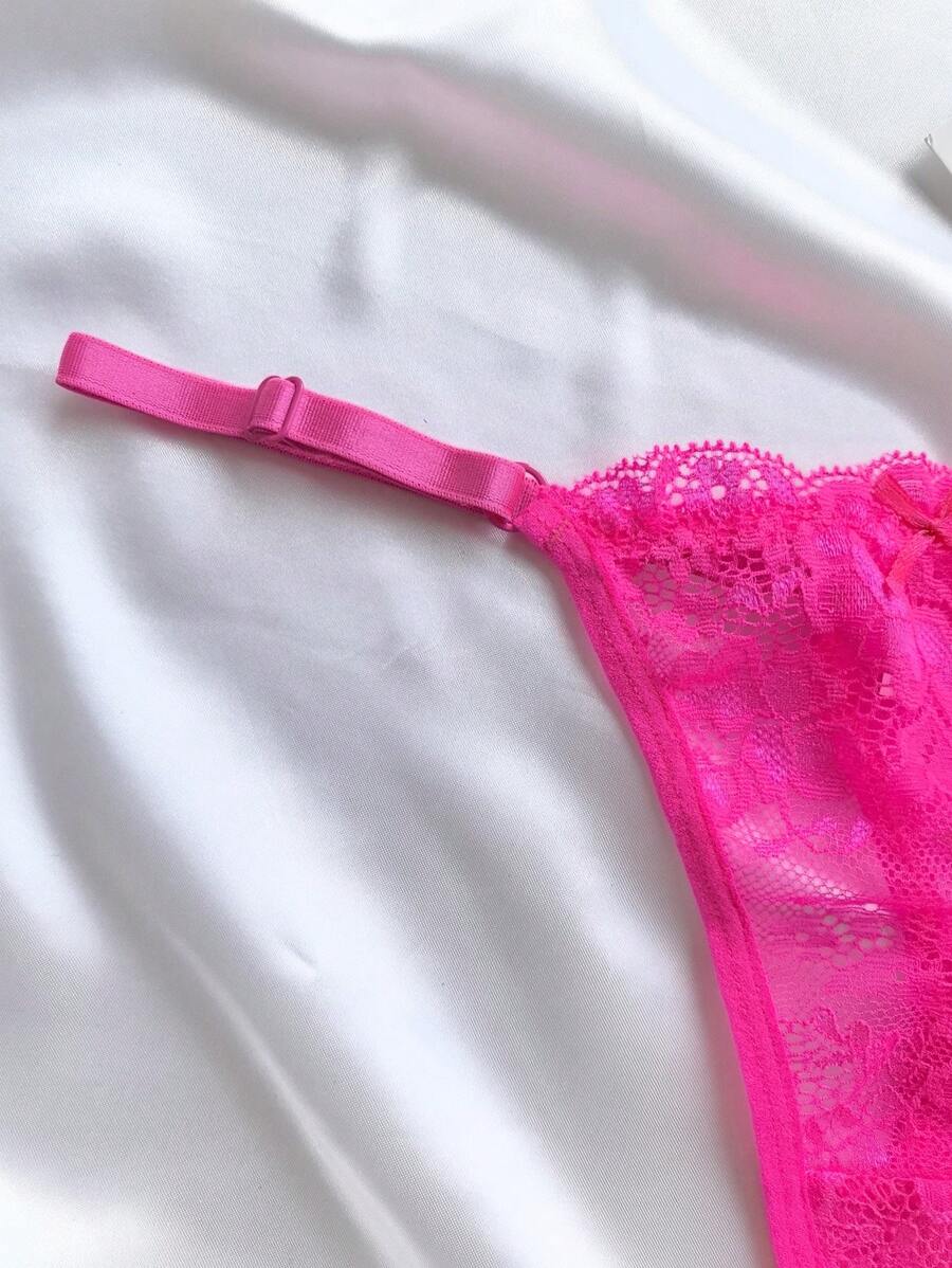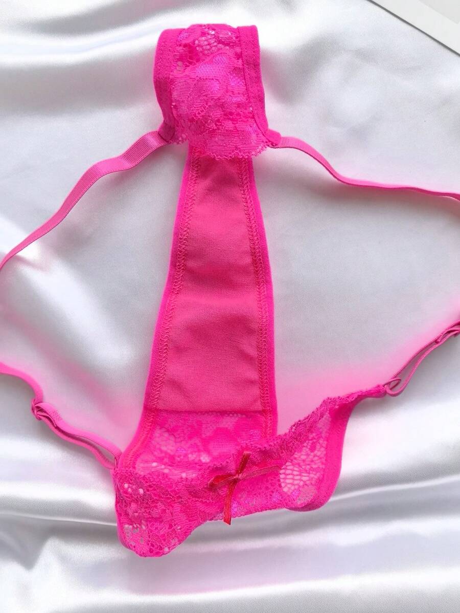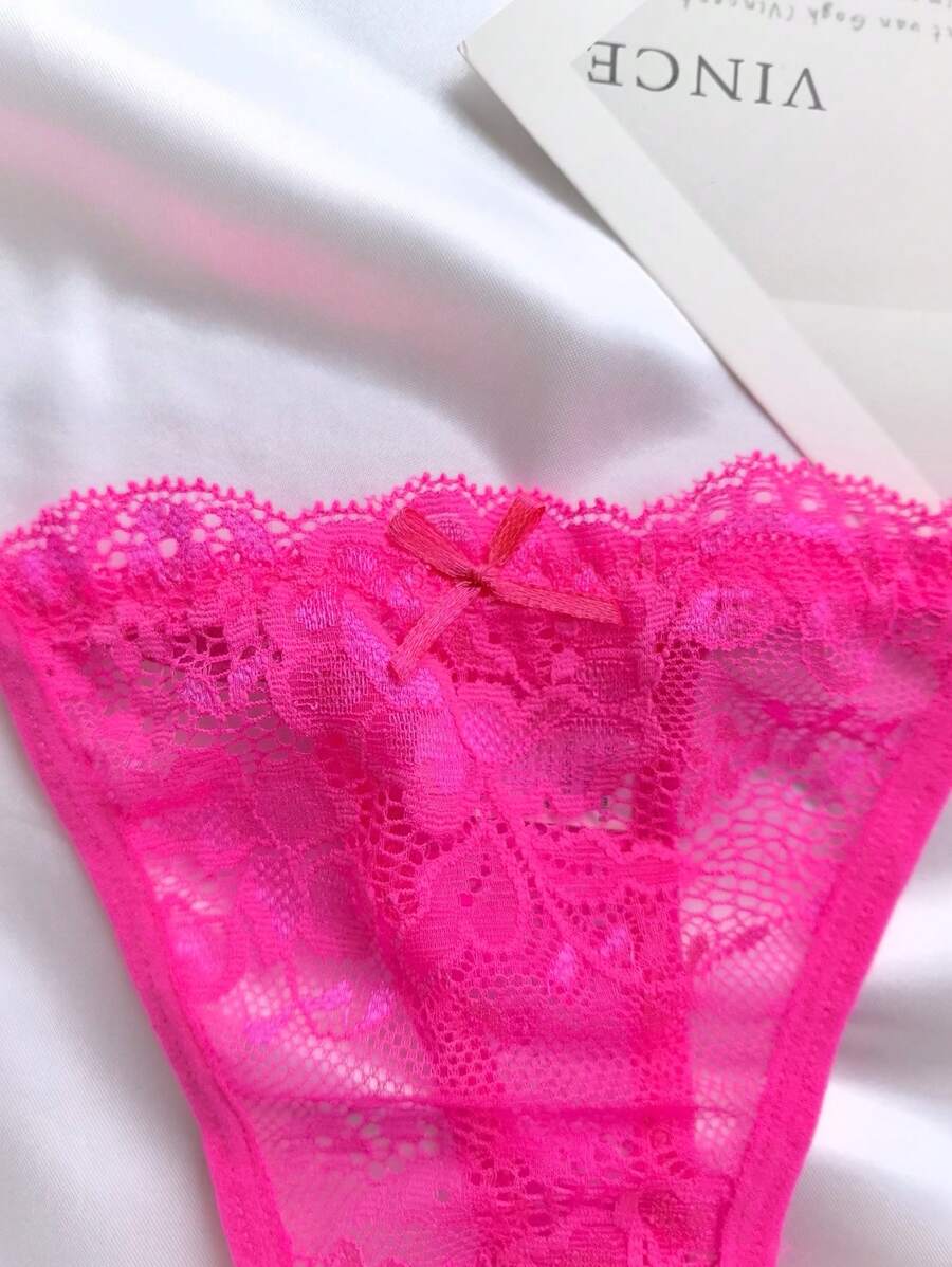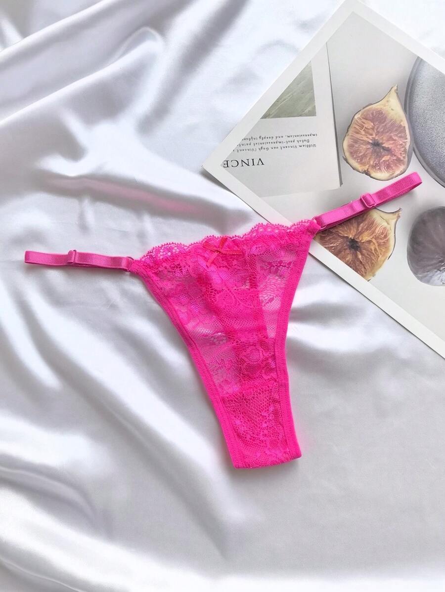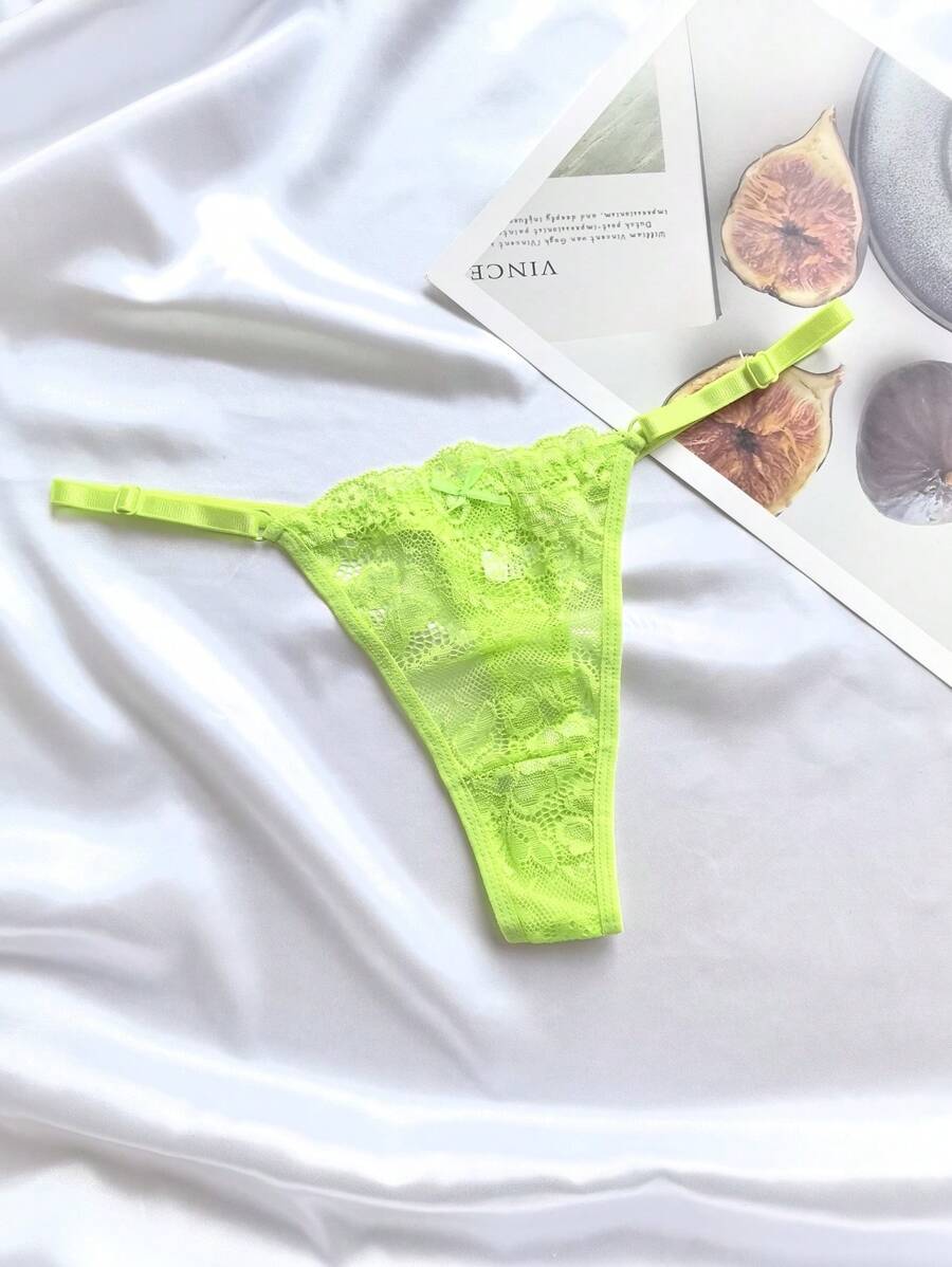 6 piezas de bragas de mujer de unicolor con encaje, ropa interior sexy de tanga tipo v ajustable