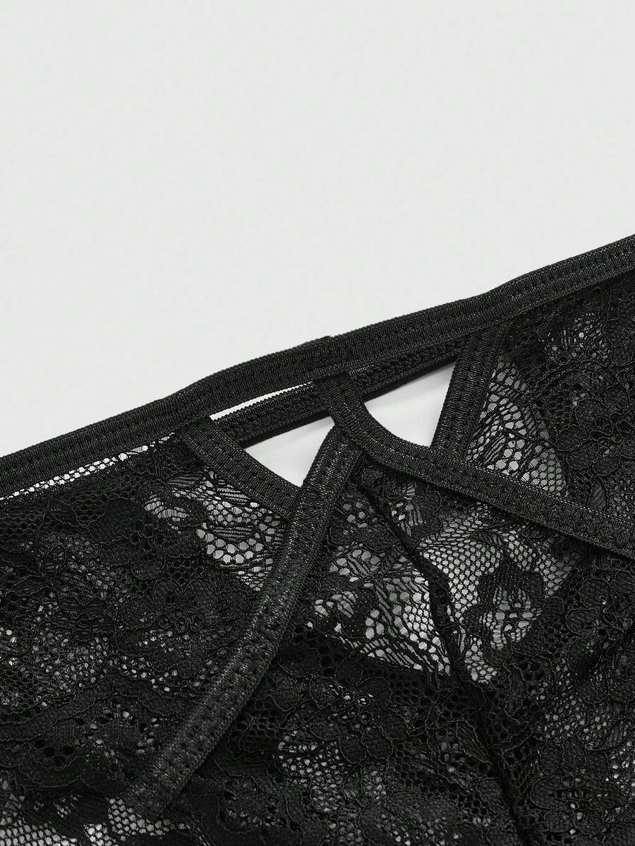 1 pieza tanga de mujer con decoracion de corazon gotico de encaje