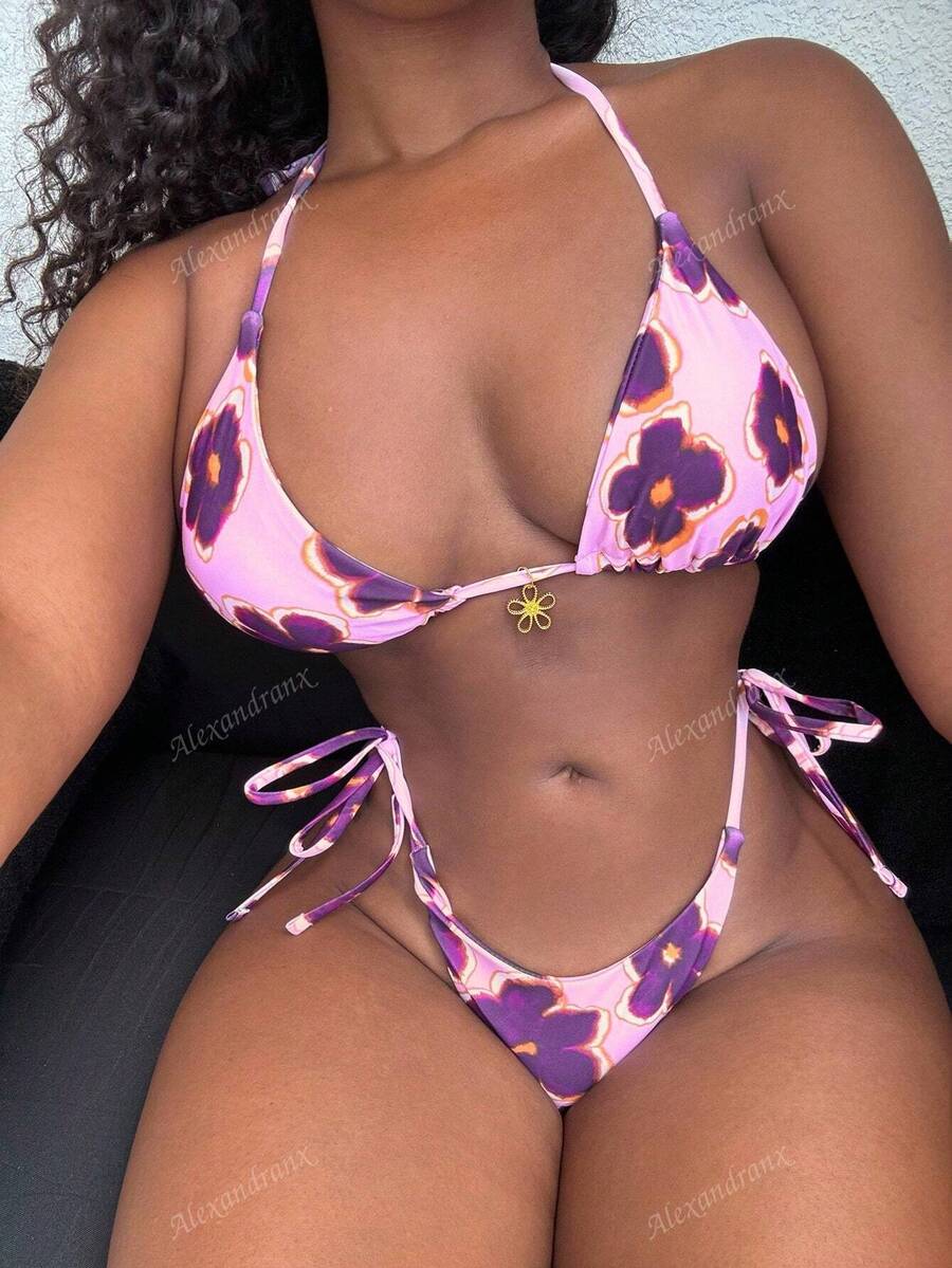 Alexandranx conjunto de 2 piezas de bikini con estampado floral y nudo, para vacaciones, para playa de verano