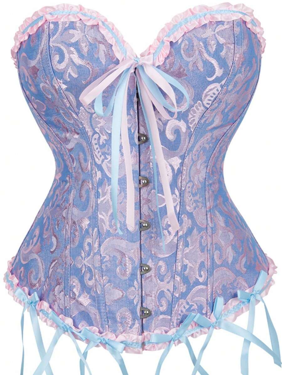 1 pieza corset moldeador elegante de mujer con diseno de jacquard y cruce en la parte delantera