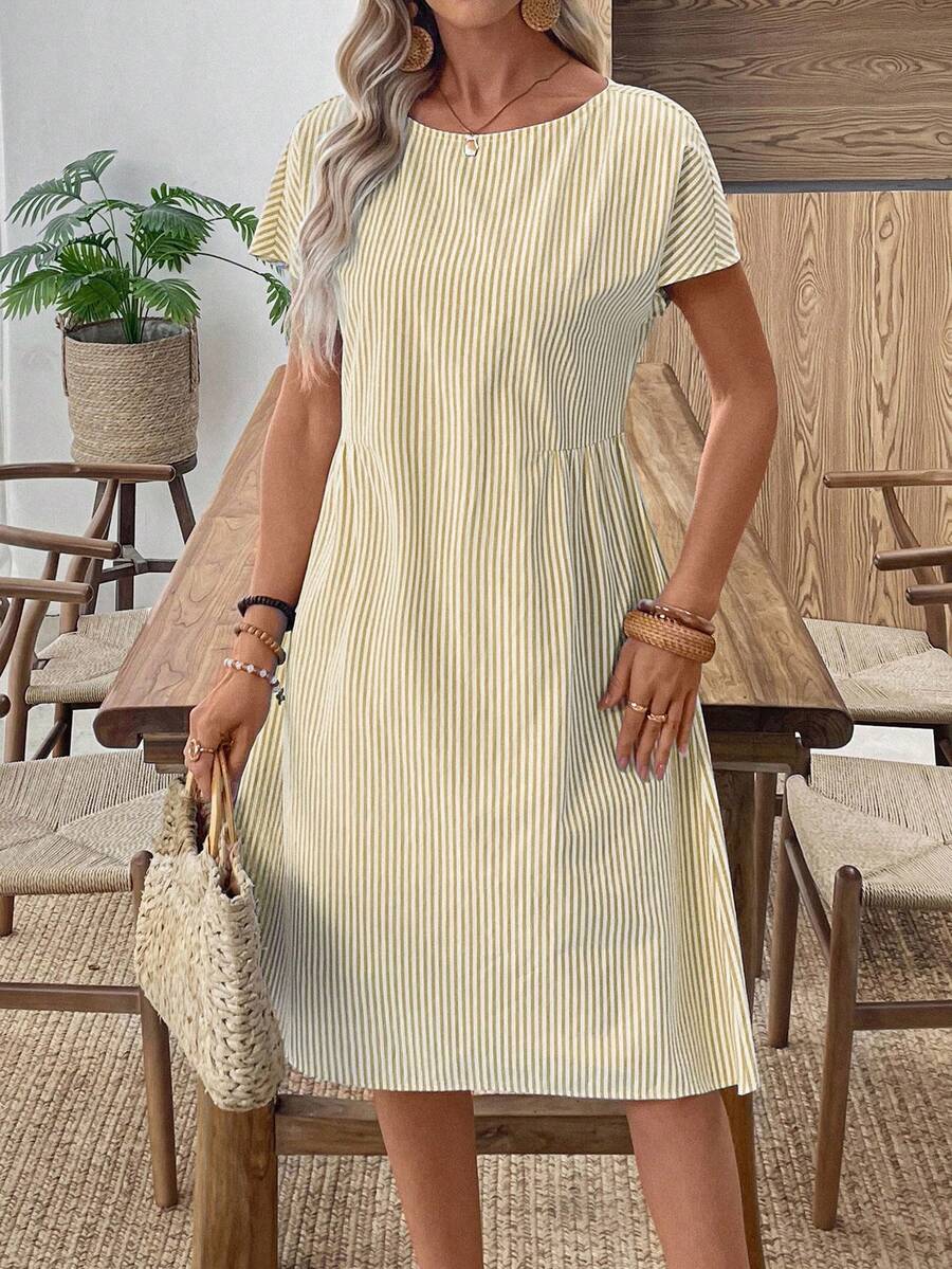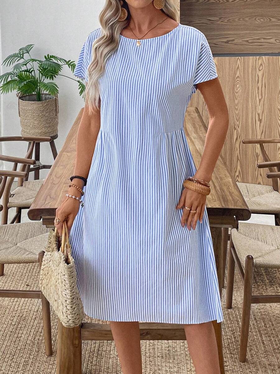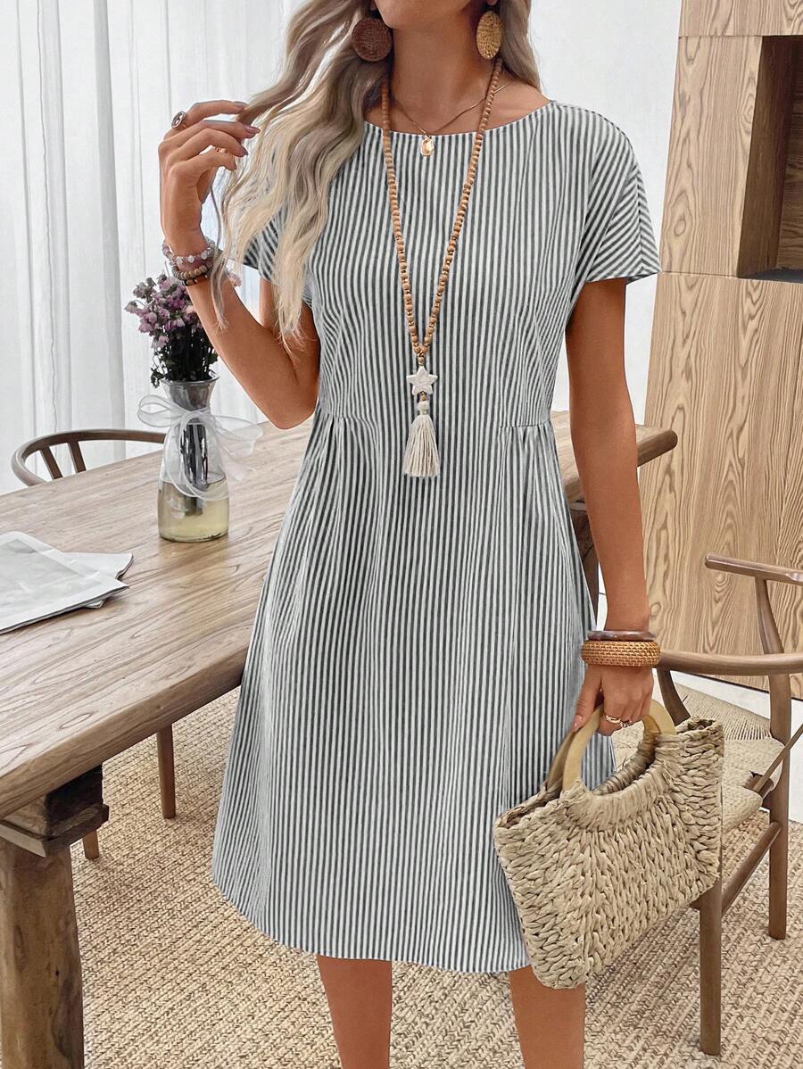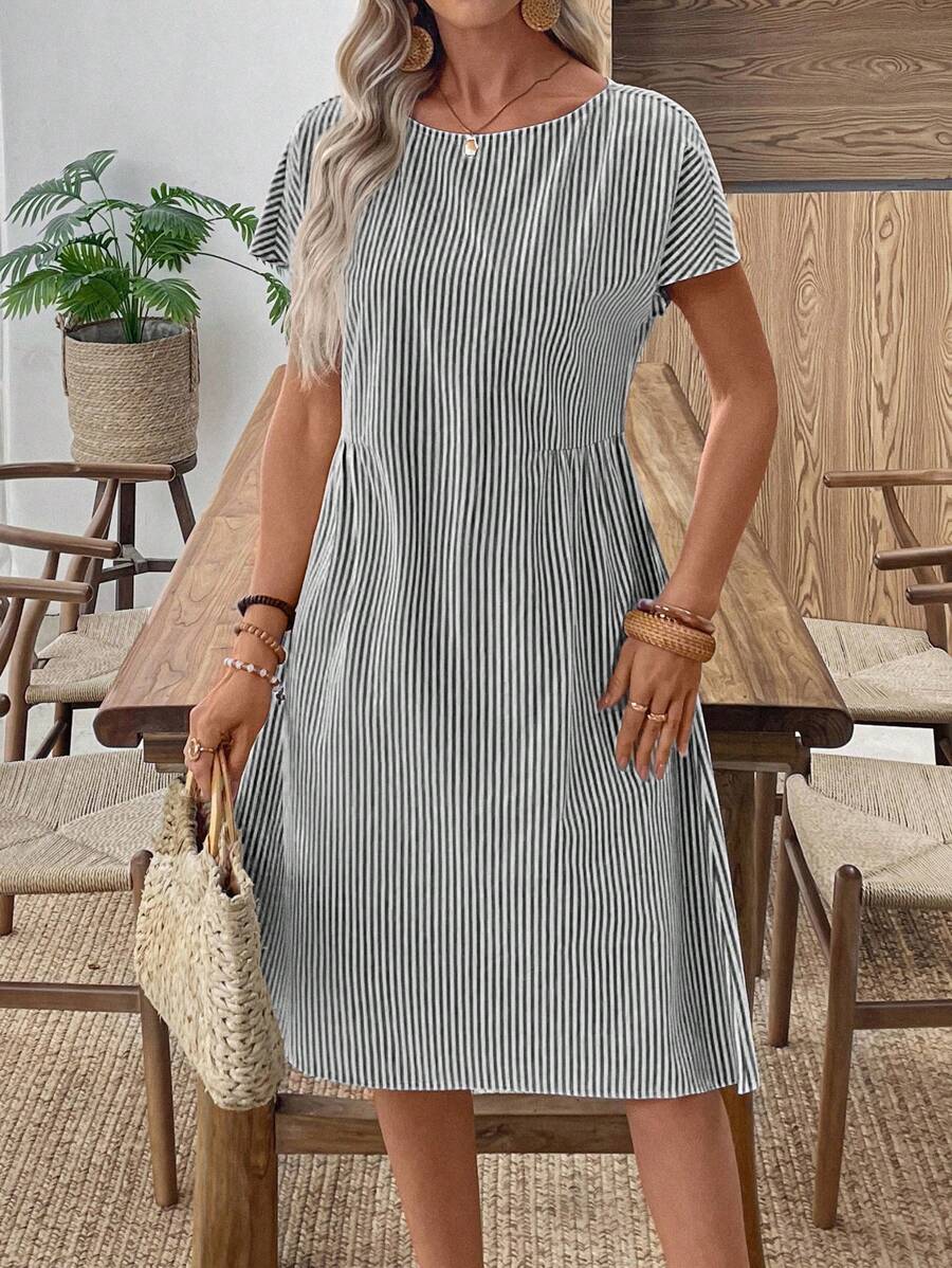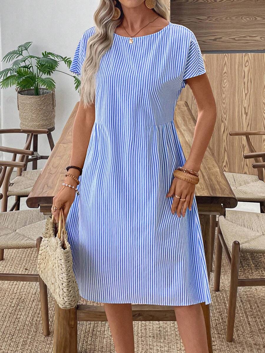 Vestido casual de verano para mujer con cuello redondo a rayas, vestido de vacaciones, vestido de verano a rayas