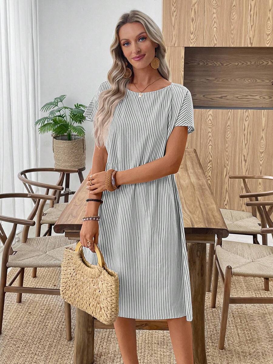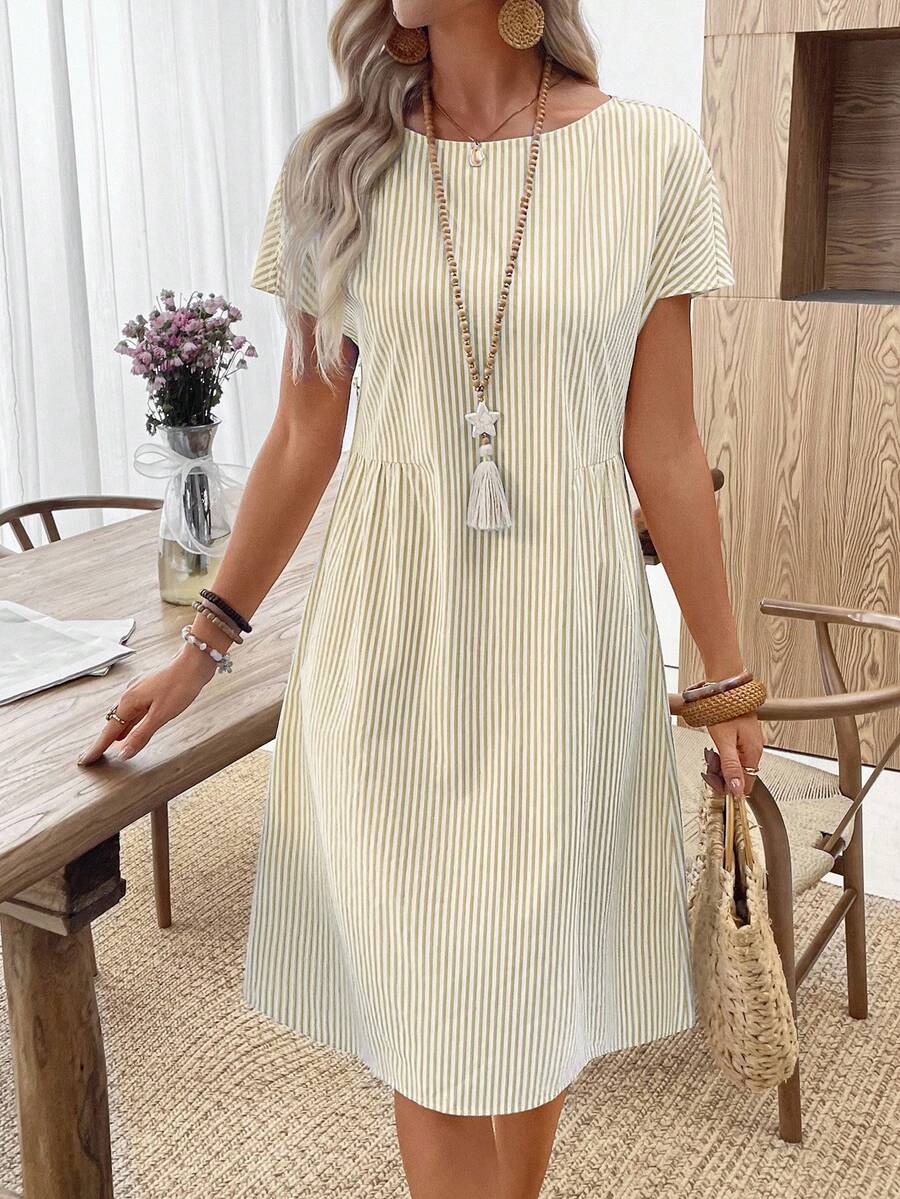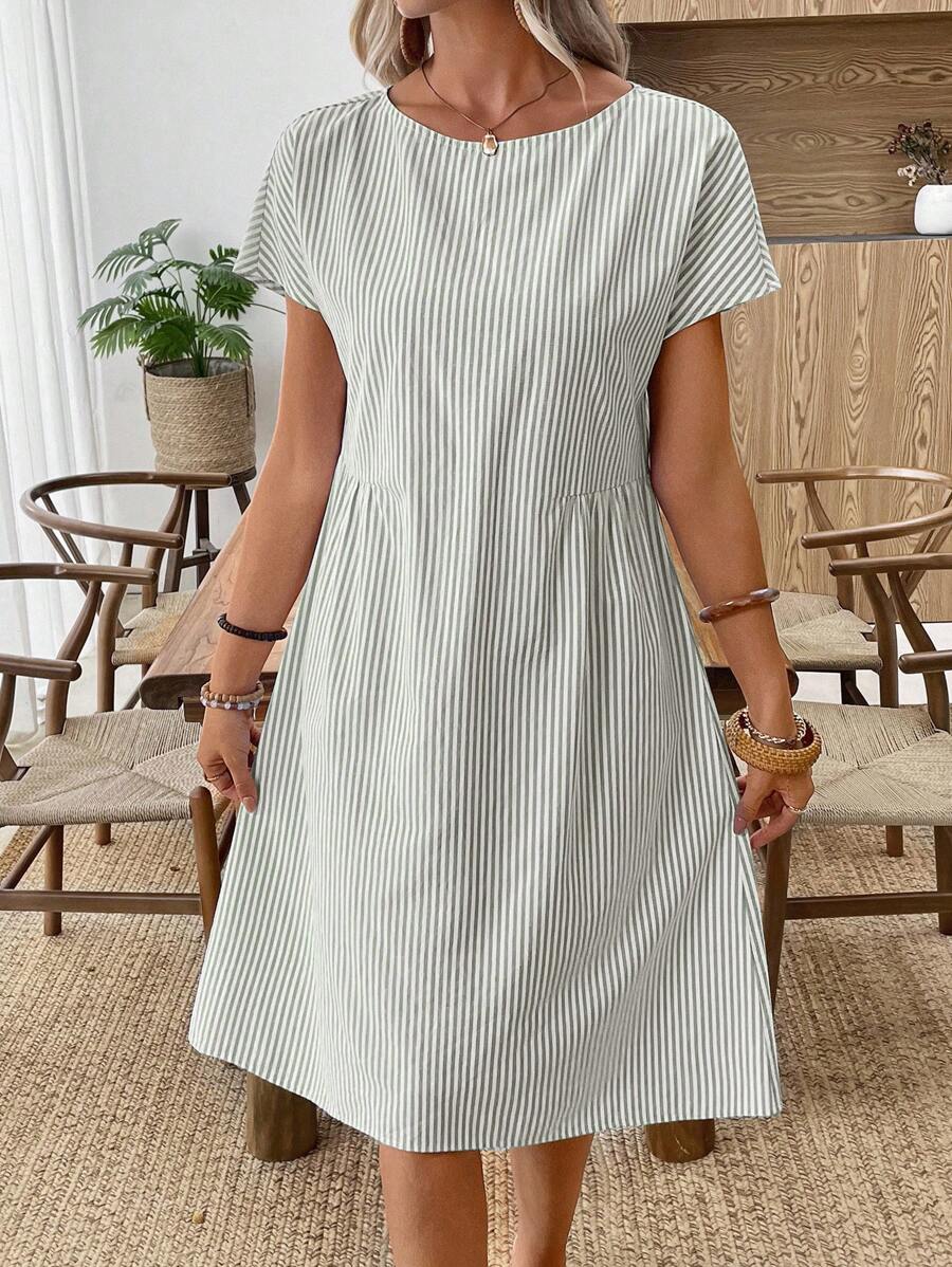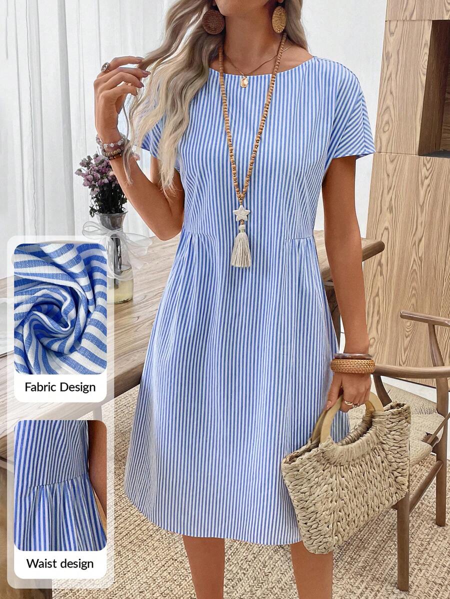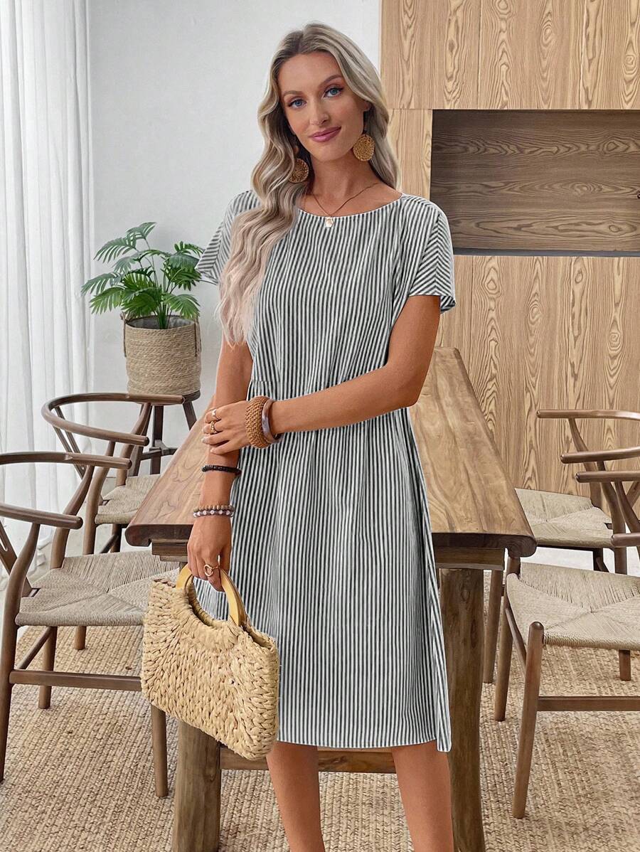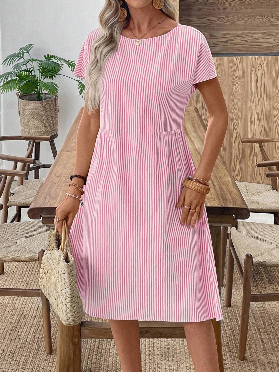 Vestido casual de verano para mujer con cuello redondo a rayas, vestido de vacaciones, vestido de verano a rayas