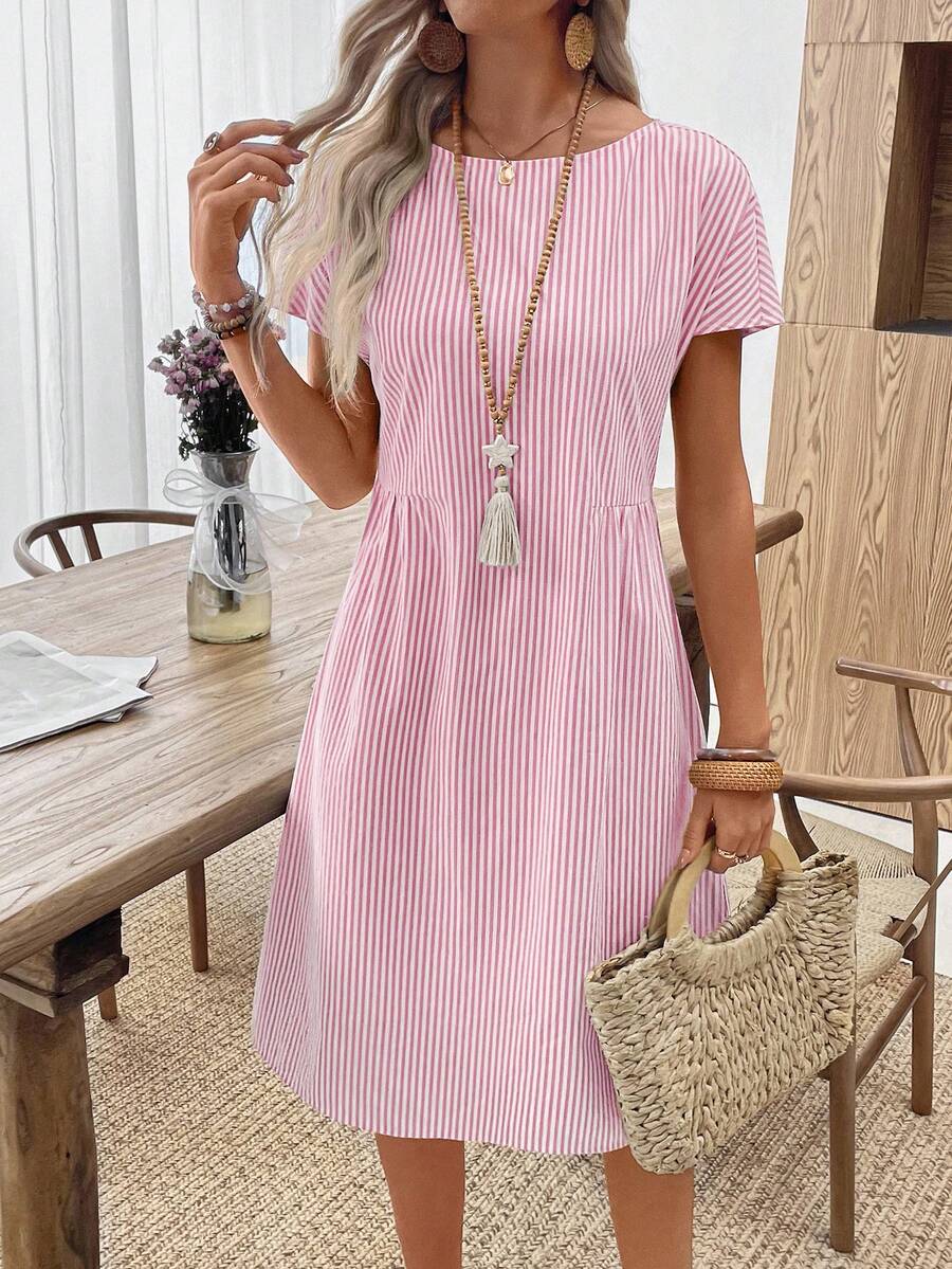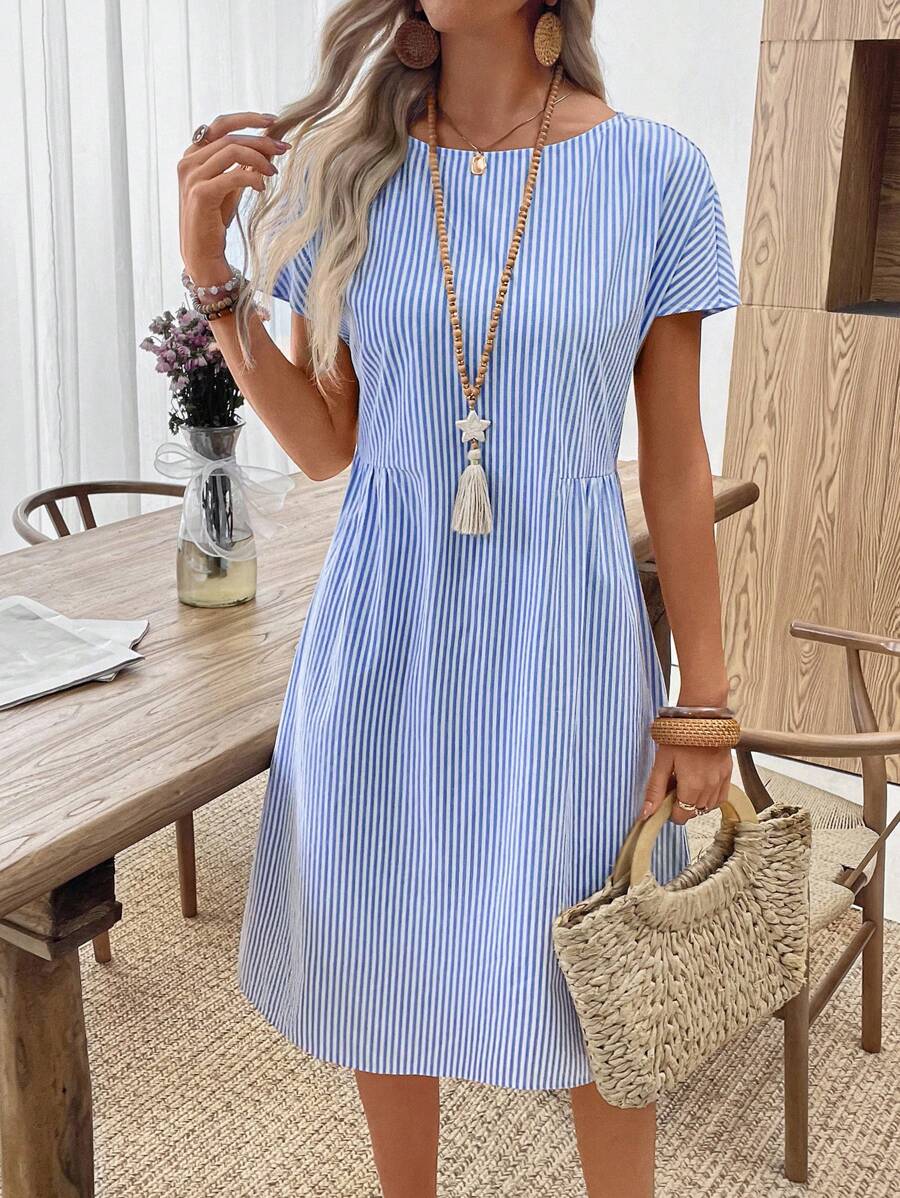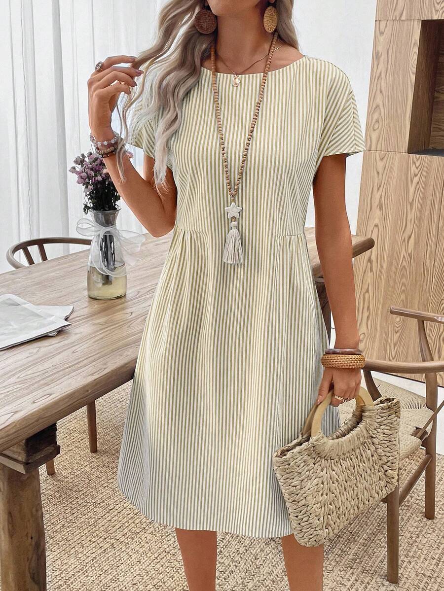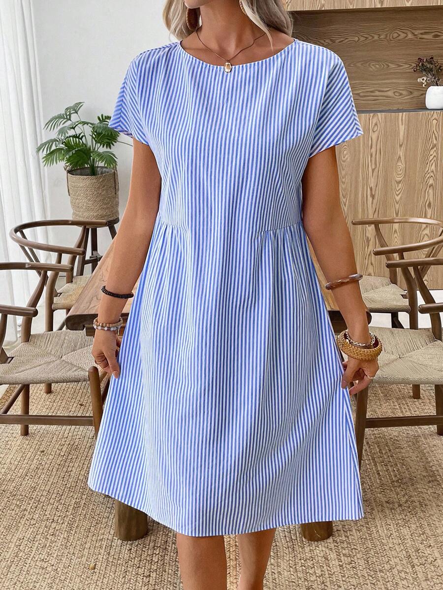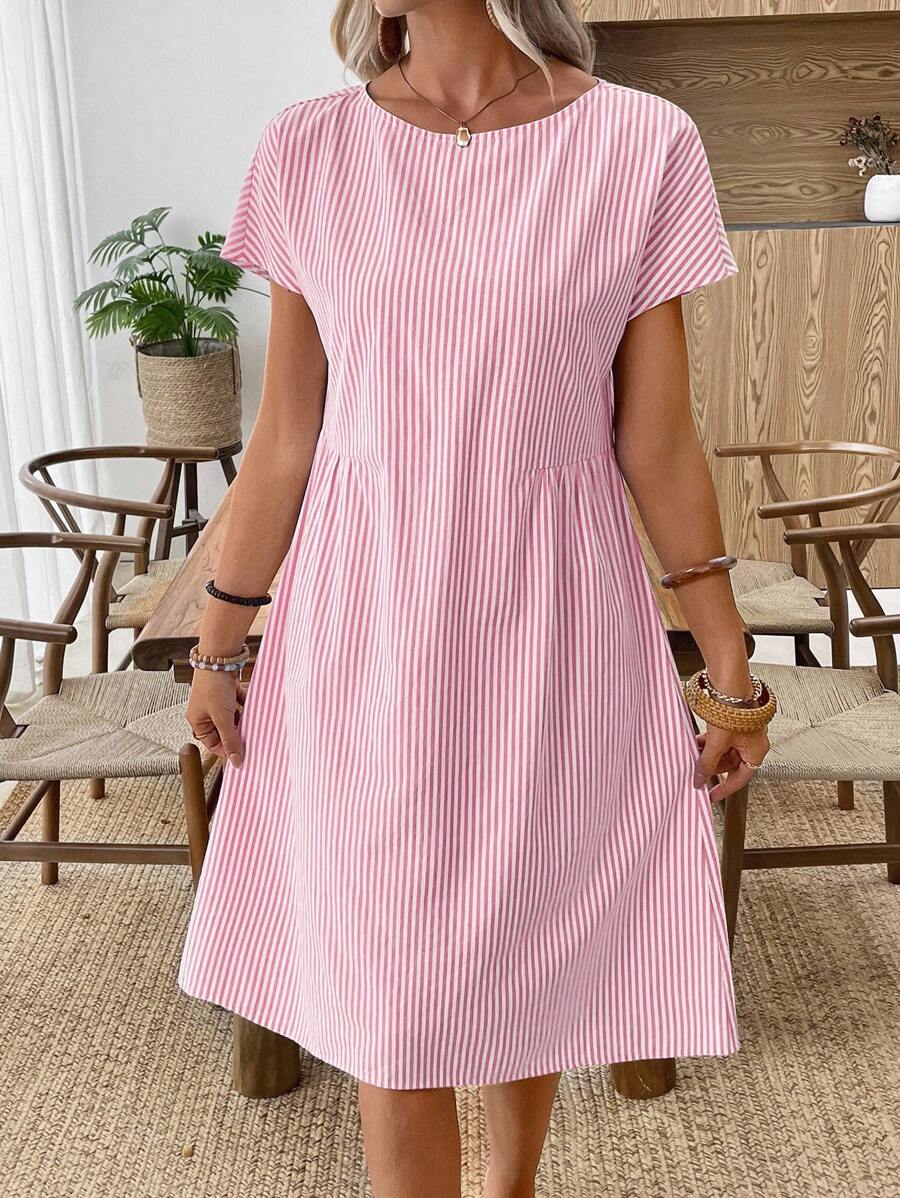 Vestido casual de verano para mujer con cuello redondo a rayas, vestido de vacaciones, vestido de verano a rayas