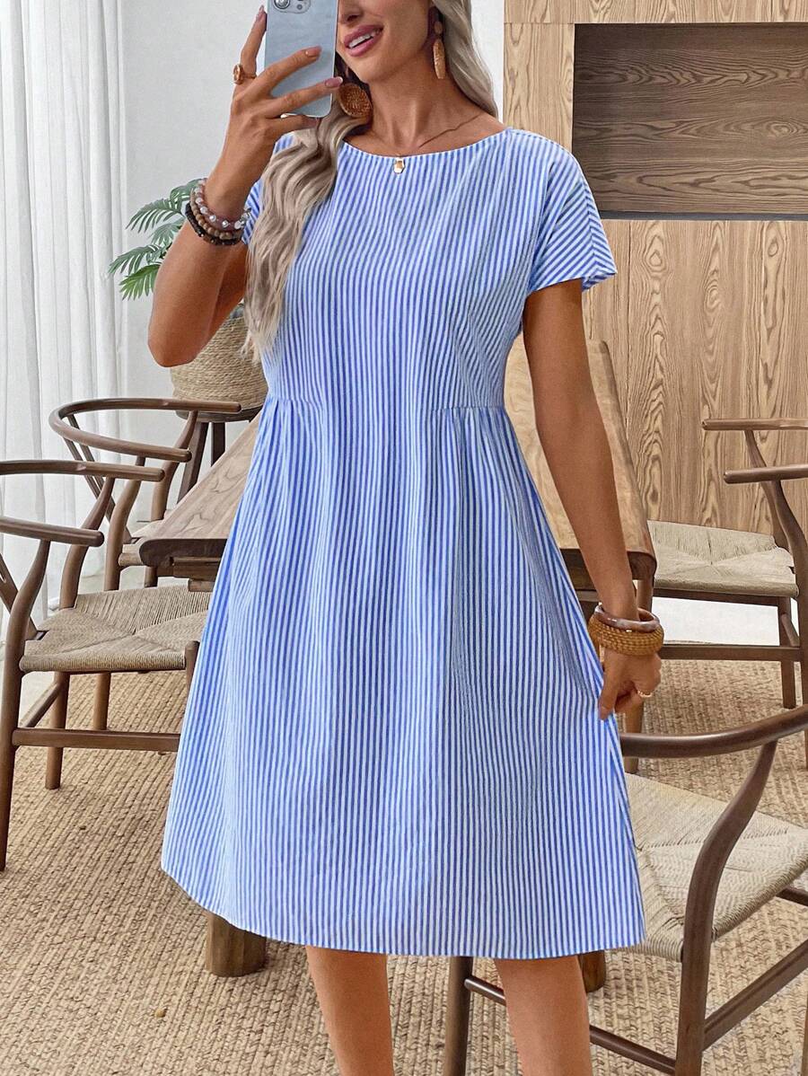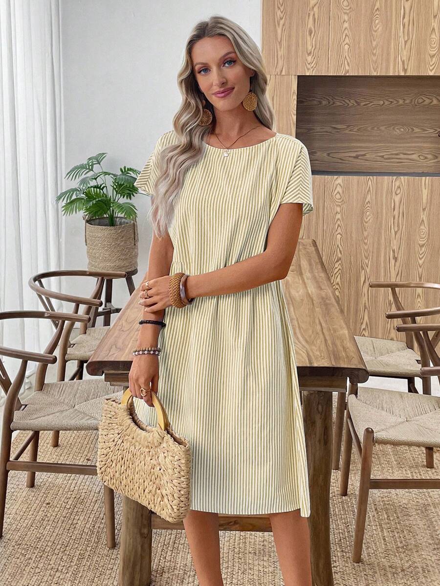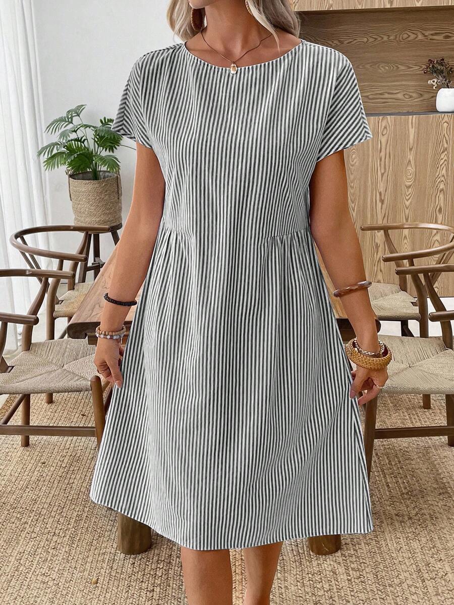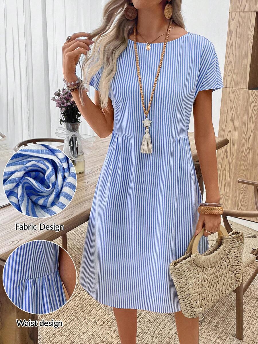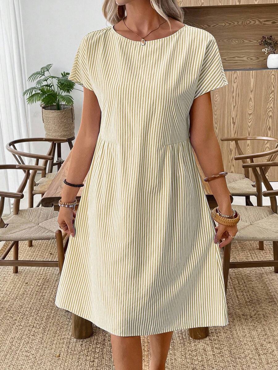 Vestido casual de verano para mujer con cuello redondo a rayas, vestido de vacaciones, vestido de verano a rayas