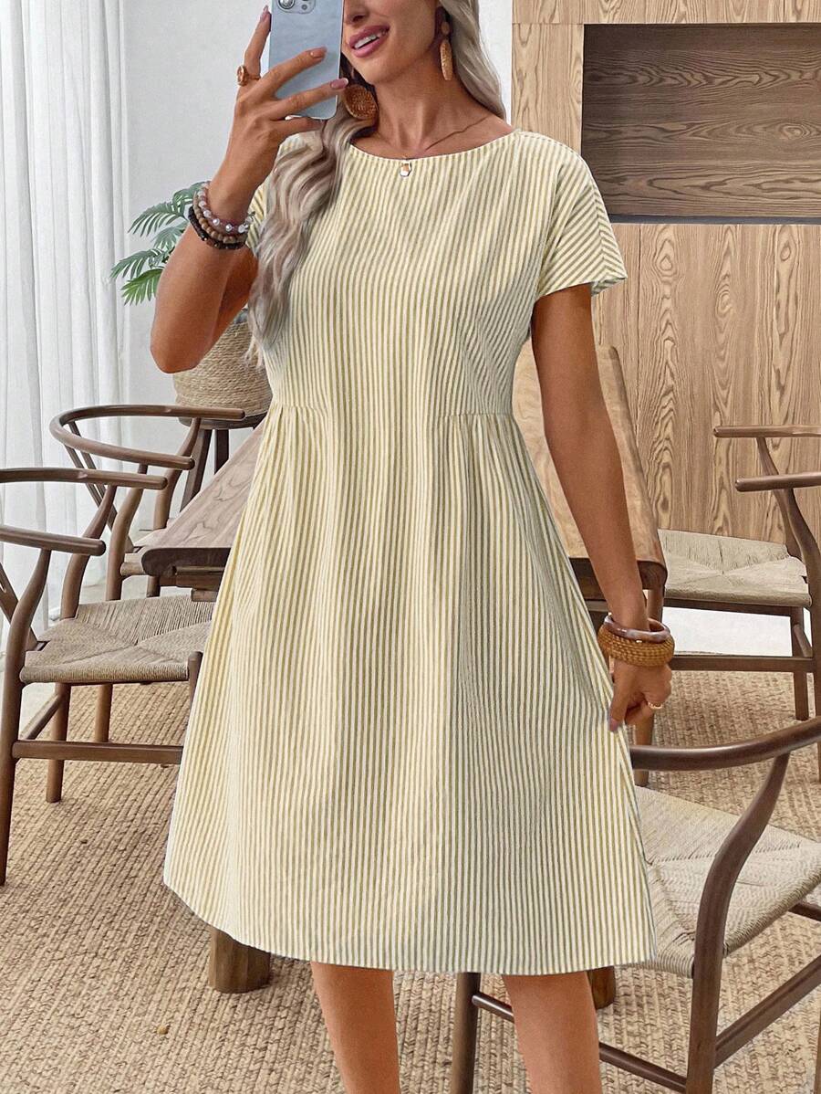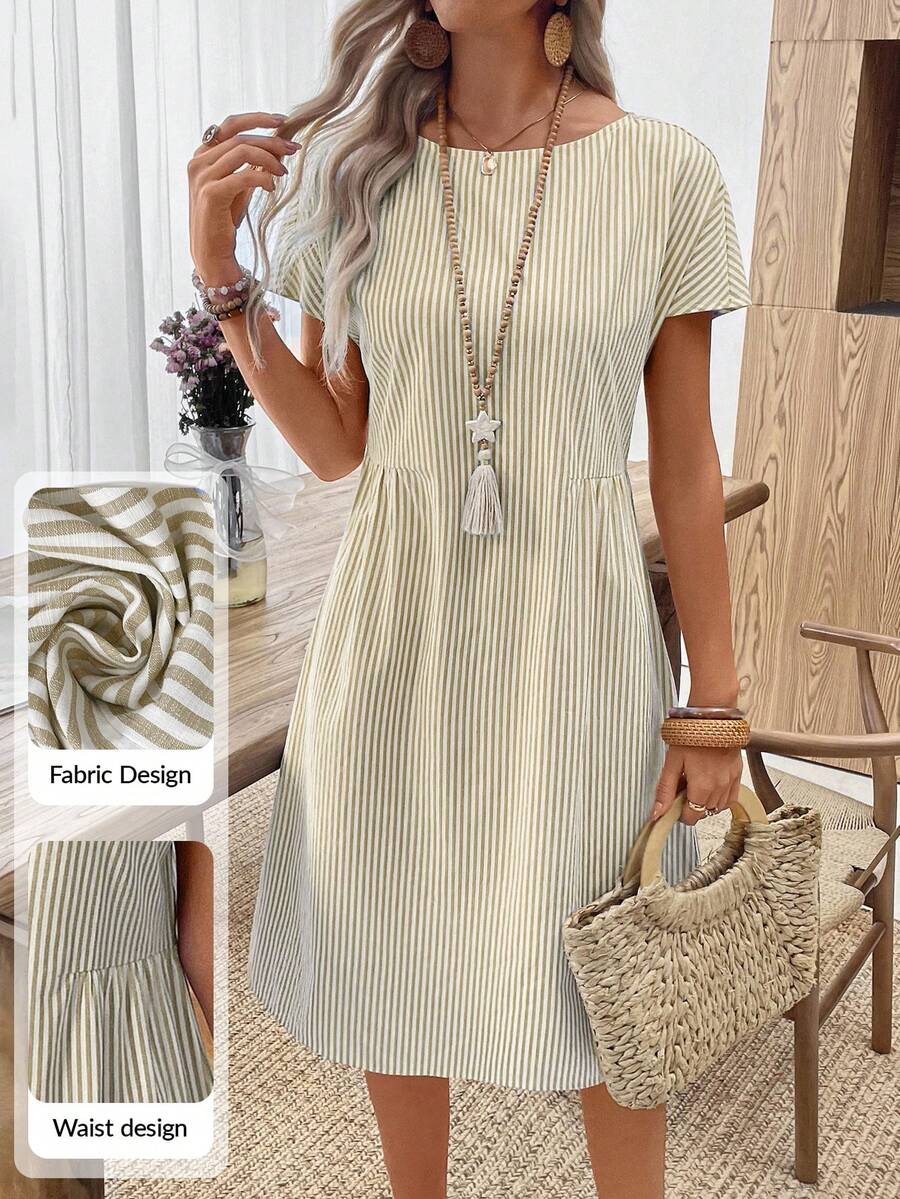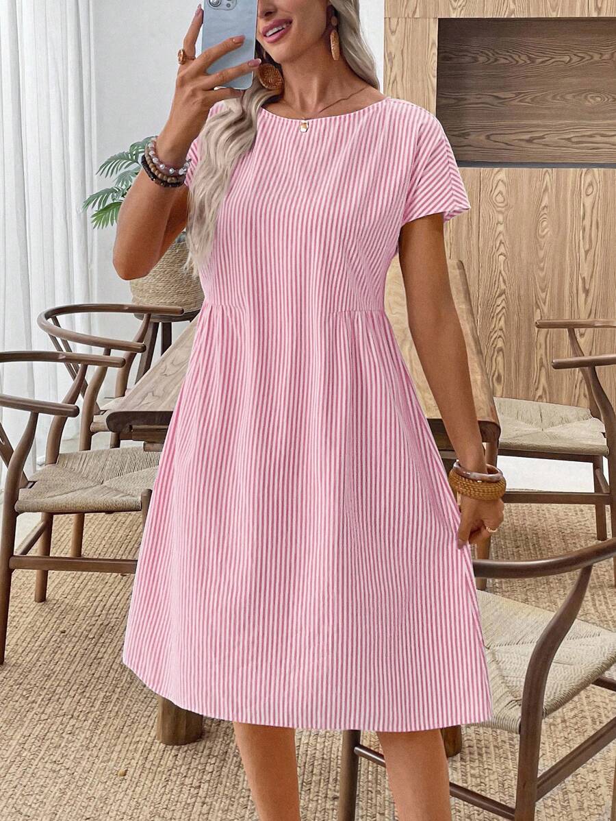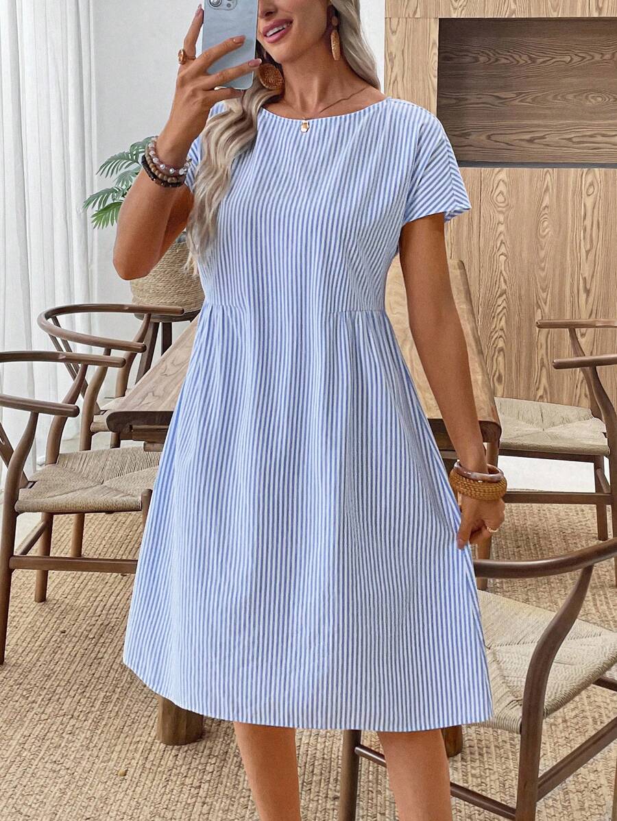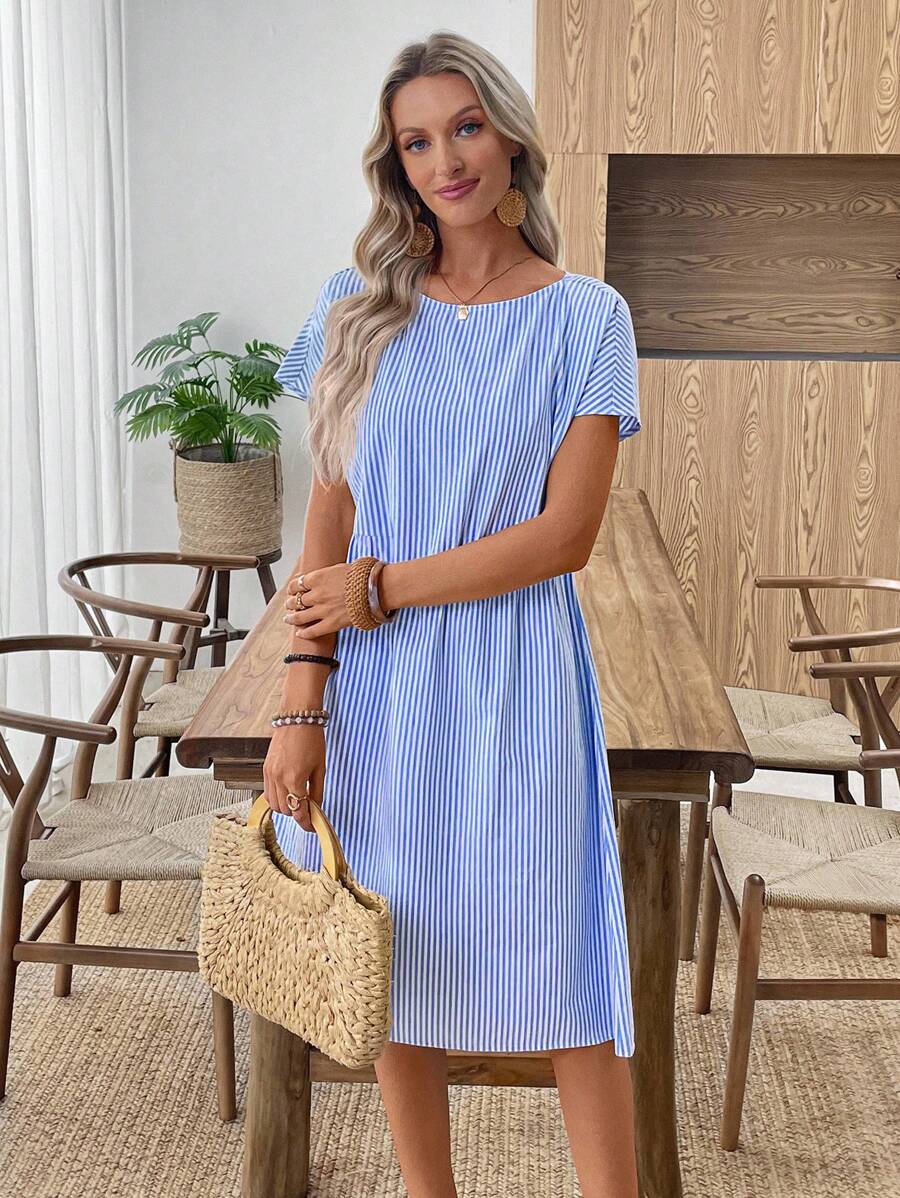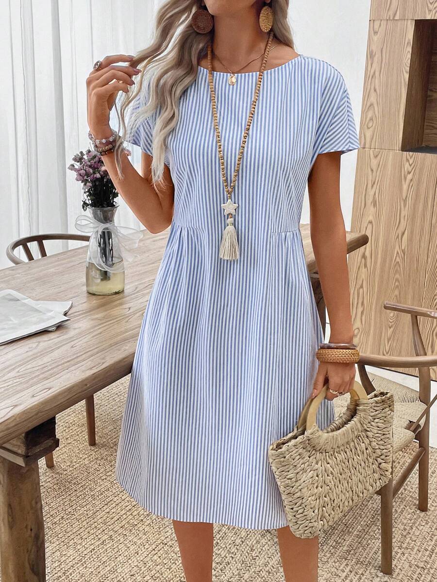 Vestido casual de verano para mujer con cuello redondo a rayas, vestido de vacaciones, vestido de verano a rayas