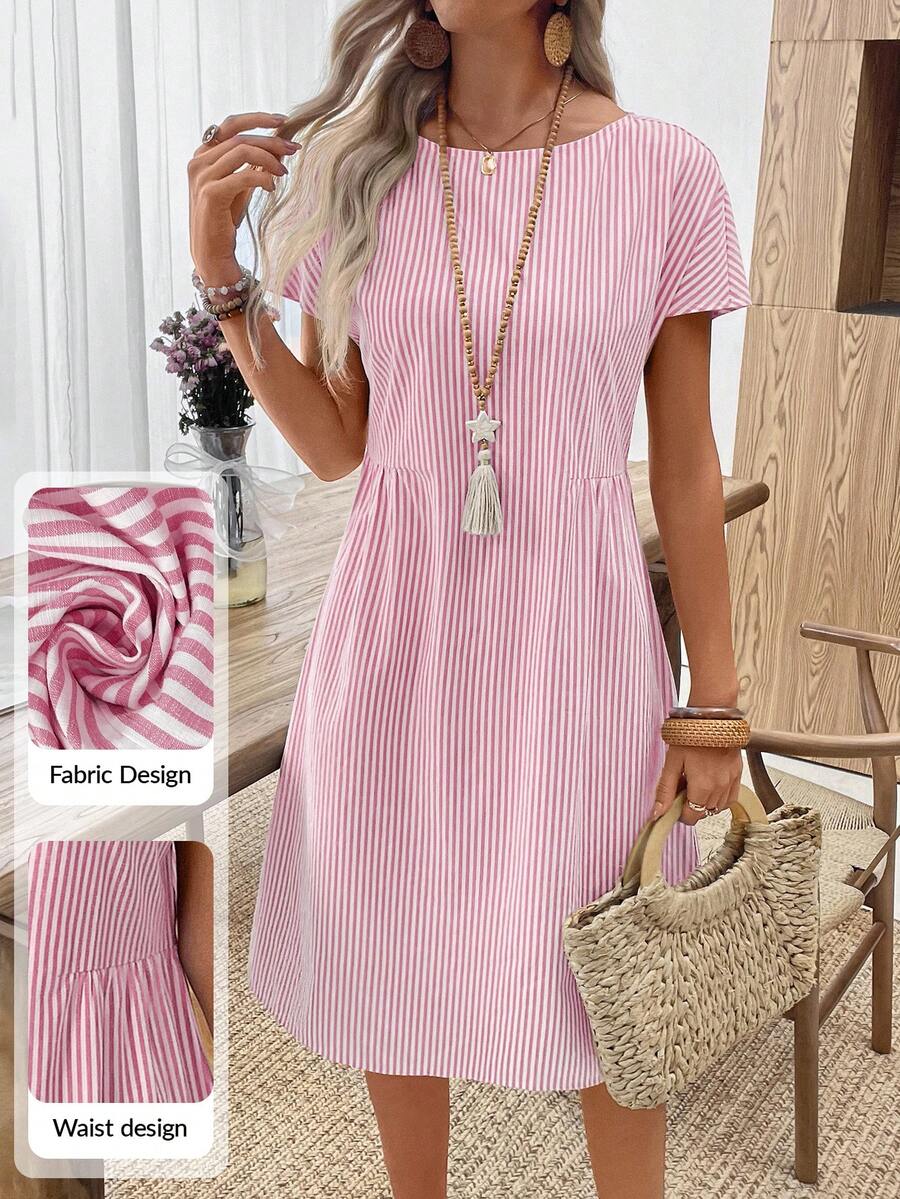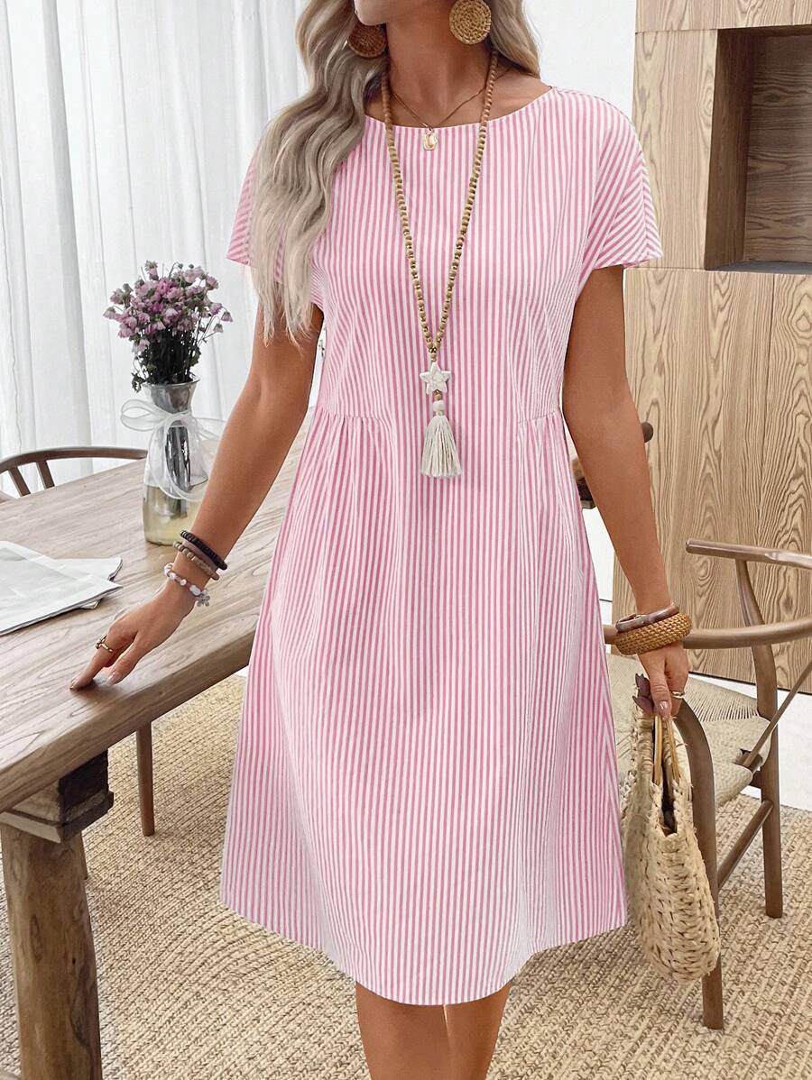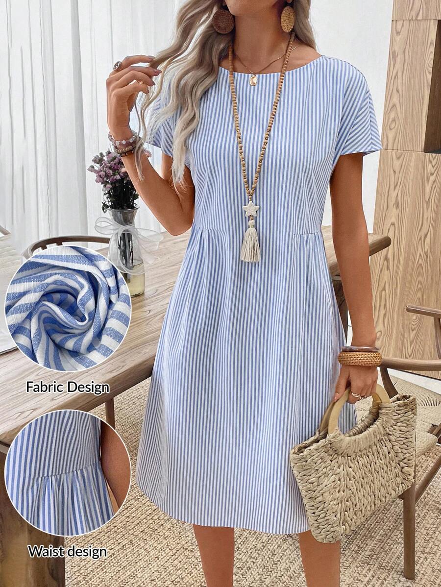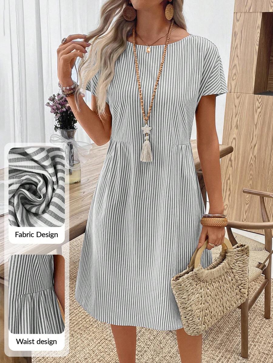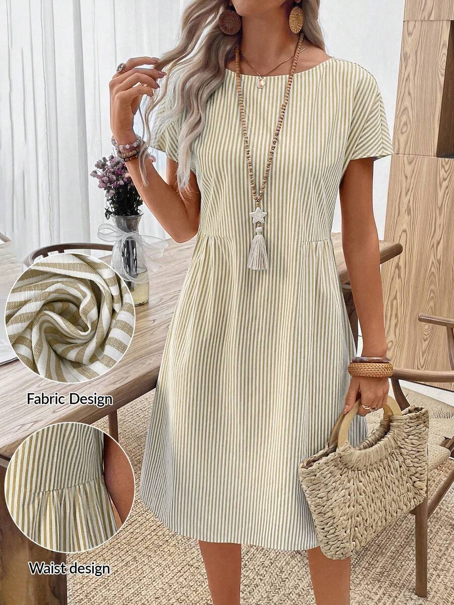 Vestido casual de verano para mujer con cuello redondo a rayas, vestido de vacaciones, vestido de verano a rayas