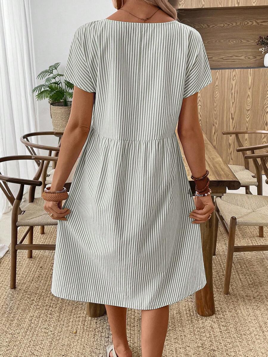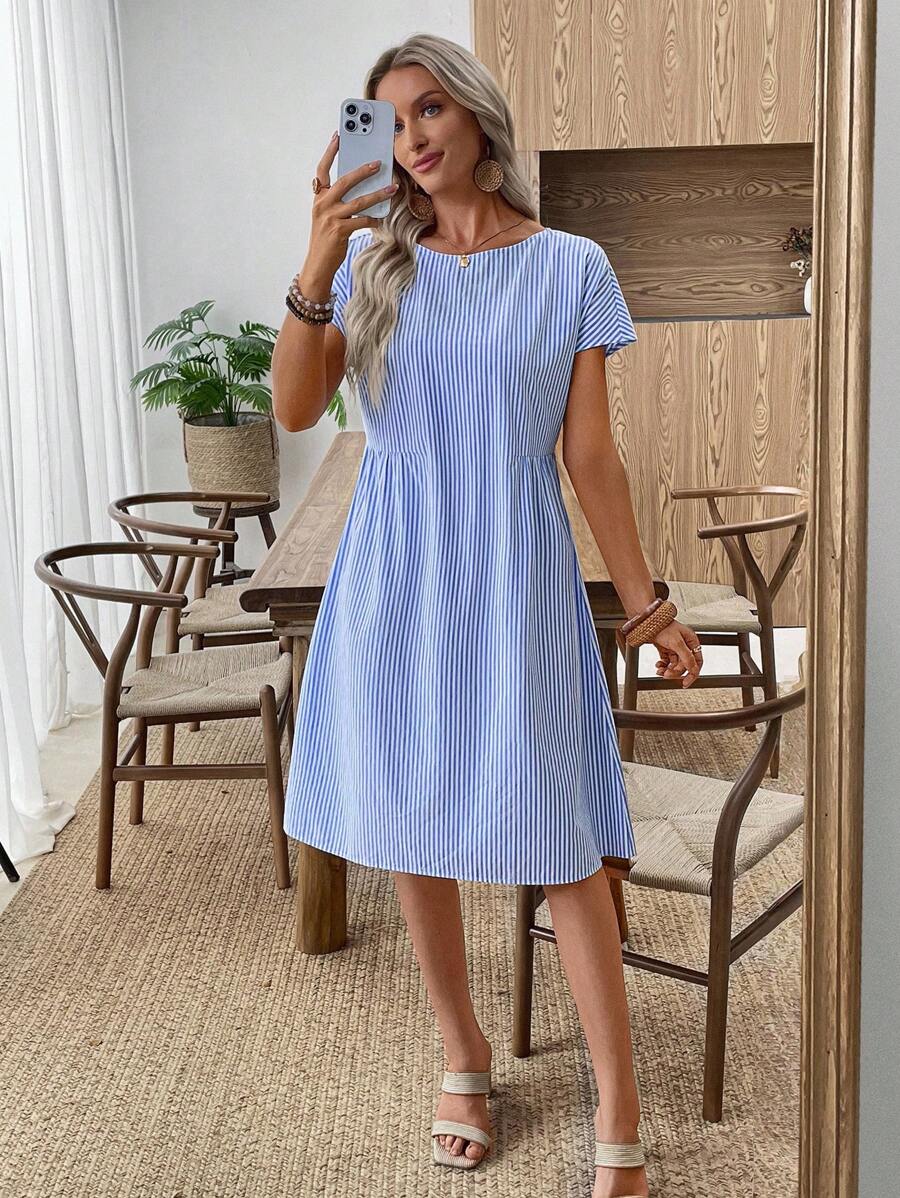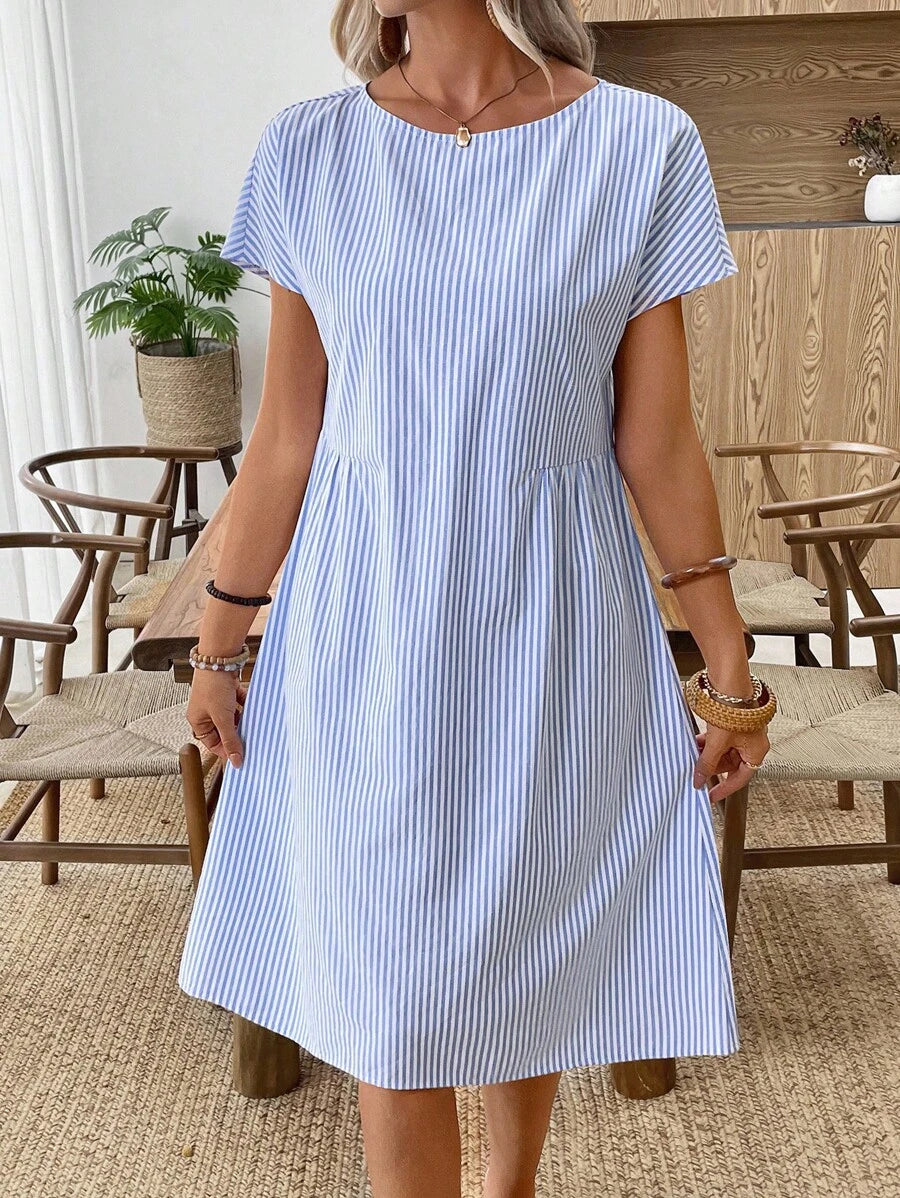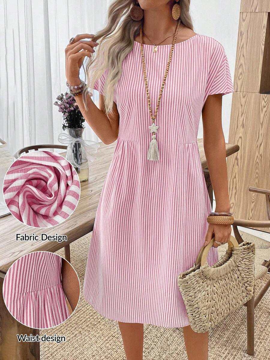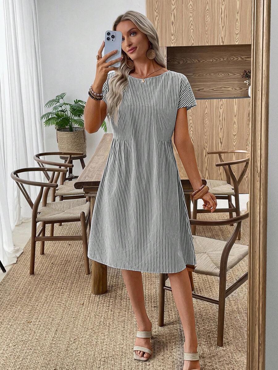 Vestido casual de verano para mujer con cuello redondo a rayas, vestido de vacaciones, vestido de verano a rayas