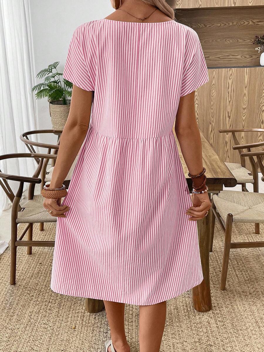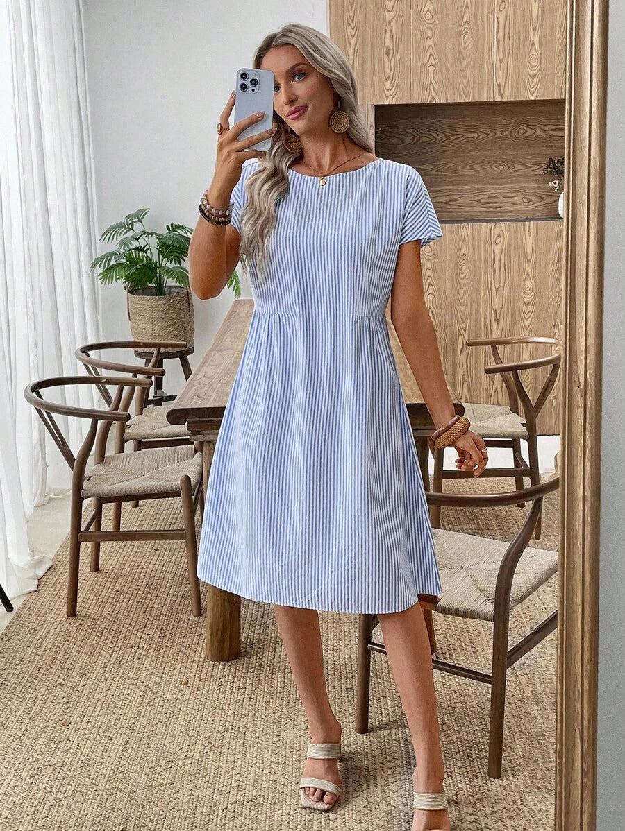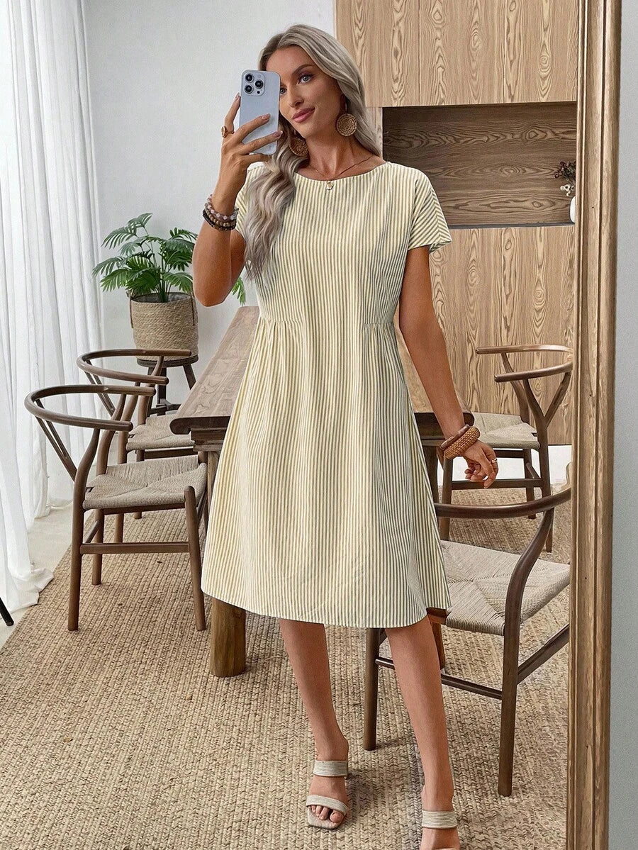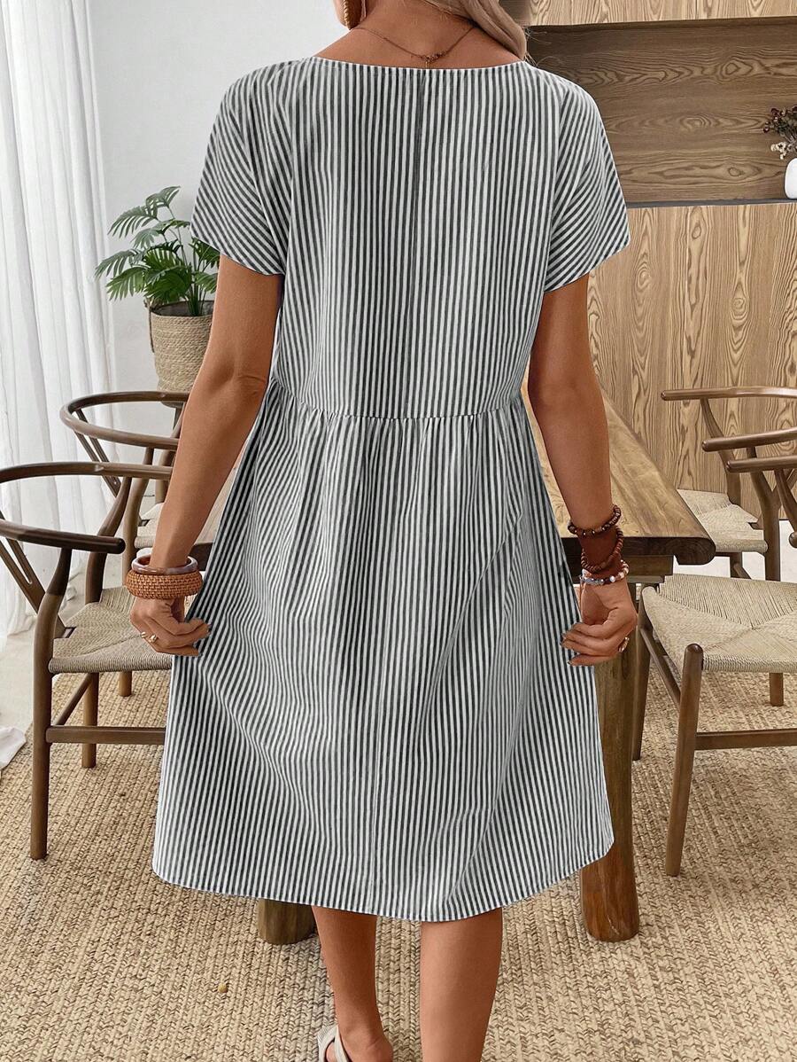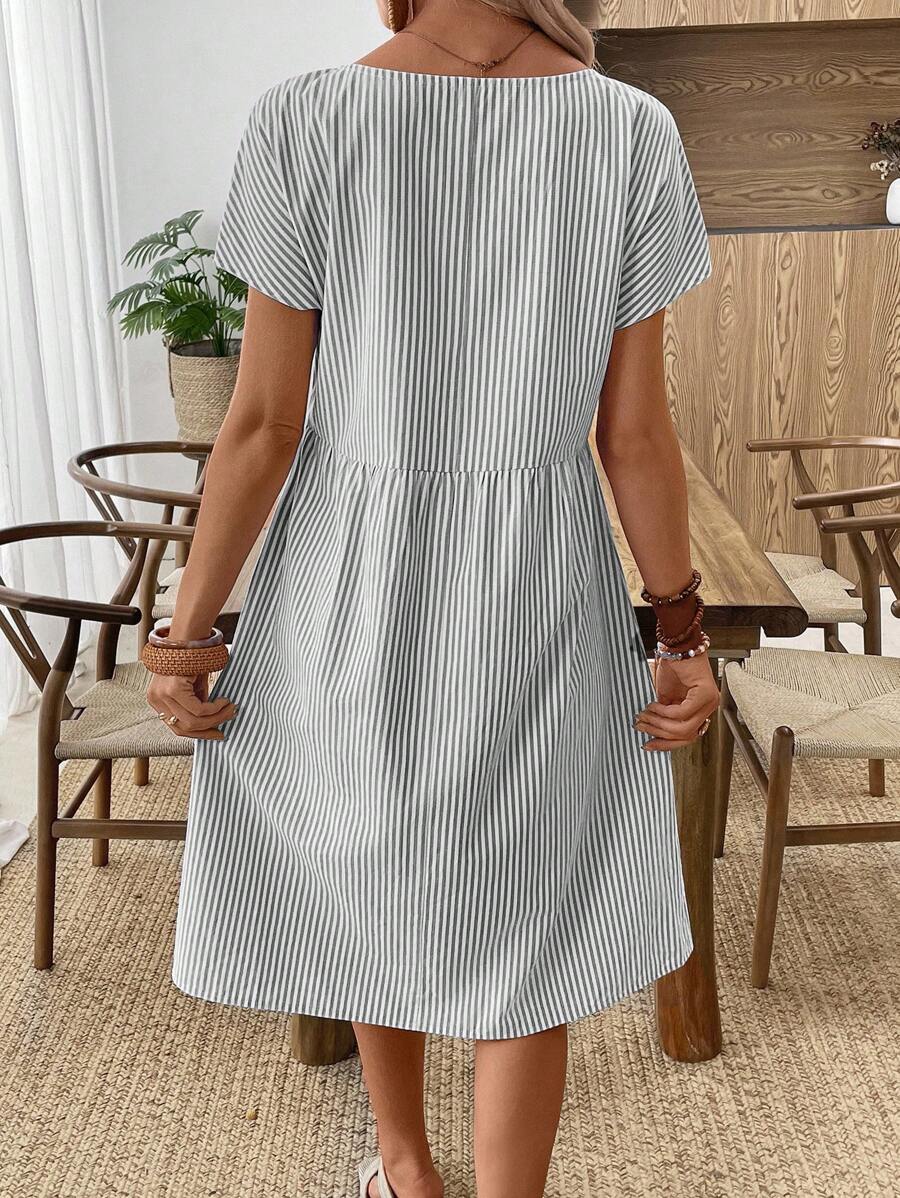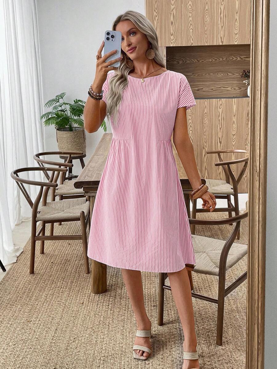 Vestido casual de verano para mujer con cuello redondo a rayas, vestido de vacaciones, vestido de verano a rayas
