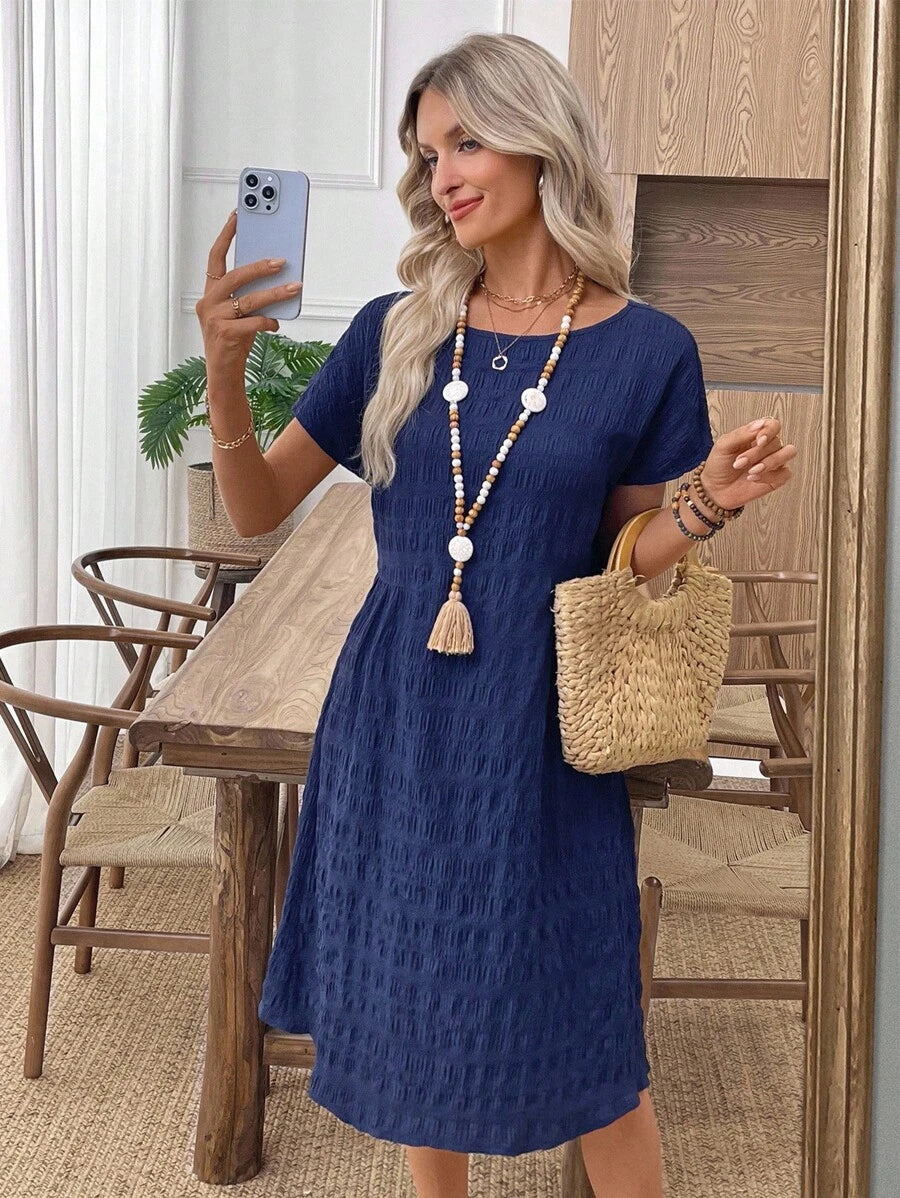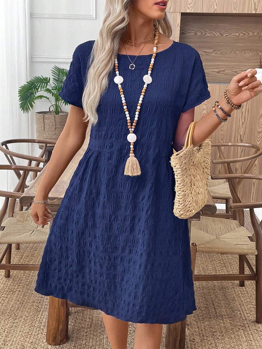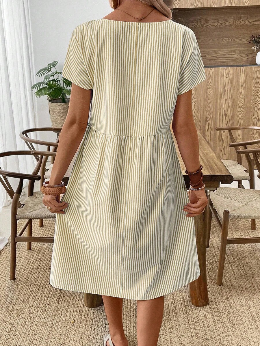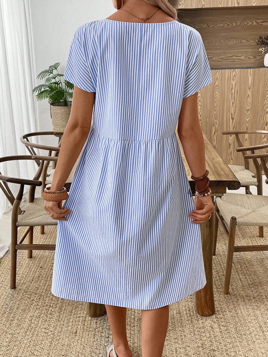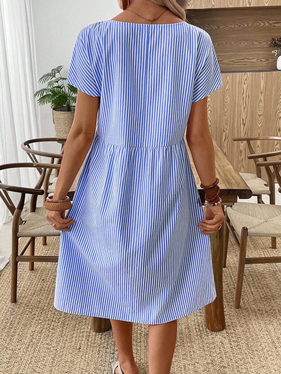 Vestido casual de verano para mujer con cuello redondo a rayas, vestido de vacaciones, vestido de verano a rayas
